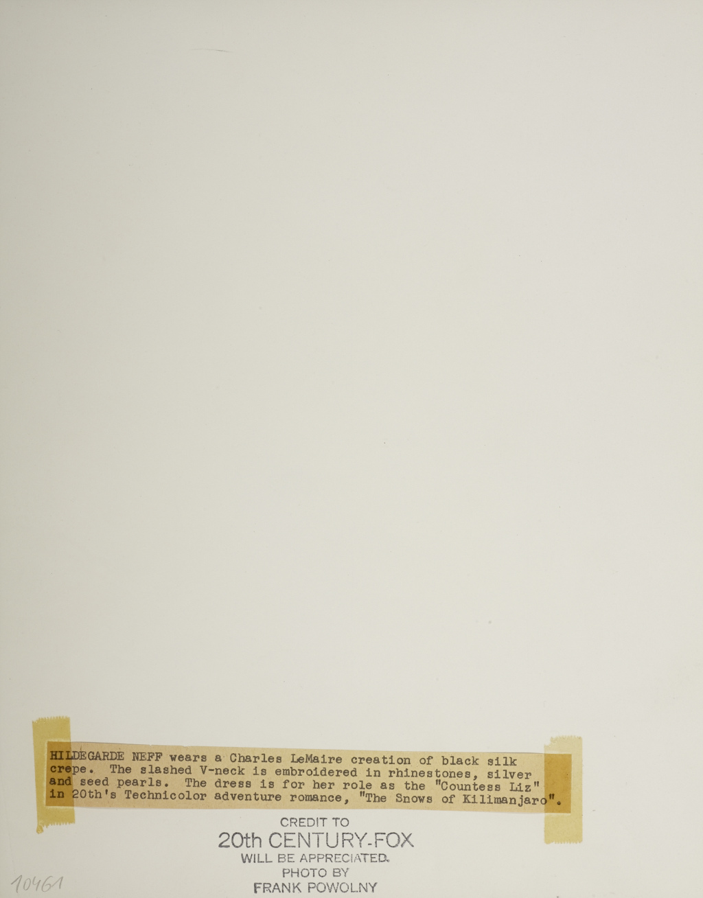 Vintage silver print 30,6 x 24 cm (12 x 9.4 in) 20th Century Fox credit stamp with photographer's name and label with typographic inscription on the reverse