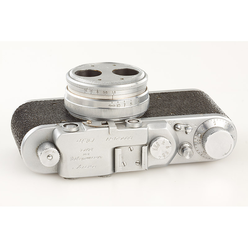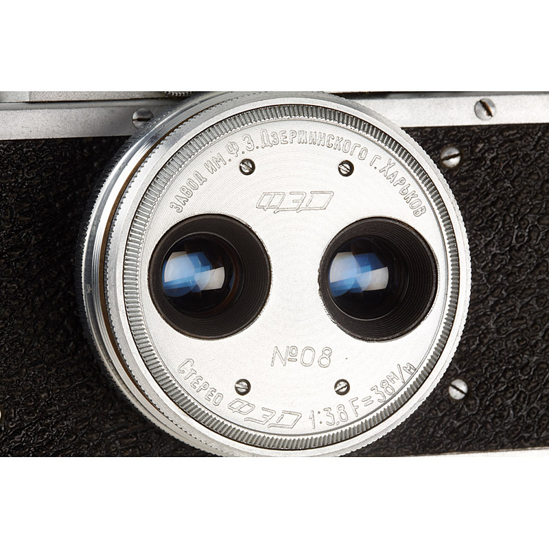 rare FED Ie 'Berdsk' built in Sibiria in 1946 with FED Stereo lens 3.8/38mm no.08, camera with 'swinging mask' for stereo