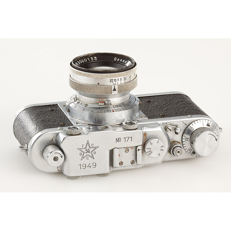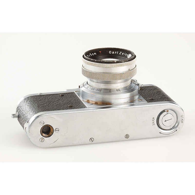Leica copy with Contax lens mount in working order and original condition, matching Sonnar 2/5cm T no.3060133, original Carl Zeiss Jena cap
