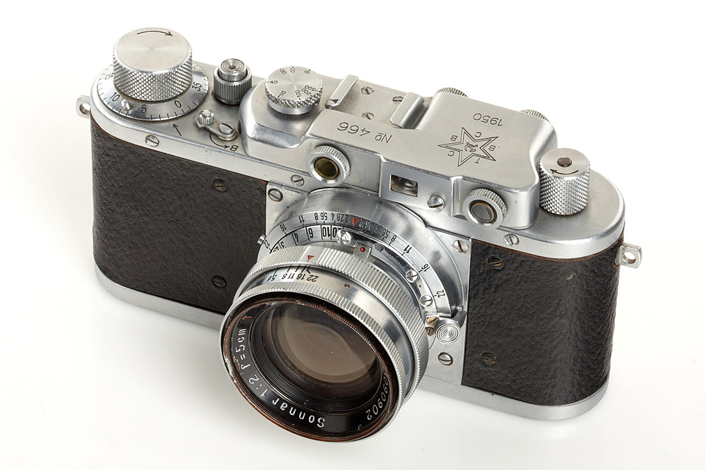 rare Russian Leica copy with Contax mount in good working order, matching Sonnar 2/5cm T no.3090902, with original ever-ready case