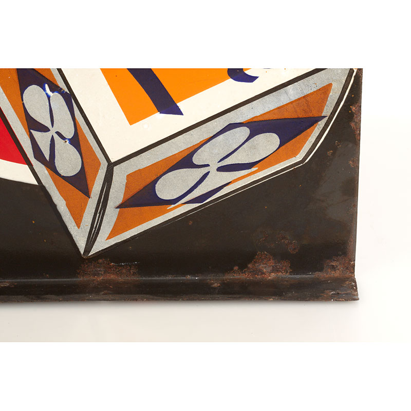 very rare French double-sided enamel sign for wall installation, 'Film As de Trèfle' (Ace of Clubs) and "ASCHROM" EN VENTE ICI written on an oversized film box in a red/white circle, 65 x 53 cm