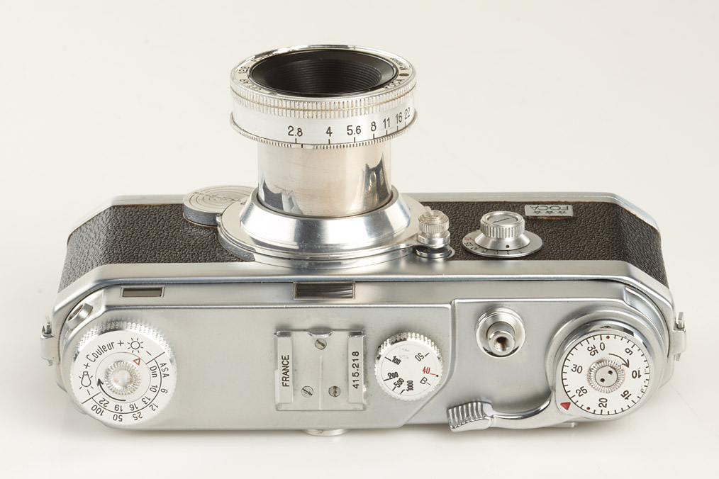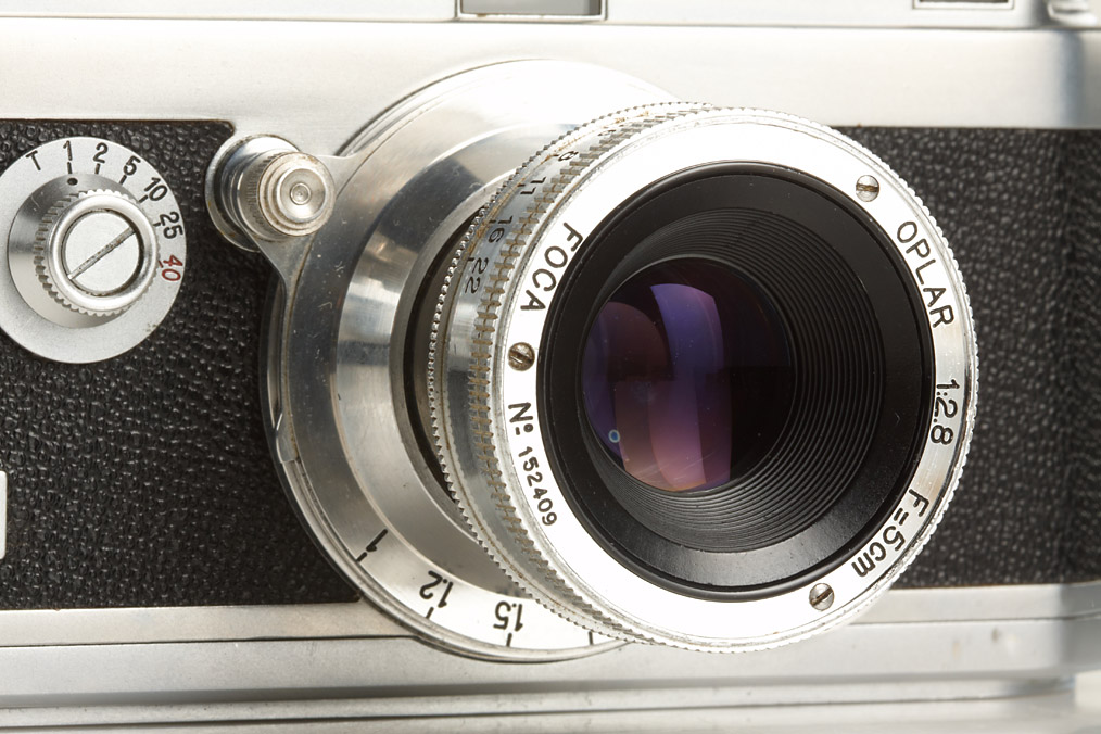 very early camera in near mint condition with 6 matching lenses and accessories: Oplar 4.5/2.8cm no.110719, Oplar 3.5/3.5cm no.070452, Oplar 3.5/5cm no.030119, Oplar 2.8/5cm no.152409, Oplex 3.5/9cm no.116140, Teleoplar 4.5/13,5cm no.122418, all with caps, 3 hoods, universal viewfinder, 9 filter, 2 spools, exposure meter, instruction book - all in matching outfit case