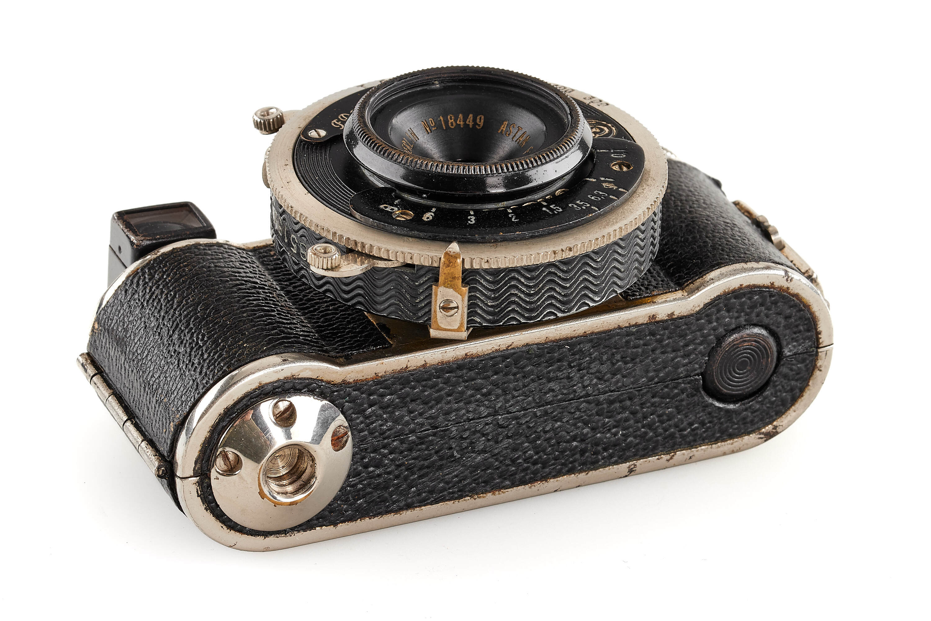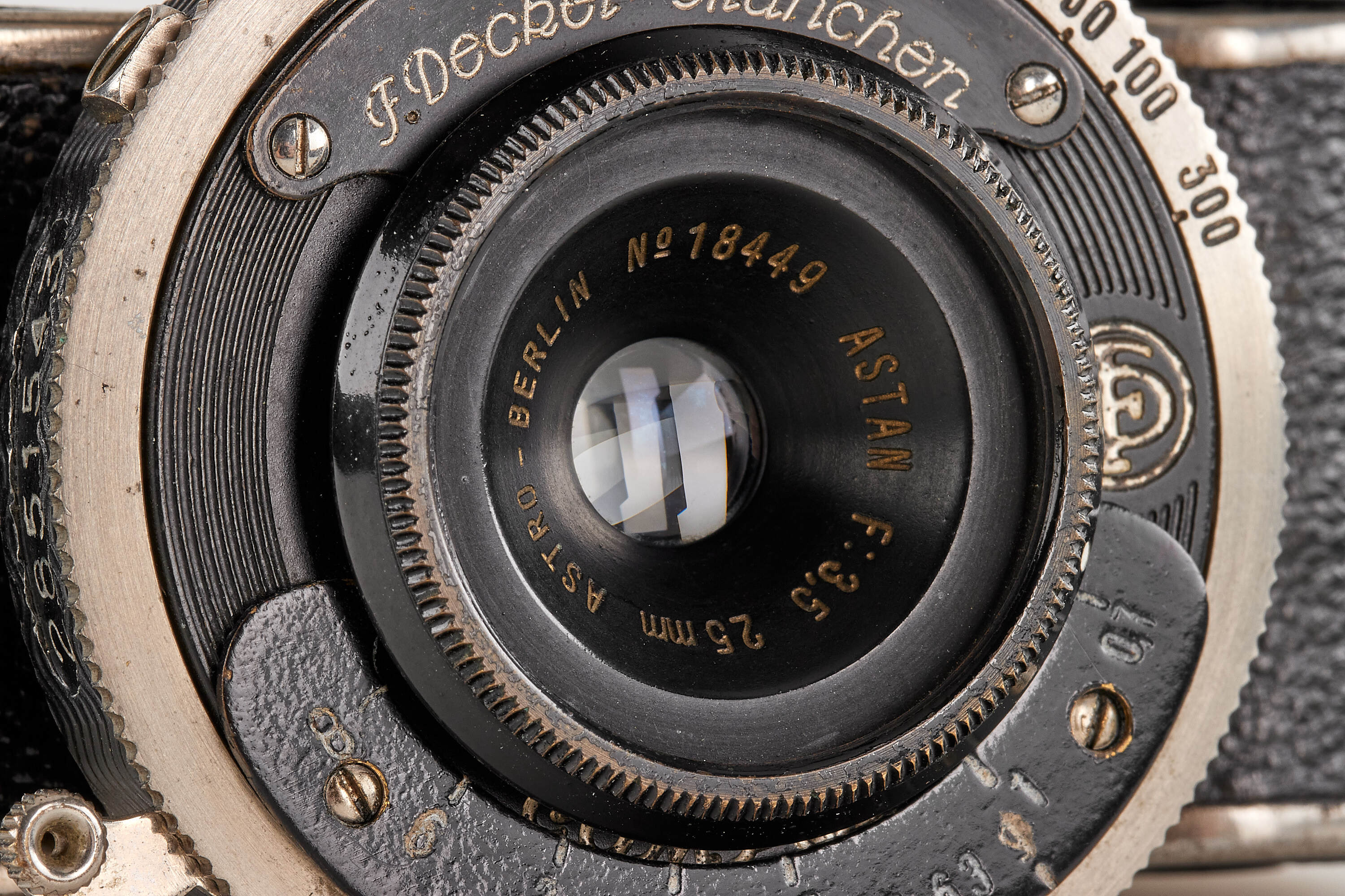Subminiature camera for 36 exposures 13x18mm on 16mm film, in original, very good condition, with rare Astro-Berlin Astan 3.5/25mm no.18449 in F. Deckel shutter, clean and clear optics.