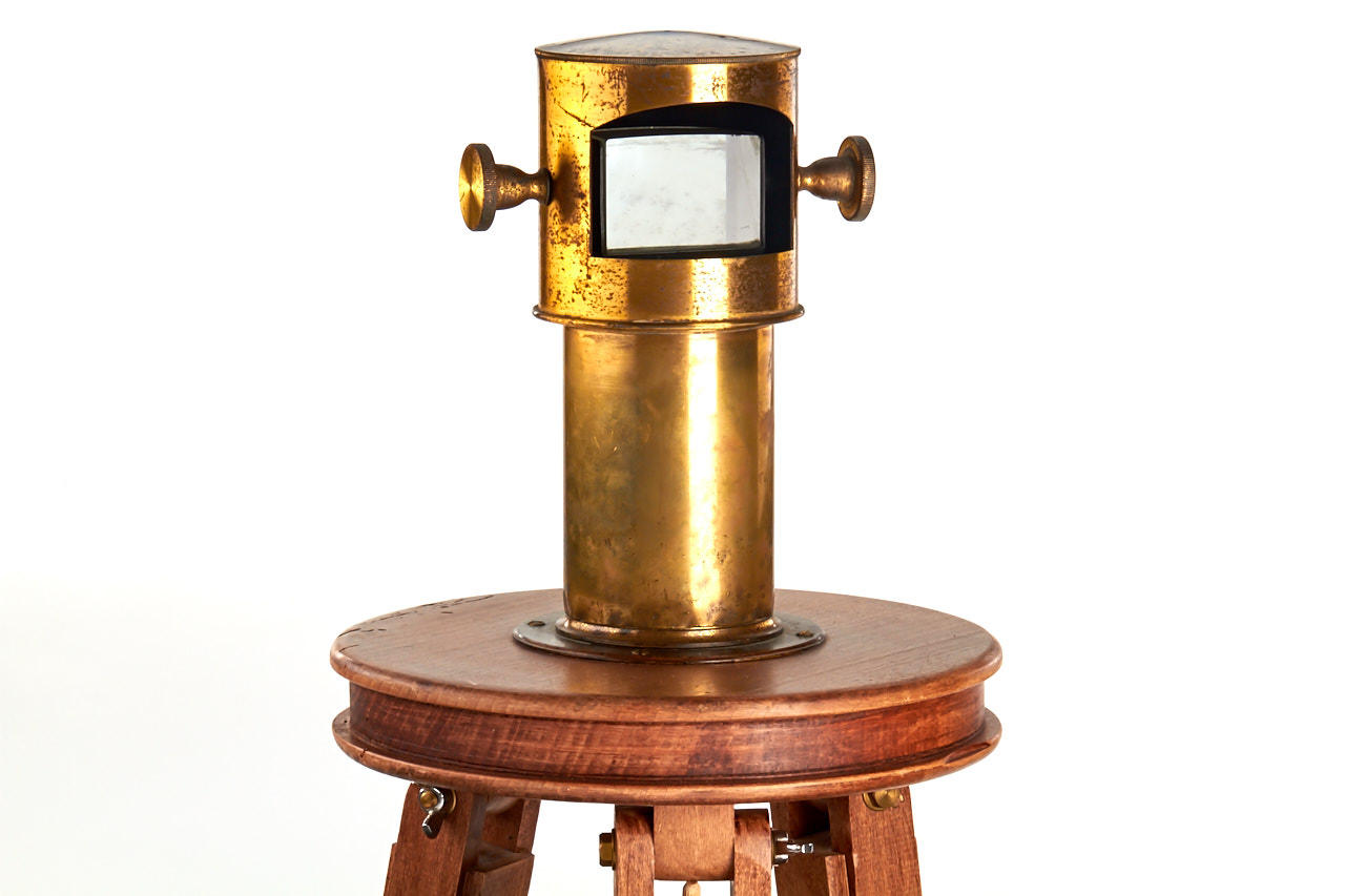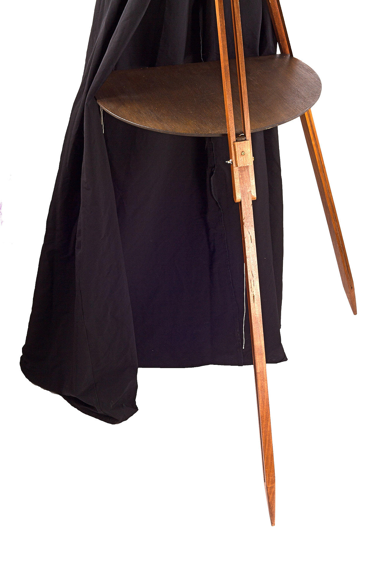 early French camera obscura with adjustable prism, in good original condition, with large later tripod, drawing table and tent - a fully usable and interesting outfit
