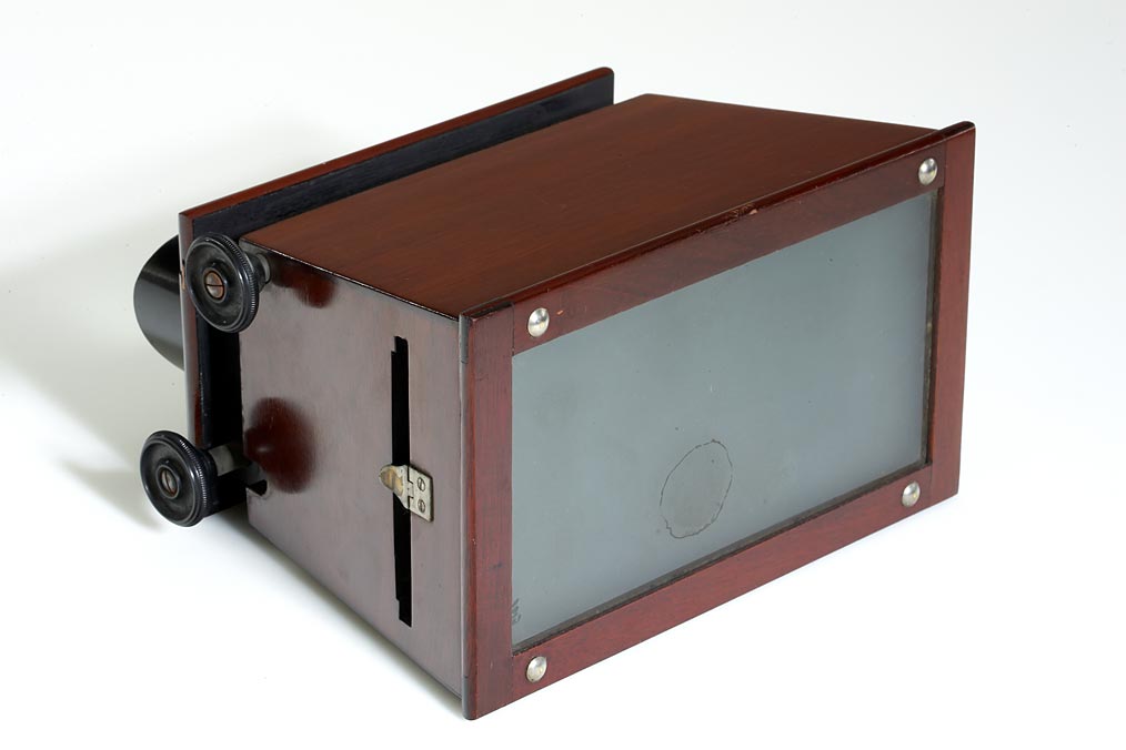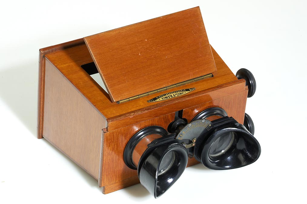 three French stereoscopes: all with wooden body, adjustable eye base and focus for glass slides in various formats, (1) Unis France ‘Standard’ for 6x13 format with hinged mirror in very good condition, (2) stereo viewer Unis France for 6x13cm format with hinged mirror, the indicator-arrow for the adjustable eye base is broken, otherwise in very nice condition, (3) sought-after Gaumont viewer for 9x18 slides, the left ocularadjustable eye base does not work, otherwise a nice collectable piece in good condition. (3)