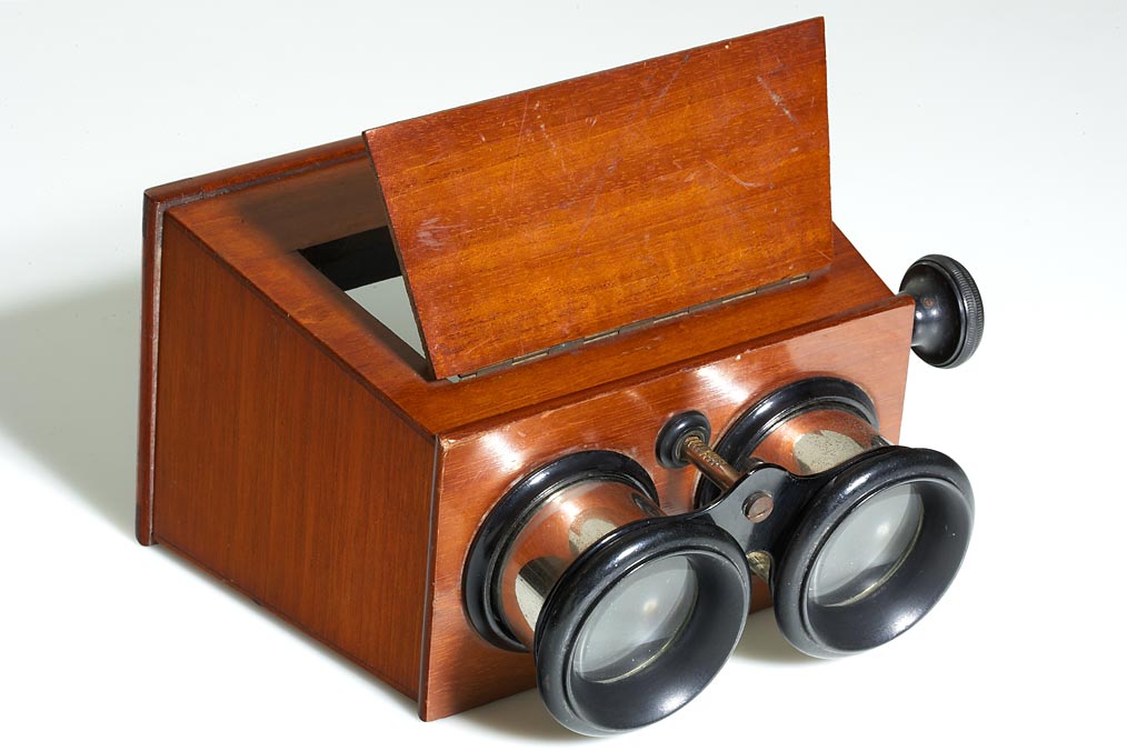 three French stereoscopes for 6x13cm slides, all with wooden bodies, hinged mirror and adjustable focus (1) beautifully crafted and rare viewer by Francia Mackenstein in excellent condition, adjustable eye base, (2) viewer by Mackenstein Paris in nearly mint condition, (3) Stereocycle Leroy in good used condition. (3)