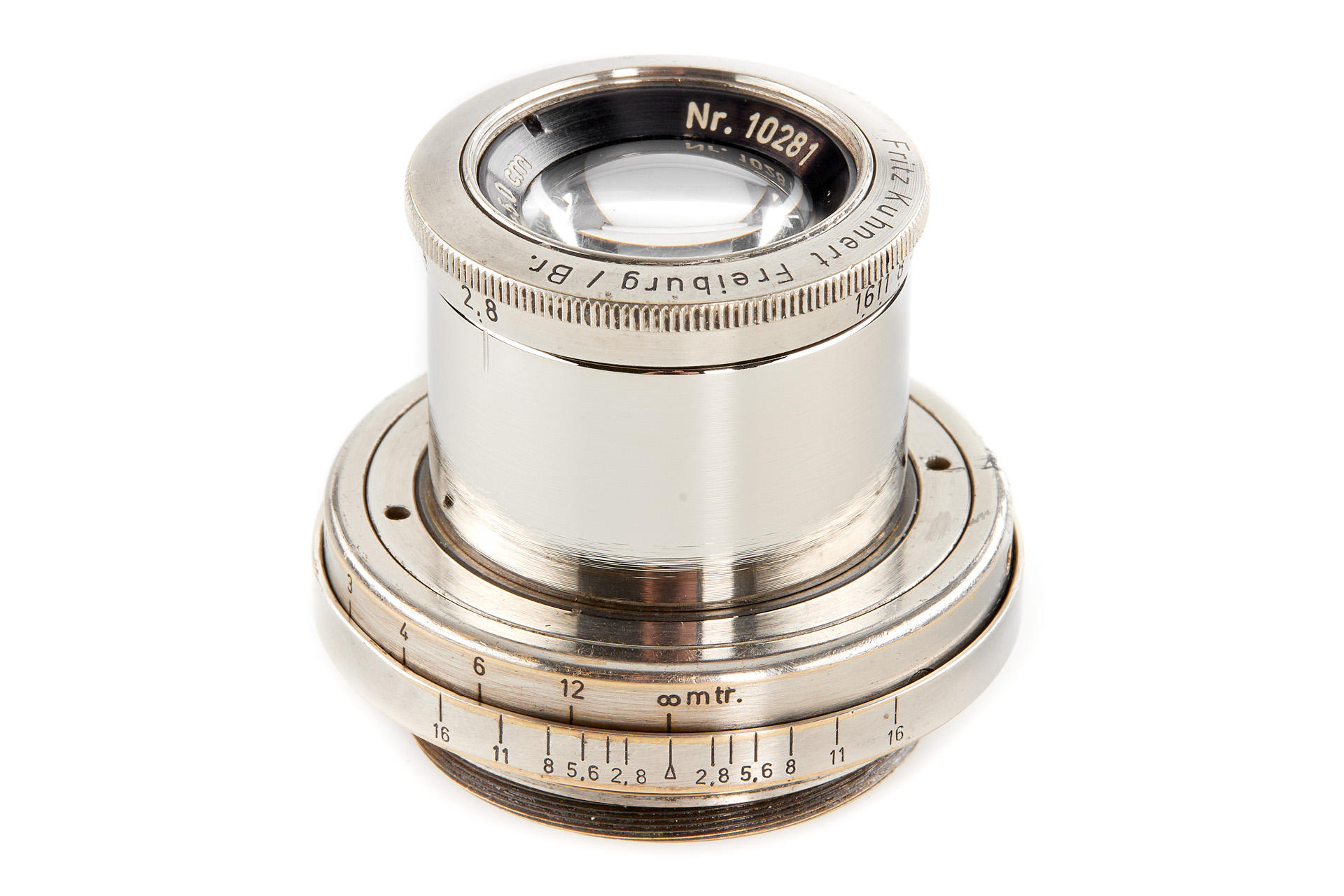 A very rare standard uncoated lens, rangefinder coupled for Leica M39, with nickel housing, in excellent condition with good optics, made by Fritz Kuhnert, Freiburg, Germany, who was best known for his Futura cameras