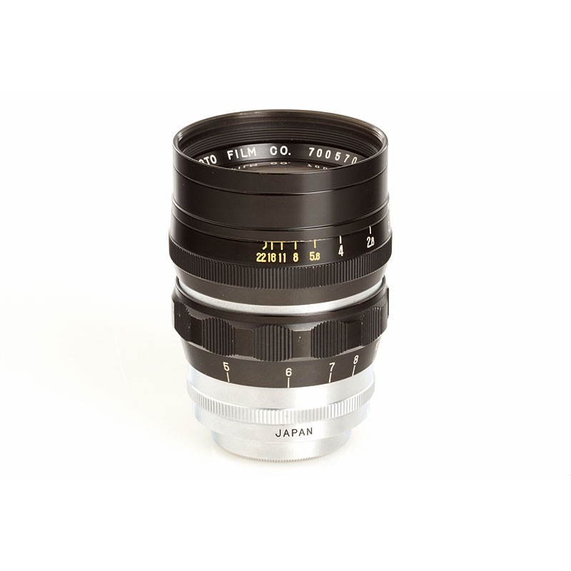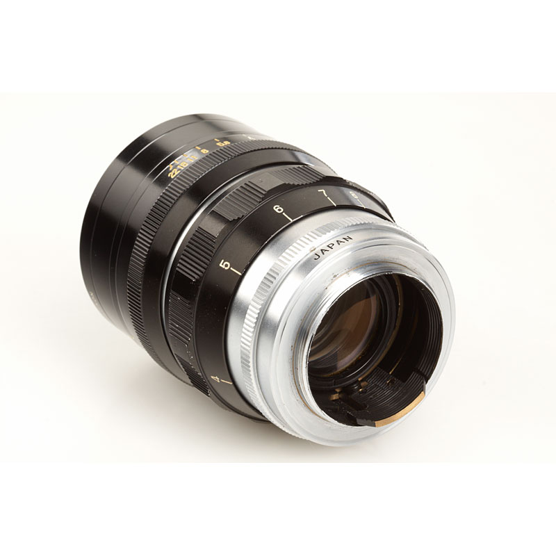 very rare, early version of the rangefinder coupled M39 lens in black/chrome, in almost mint condition with hood, both original caps, original Fujinon 100mm finder and leather keeper