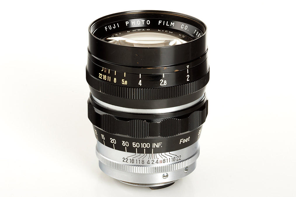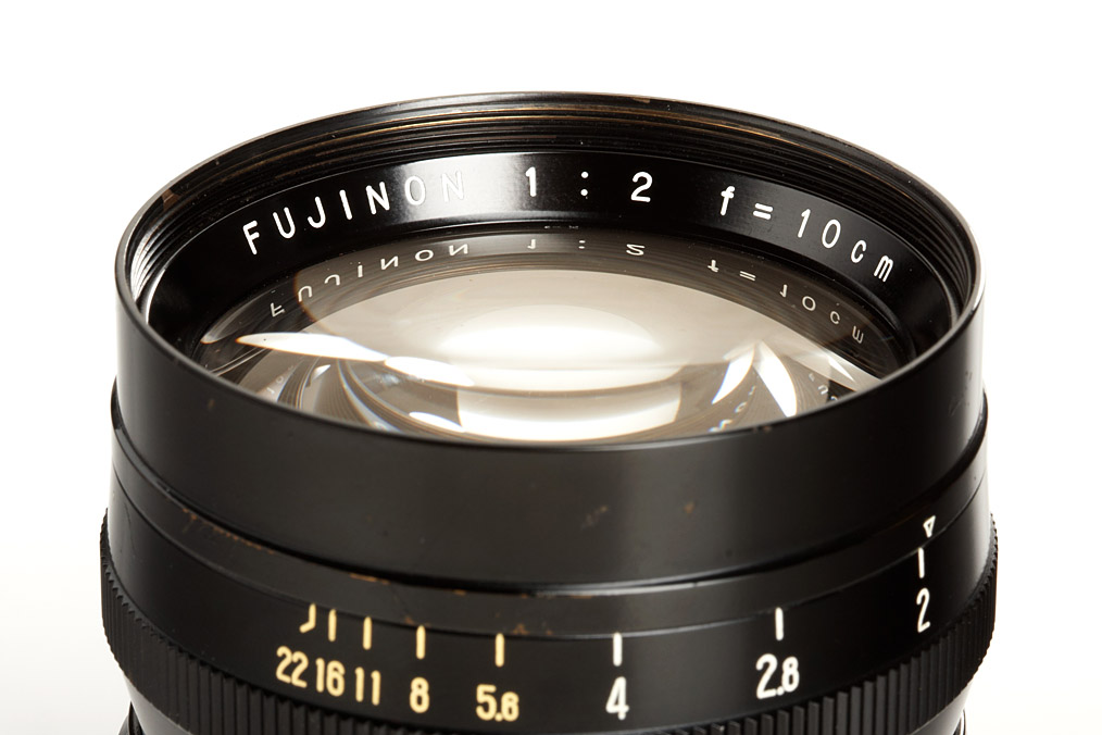 very rare, early version of the rangefinder coupled M39 lens in black/chrome, in excellent condition (cleaning marks), original Fujinon 100mm finder