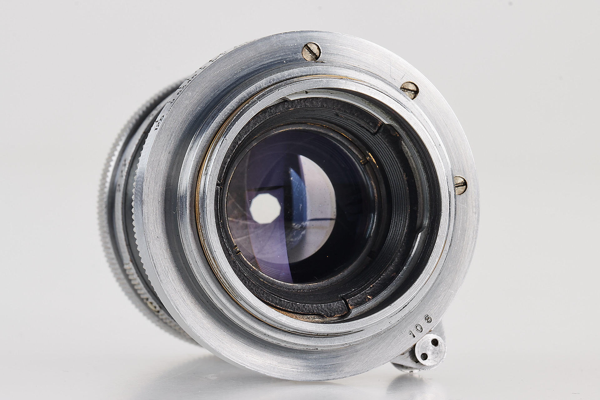 very rare and original rangefinder coupled lens for M39, most probably one of the first ever made, with early blue/purple coating, design clearly inspired by the Summitar, in very good condition, '106' engraved on the mount and 'S' on the barrel, with rear cap