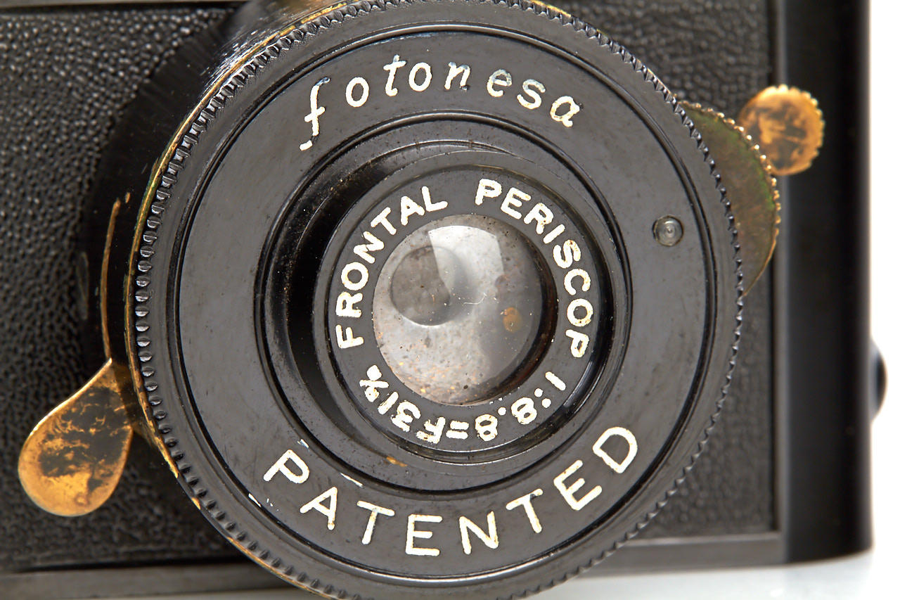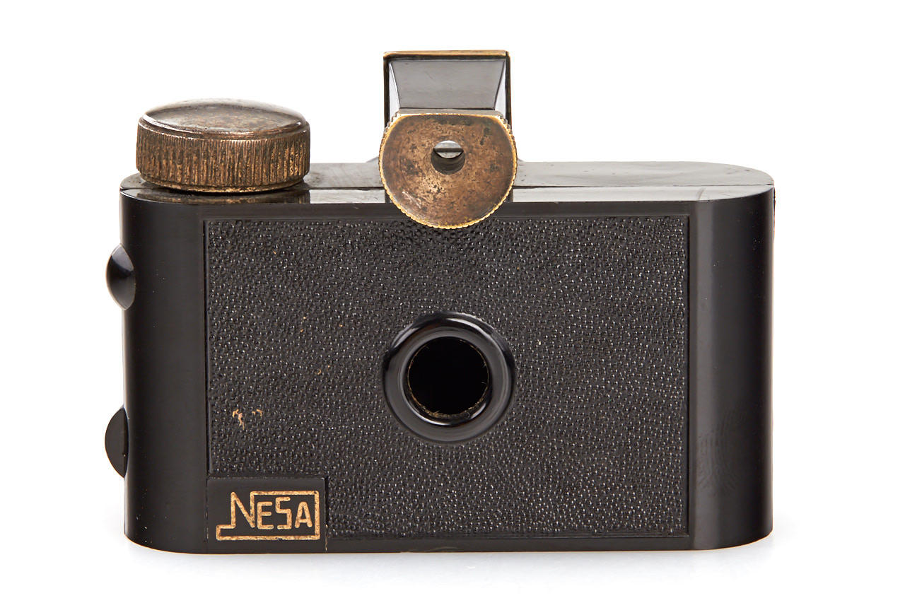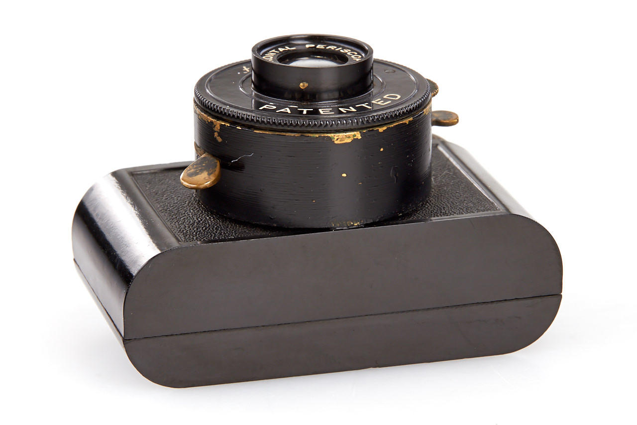 rare bakelite subminiature viewfinder camera for 20x20mm exposures, with Frontal Periscop 8.8/31mm lens, in very good condition, original soft case