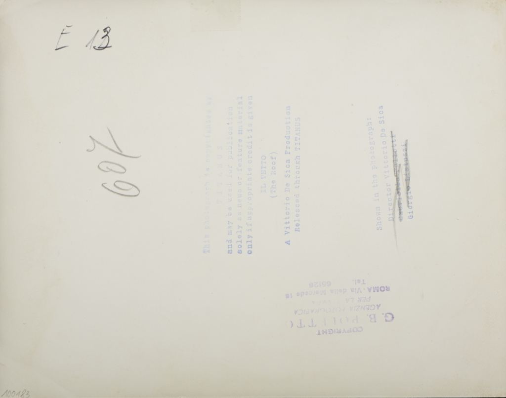 GIOVANNI BATTISTA POLETTO (1915–1988) Vittorio de Sica shooting ‘Il Tetto’, 1955