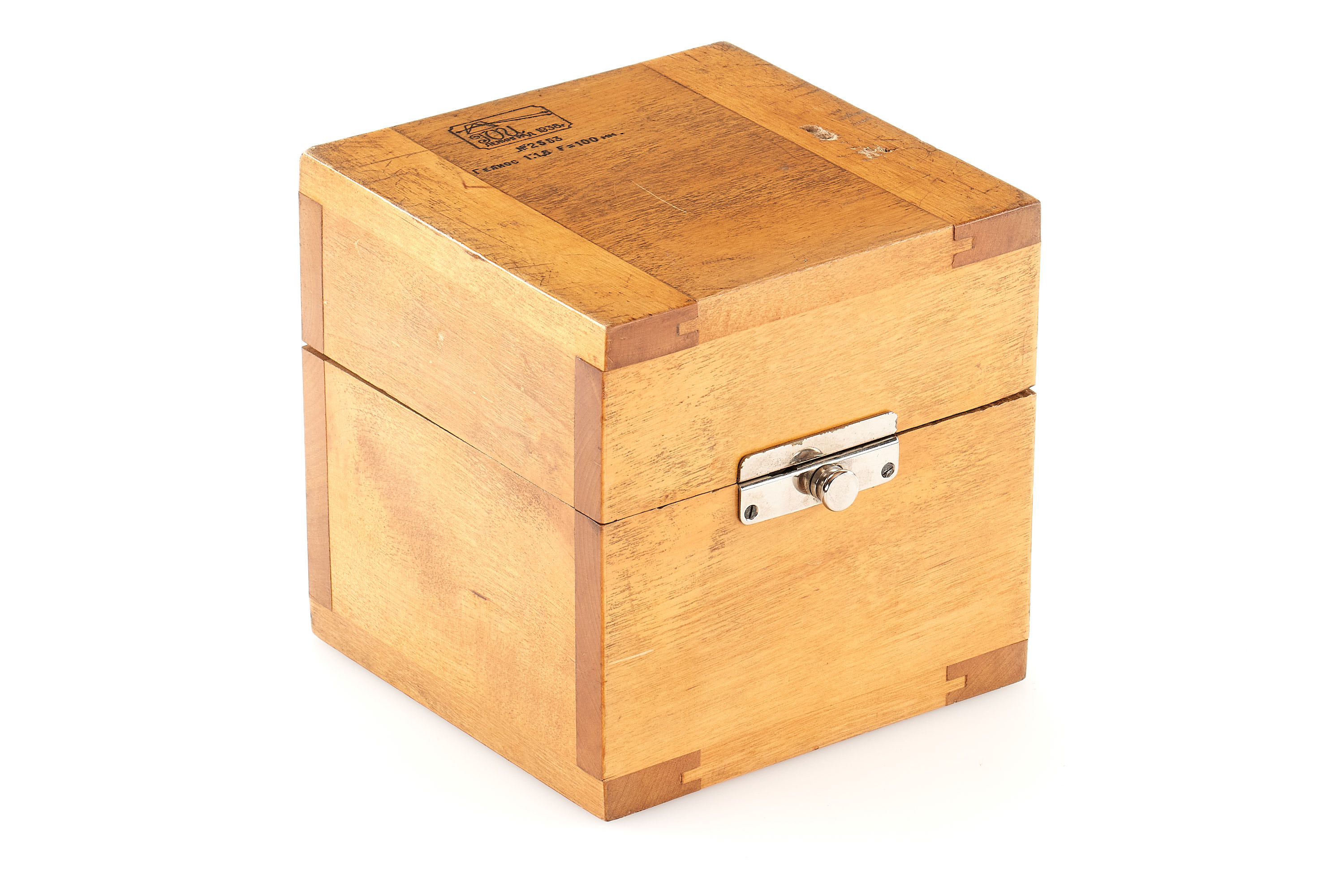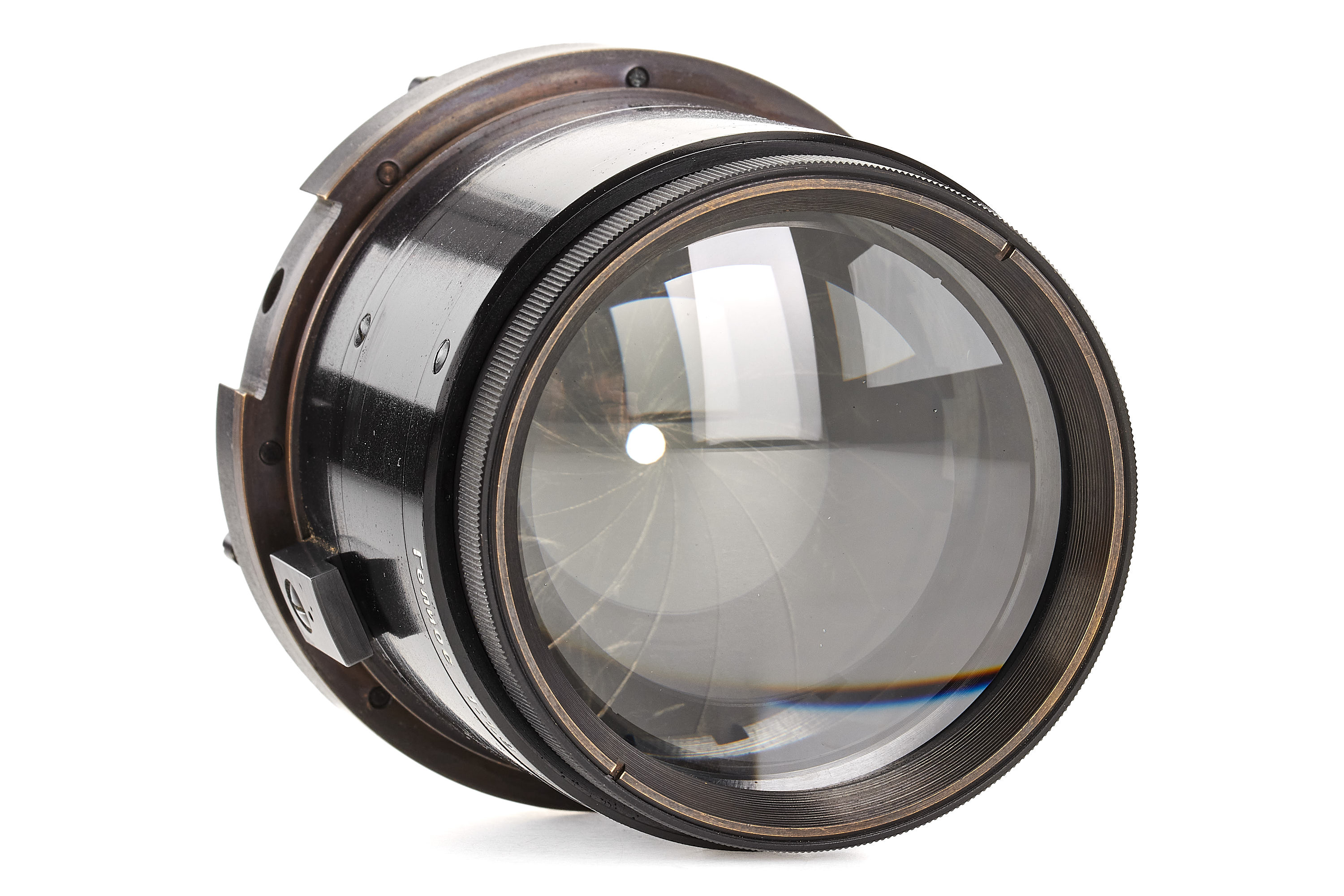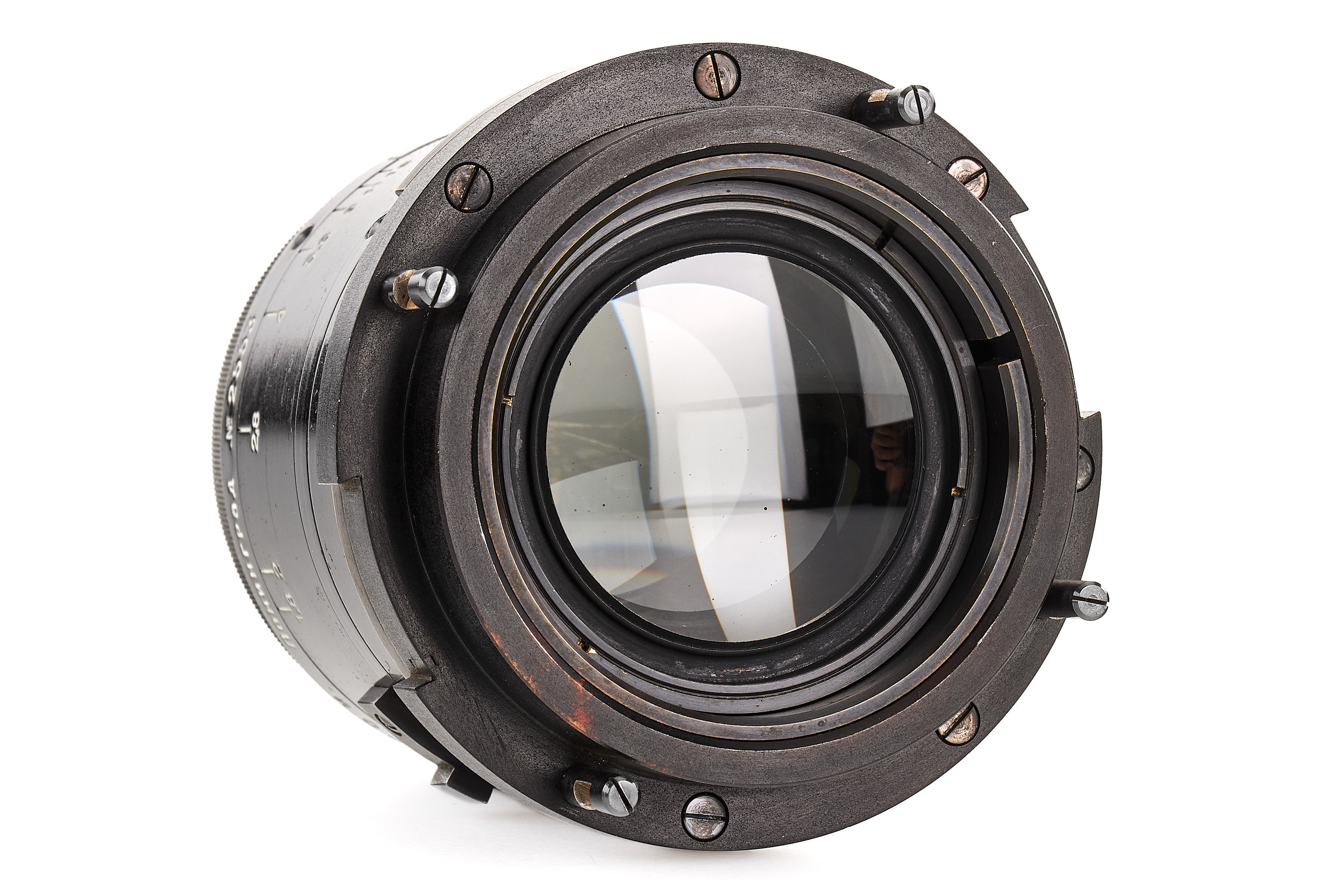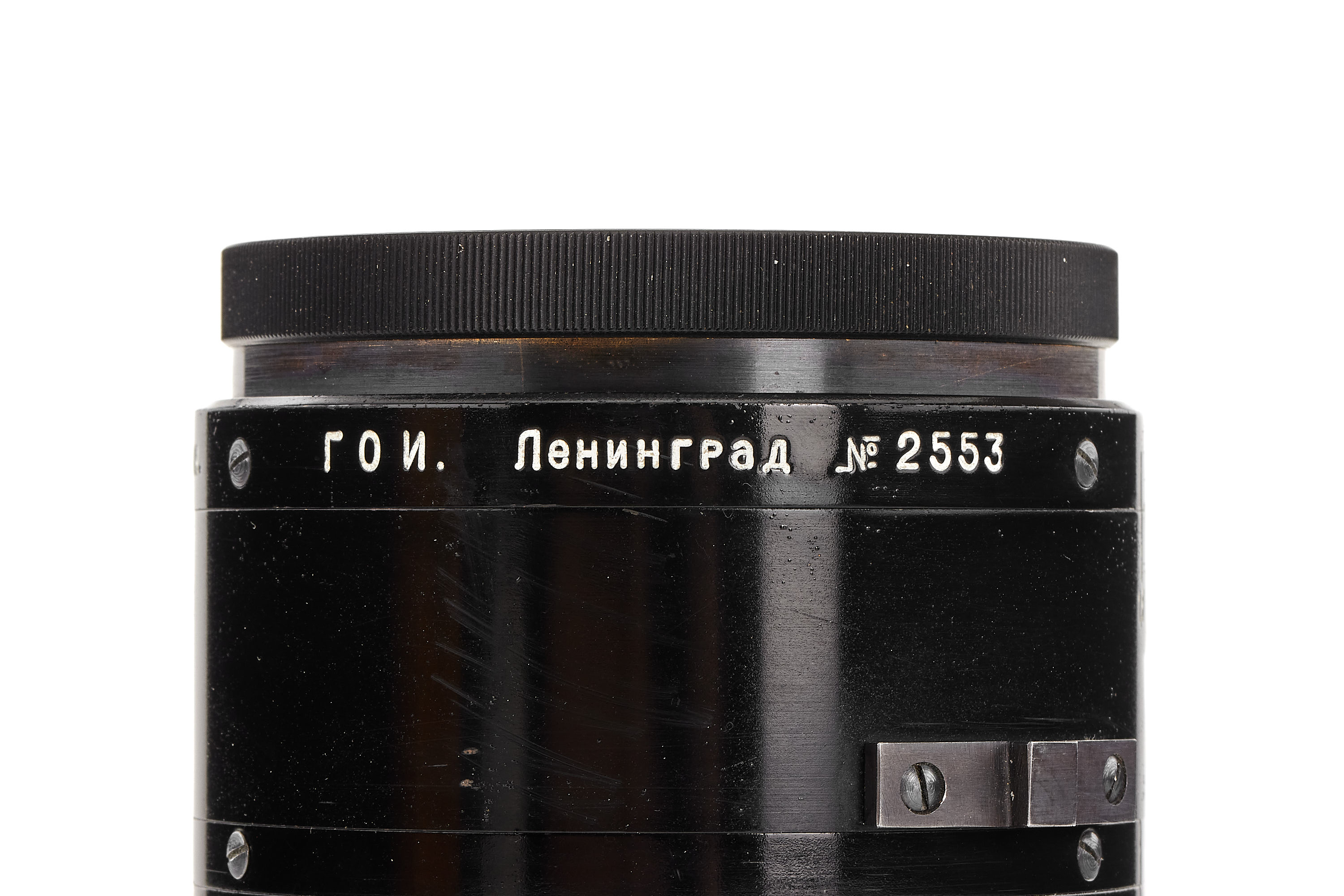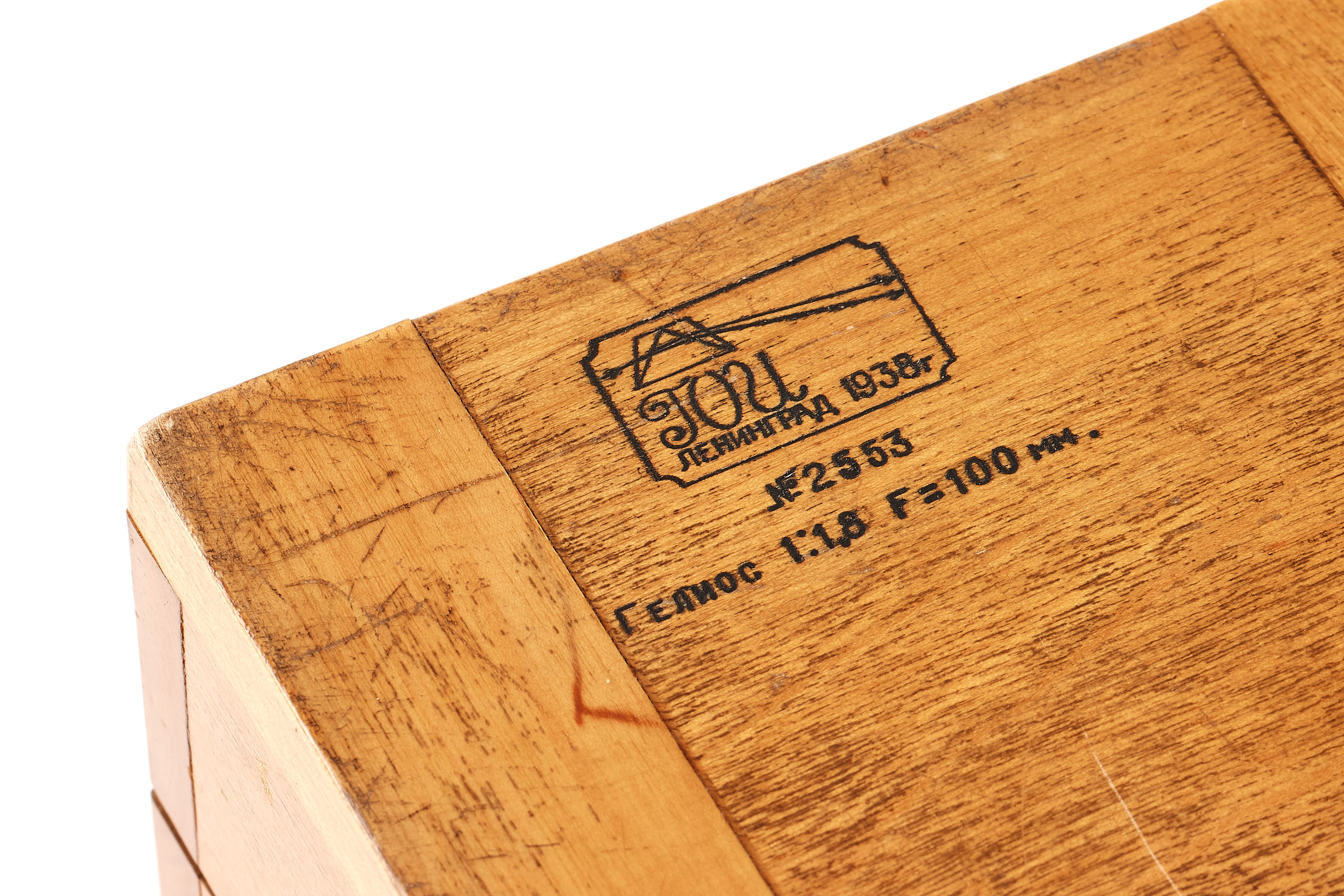 An interesting and probably unique prototype of a fast portrait lens, covering 35mm full frame, in very good condition, clean and clear optics, with very good optics, exactly this lens is shown in 'GOI lens construction book' on page 38.04B, it is described as a cine lens with color separation prism, note the fixed focus at infinity, together with matching original GOI factory wooden box (matching serial number).