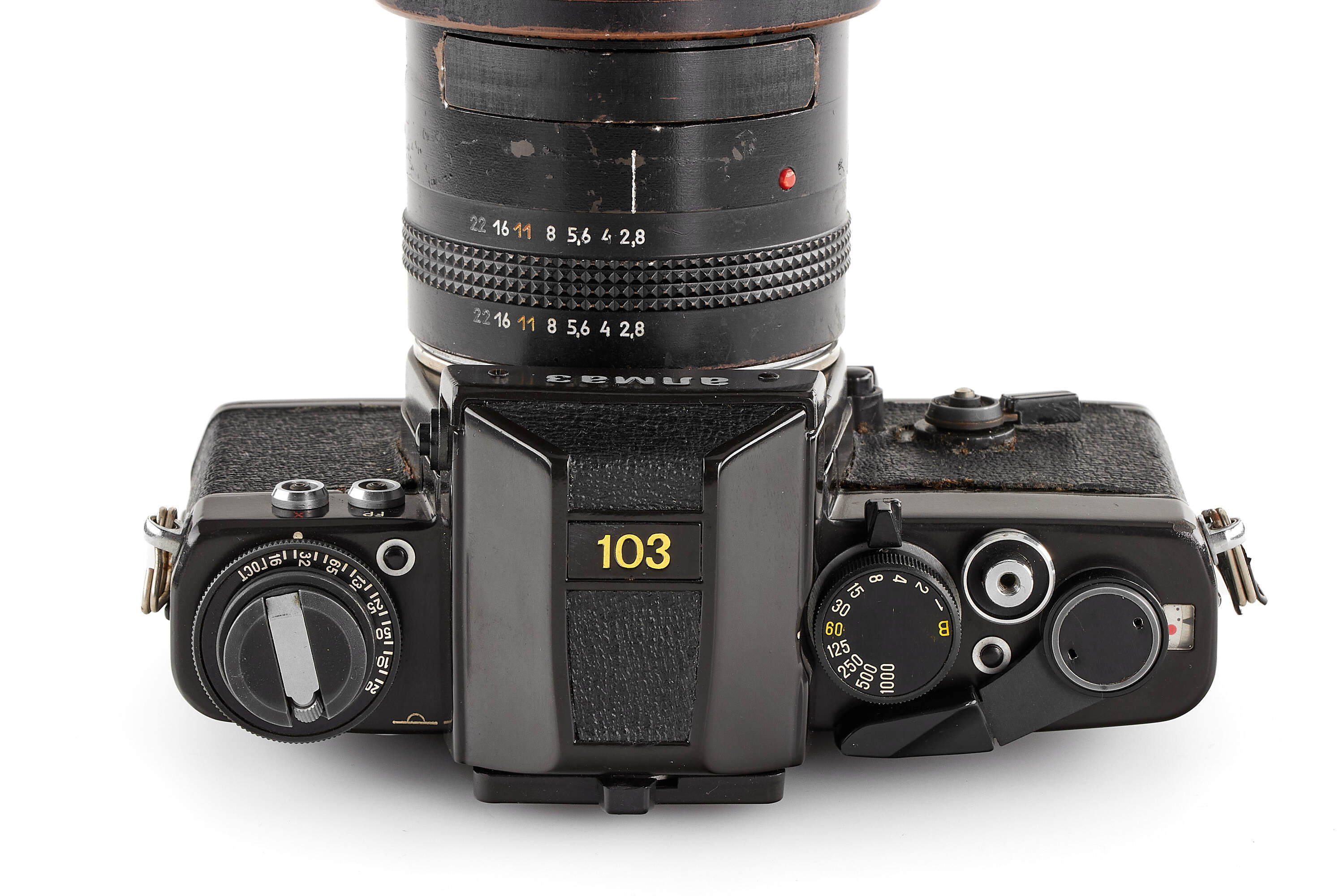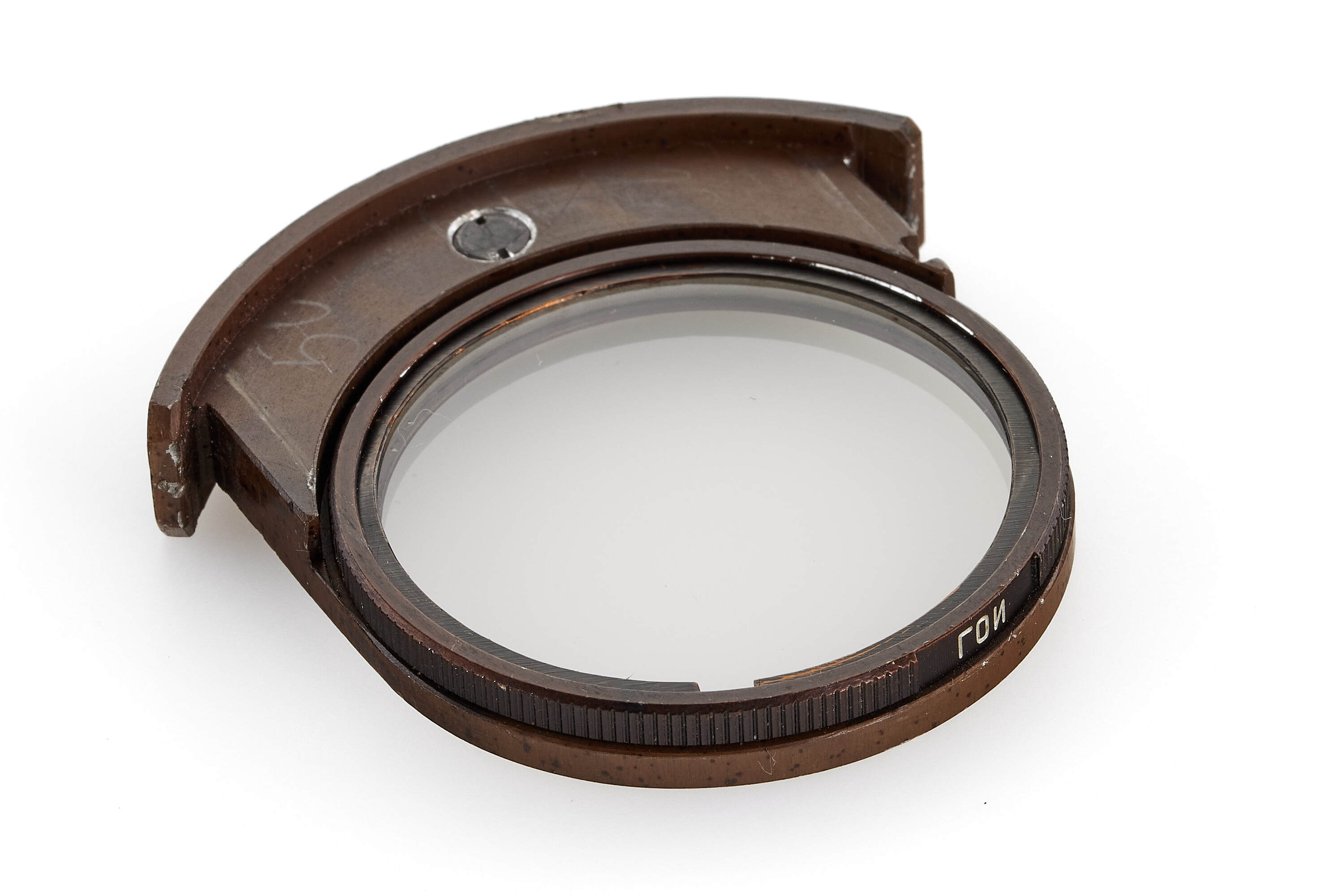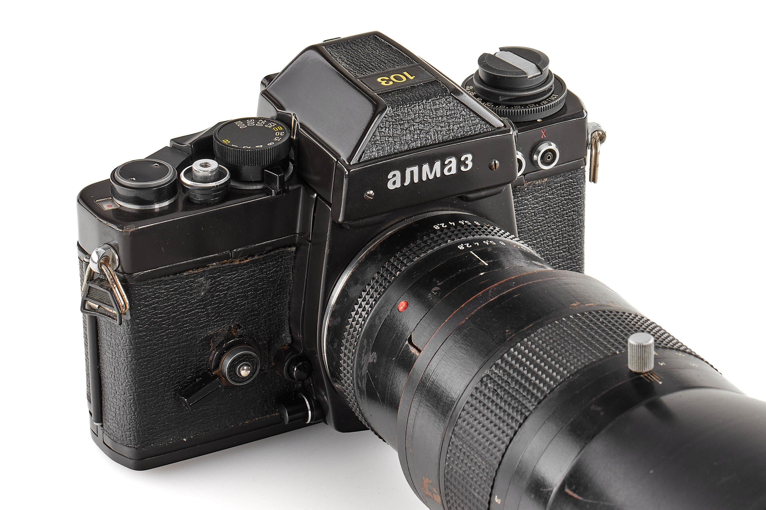 The example offered here is the only documented GOI prototype known to survive in fully operational condition. Like the later series, it features internal focusing, a built-in filter drawer, and multi-coated optics, but uniquely in the original Almaz (Pentax K) mount. The engravings are made in both Cyrillic and Latin script, suggesting that this prototype may have been intended as a presentation model for international audiences. Well preserved and fully functional, with good optics, this rare prototype is offered complete with an Almaz-103 camera body no. 8502292. A true rarity of museum quality, representing a milestone in Soviet optical design and a unique opportunity for advanced collectors.