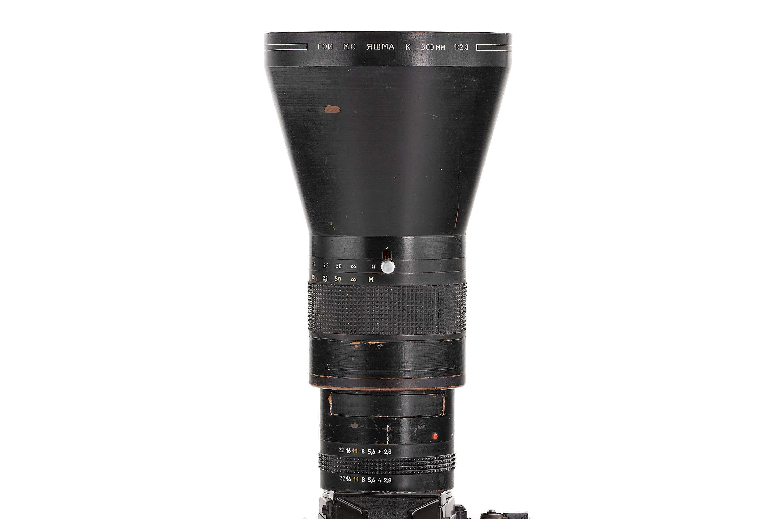 Commissioned by the Soviet Olympic Committee in 1978 and developed by the State Optical Institute (GOI) for the 1980 Moscow Olympic Games, this ambitious telephoto lens was originally intended for use with the newly introduced Almaz-102 camera. Due to its highly complex optical system, however, performance comparable to contemporary Nikon and Canon designs could not be achieved at the time, and production was delayed. Only in 1986 did the Zavod Arsenal in Kiev begin small-scale production of the Yashma-4N lens for Kiev SLR cameras with Nikon mount.