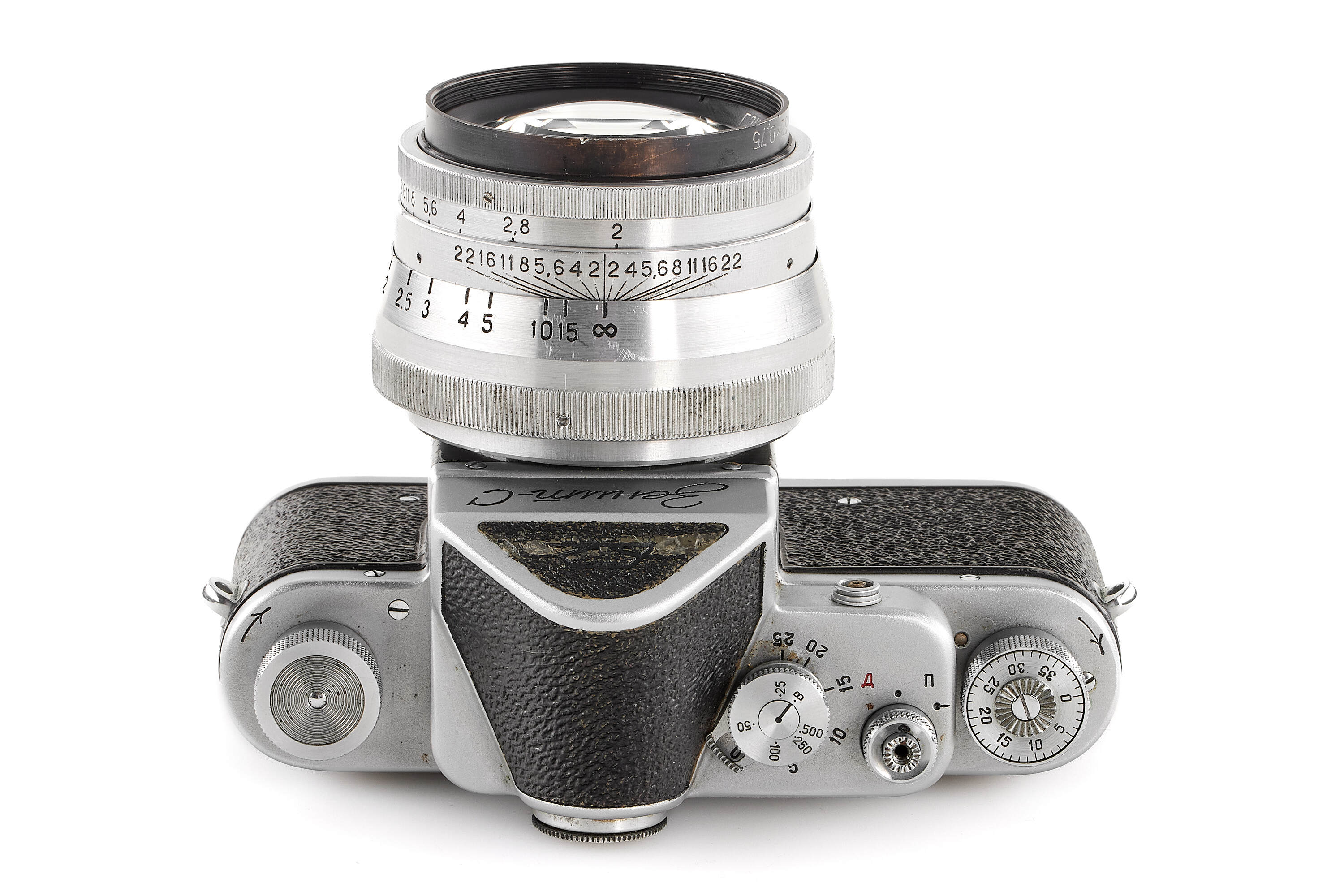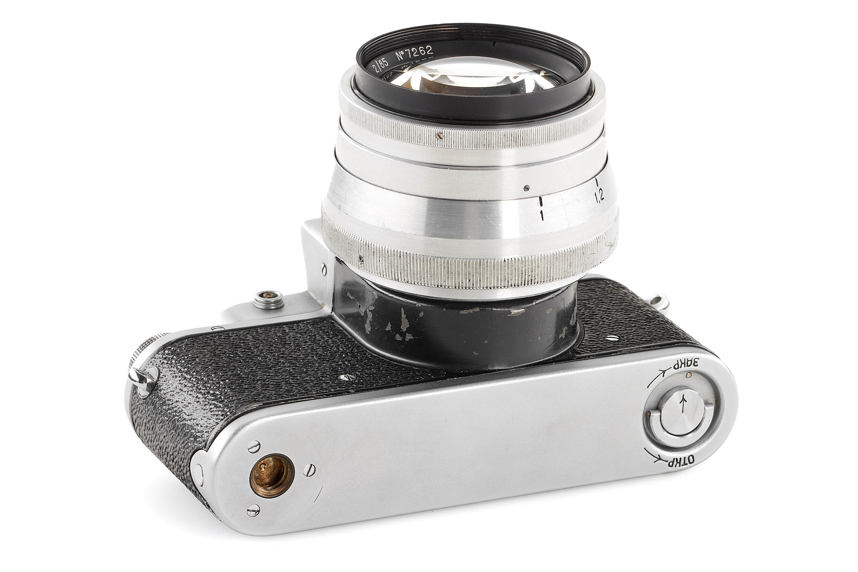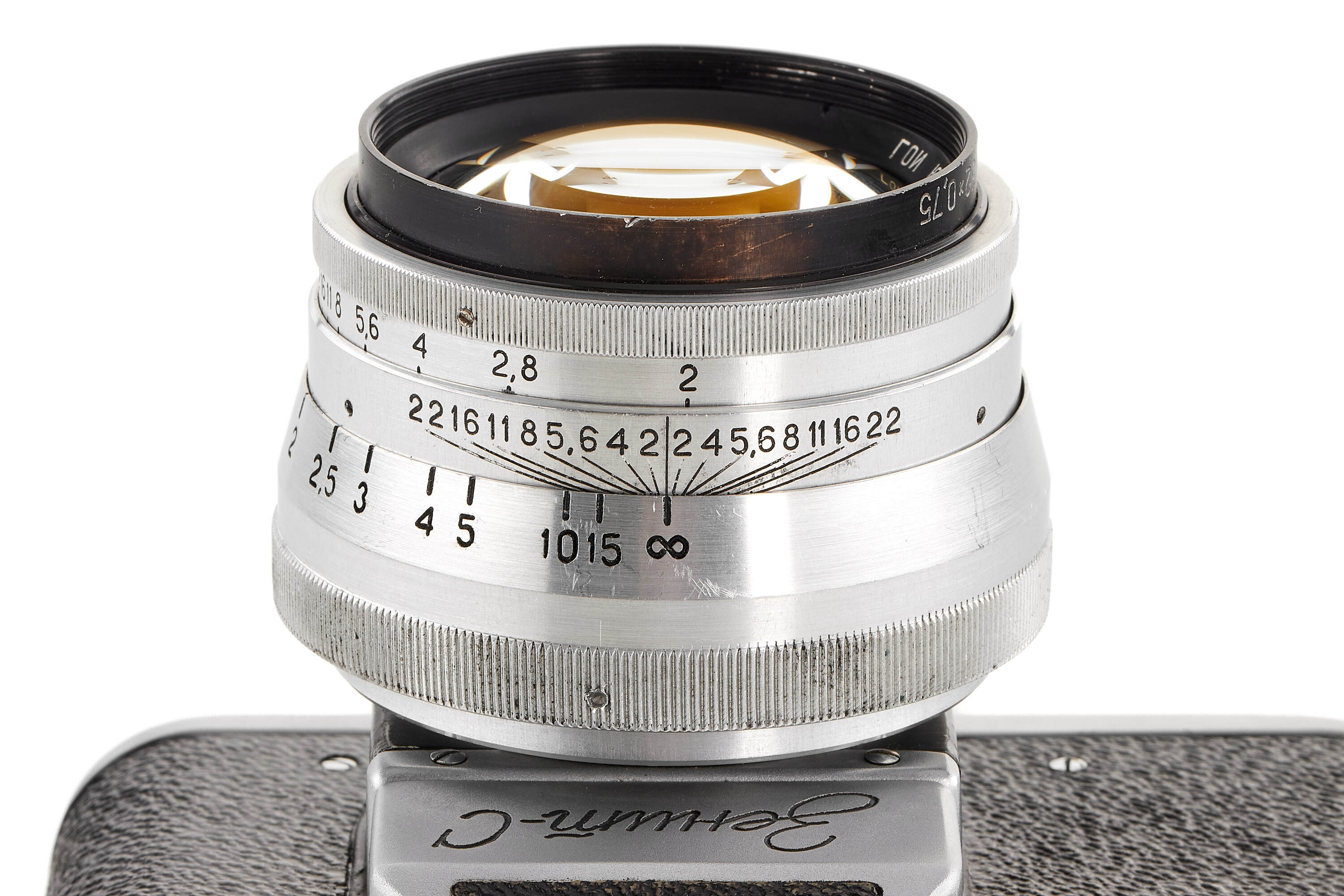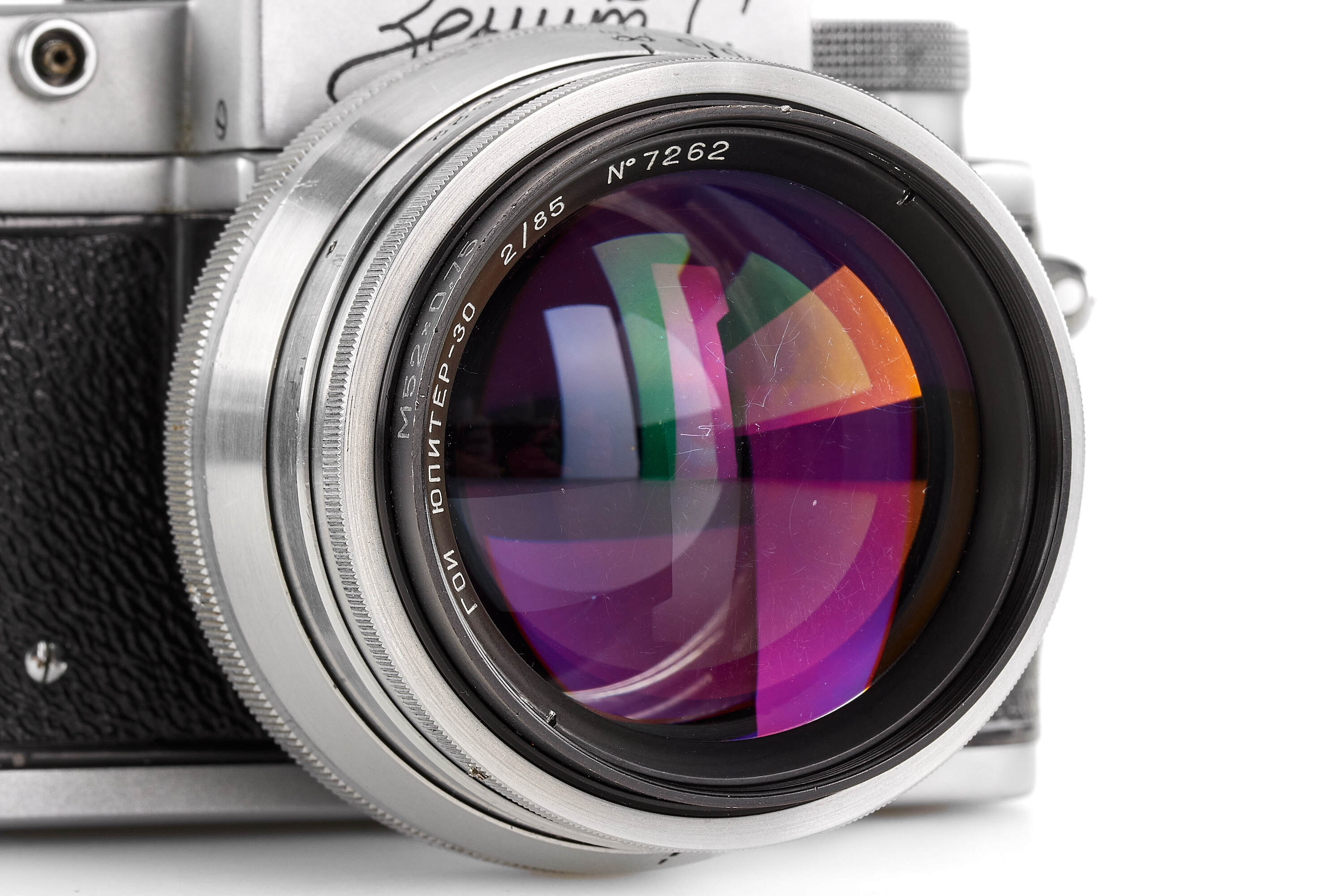 The example offered here is an original prototype, in very good, fully original condition, with perfectly clean optics. Although it carries no MC marking, it shows a distinctly different and remarkably refined coating compared to the Jupiter-9, making it a truly unique collector’s piece. It is offered together with a Zenit-C camera no. 58158298.