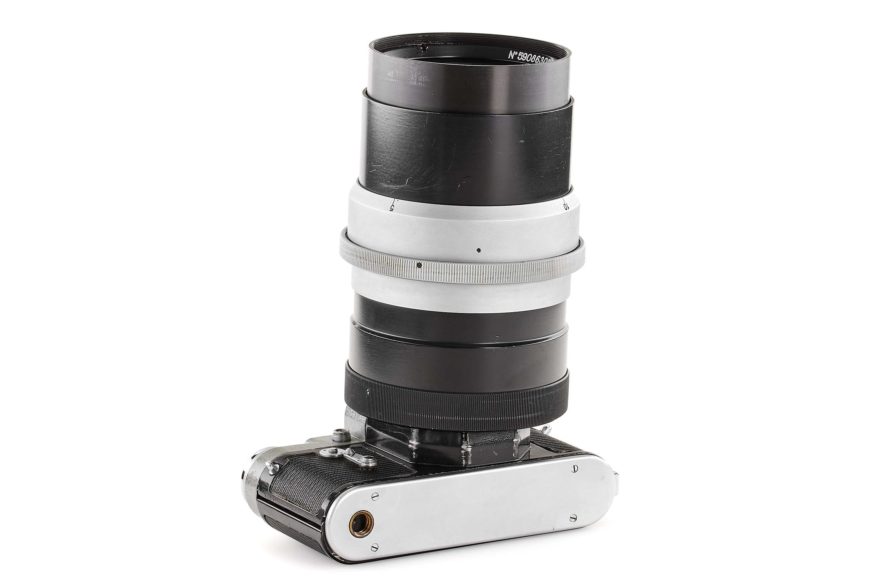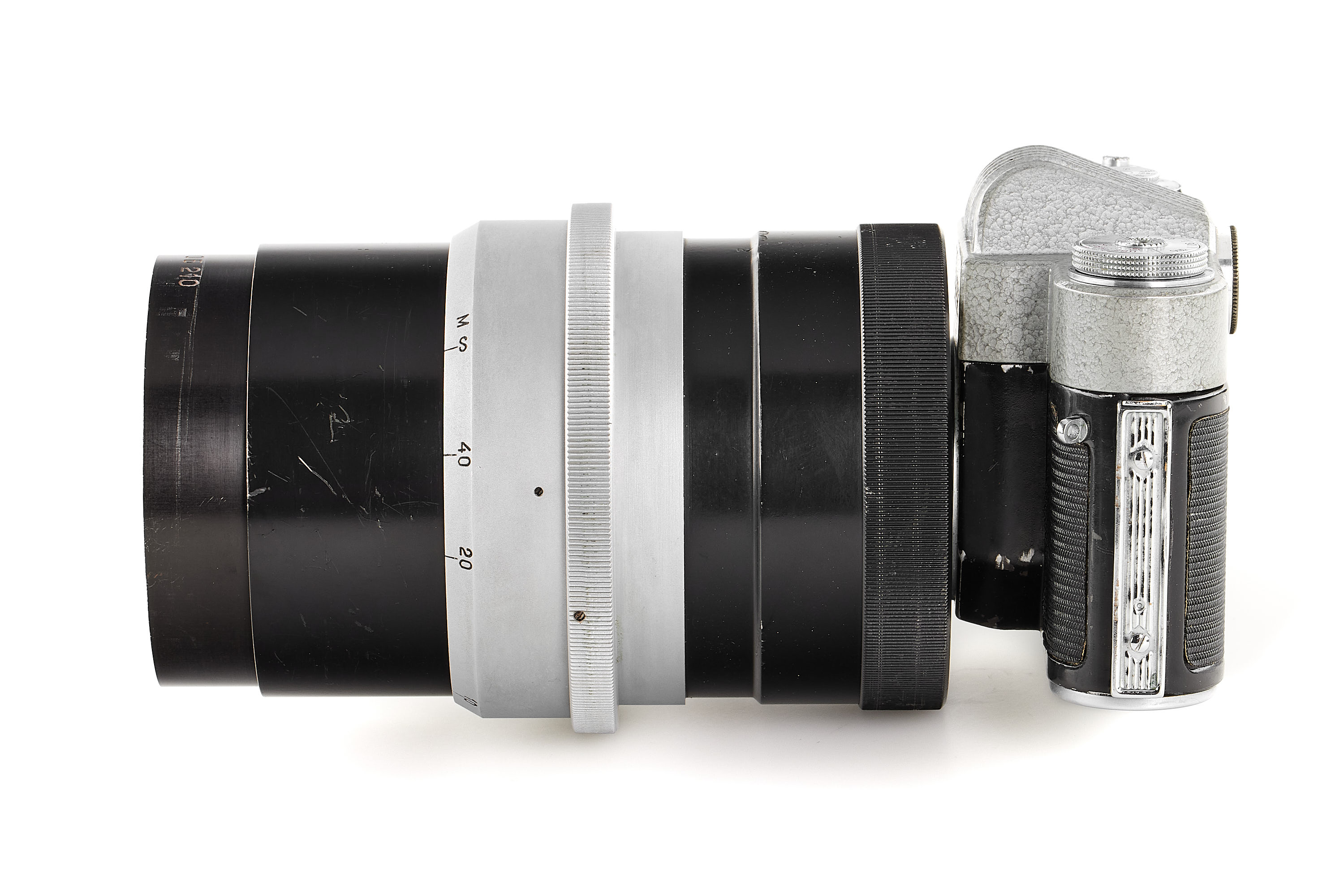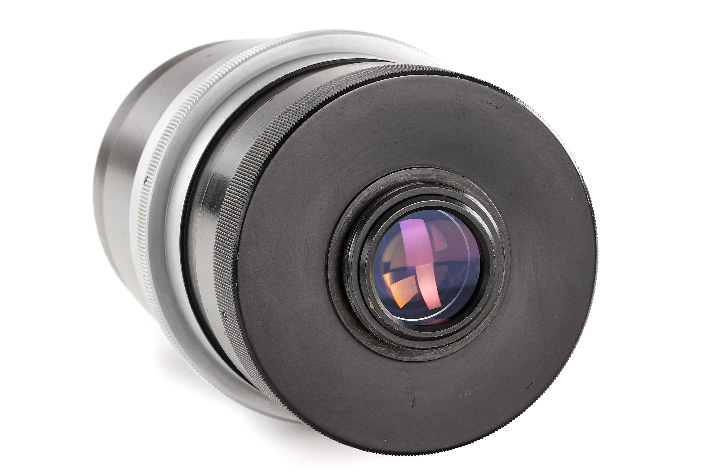 Extremely rare GOI OB-210 8/50cm, prototype of the ZM-1 lens, in very good condition, good optics only showing some dust particles, with front lens cap, quite compact mirror tele-lens in M39 mount, together with a set of 5 filters originally used with the prototype lens no.59060307 as can be read on the original GOI factory wooden box, together with 1st version Crystall no.61017547.