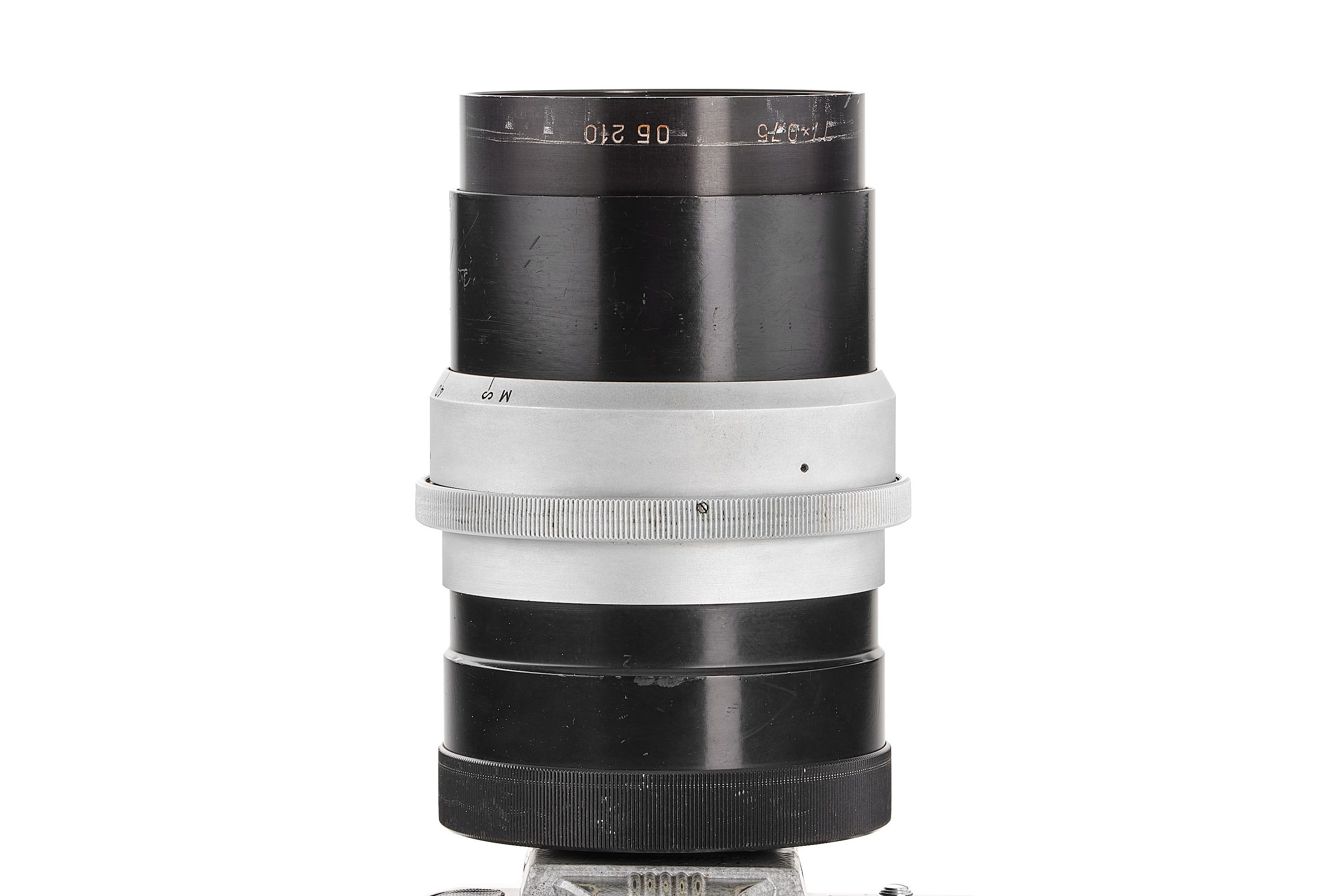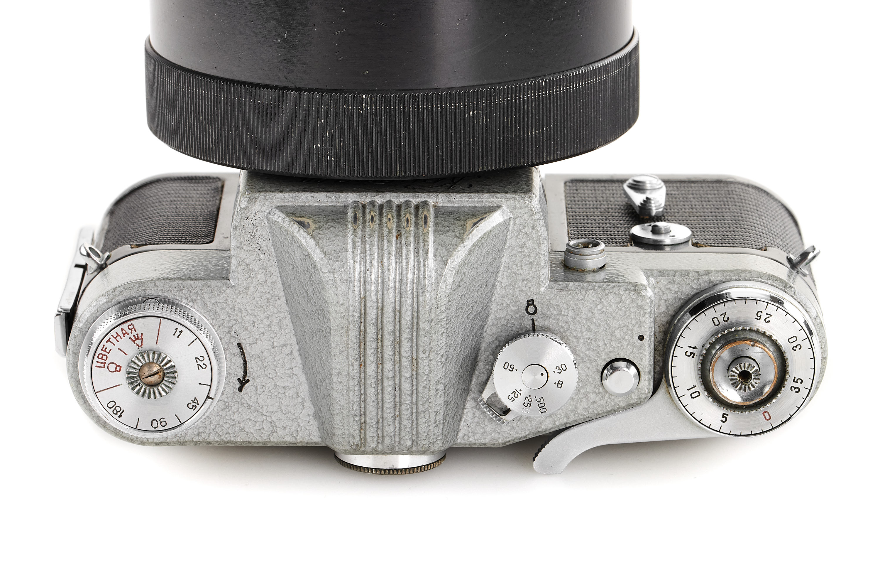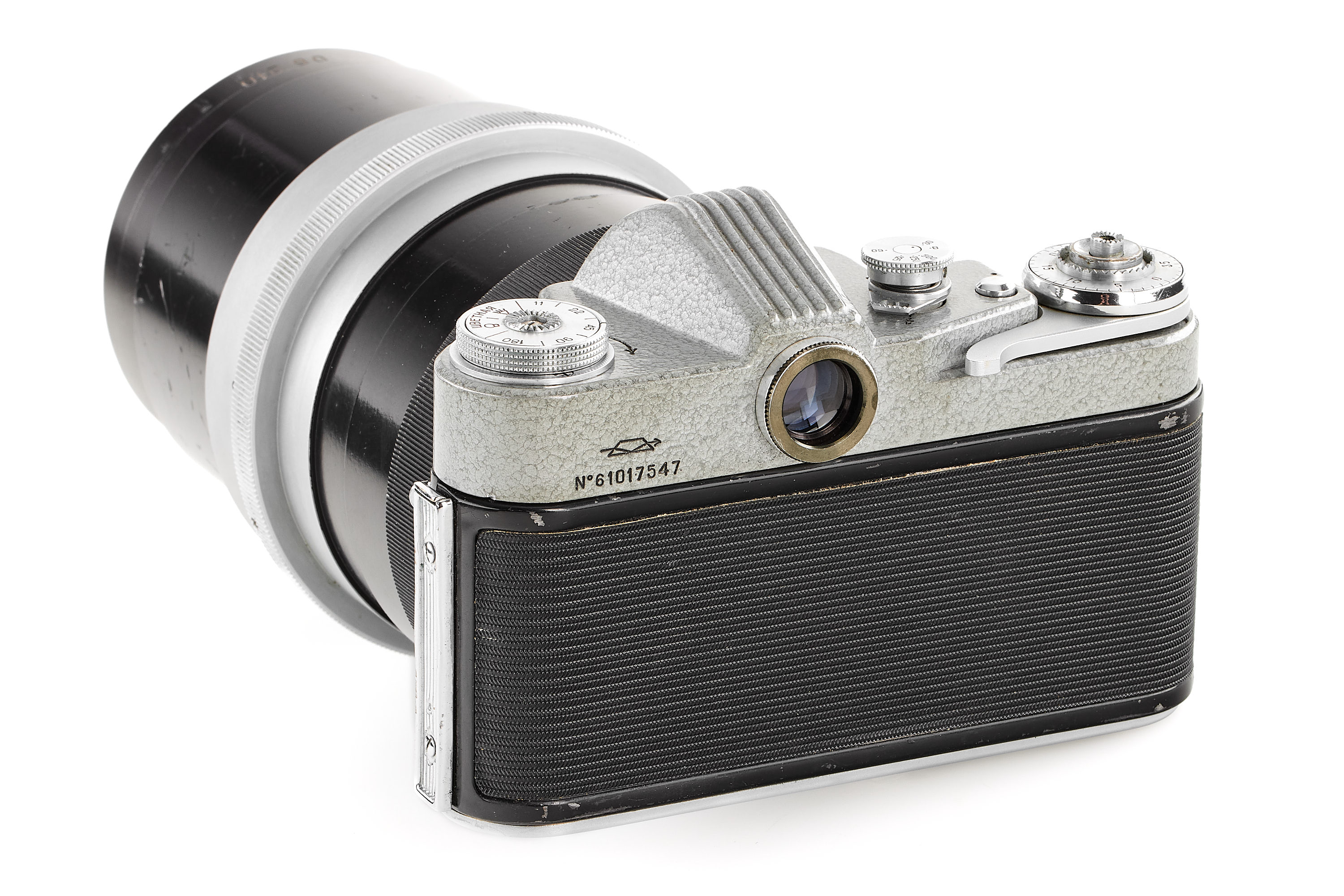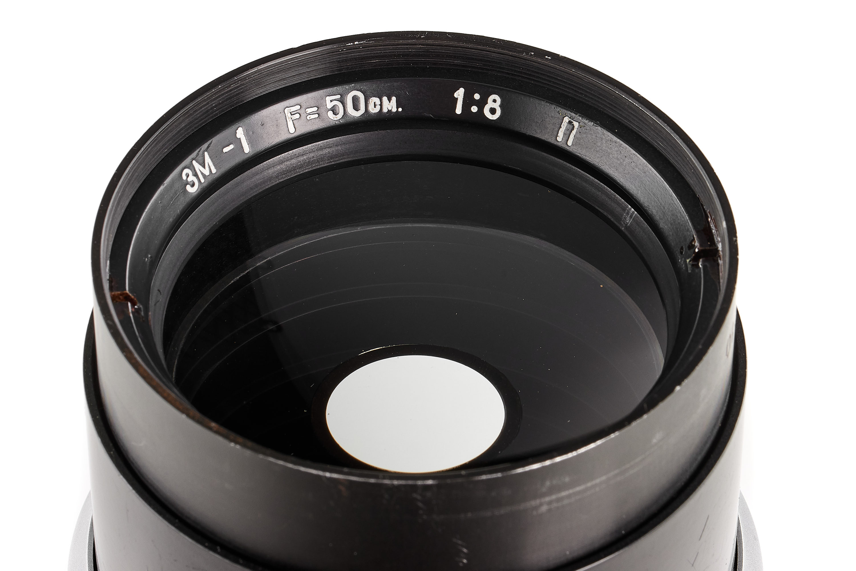 Extremely rare GOI OB-210 8/50cm, prototype of the ZM-1 lens, in very good condition, good optics only showing some dust particles, with front lens cap, quite compact mirror tele-lens in M39 mount, together with a set of 5 filters originally used with the prototype lens no.59060307 as can be read on the original GOI factory wooden box, together with 1st version Crystall no.61017547.