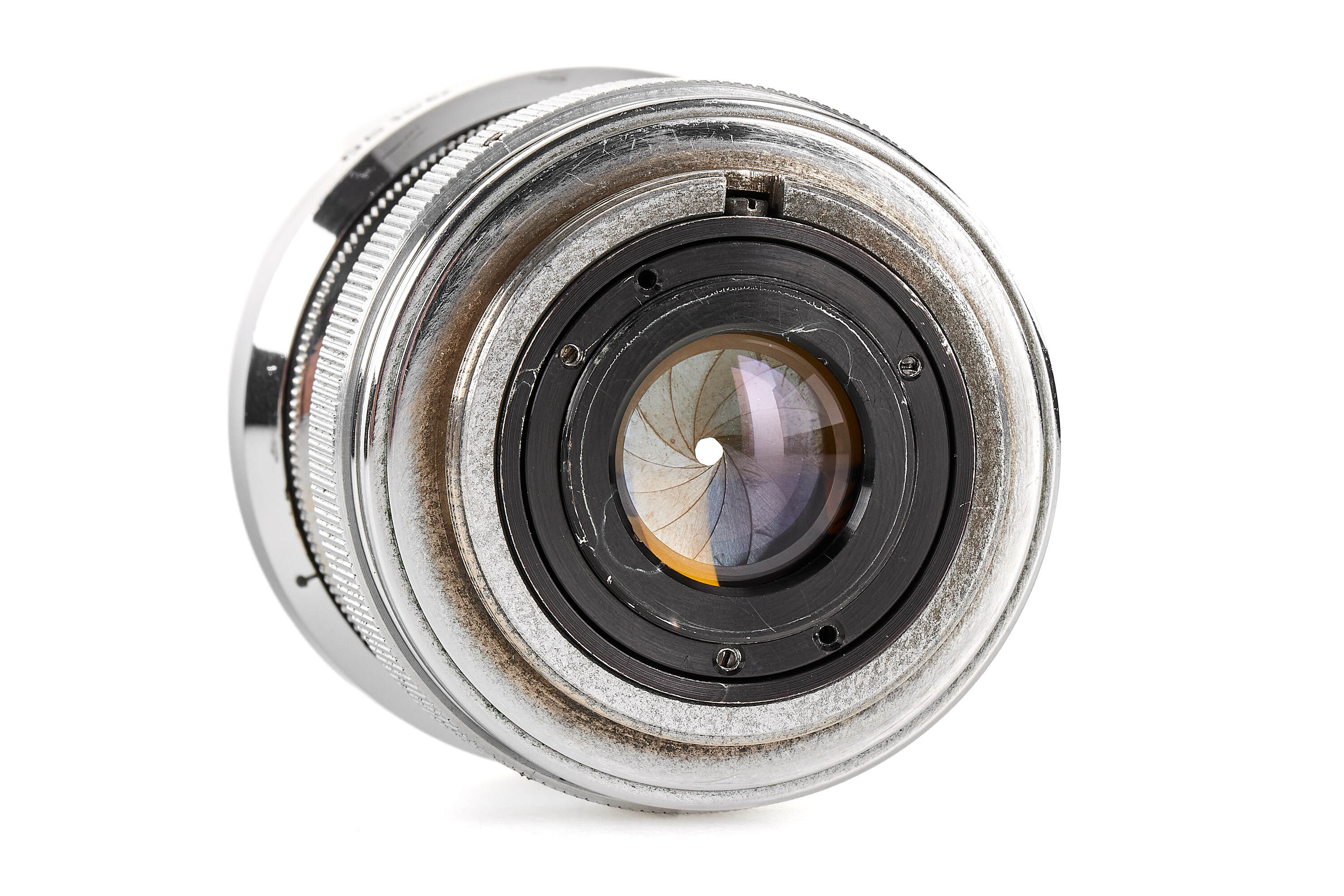 An unpublished prototype of the Mir-1 (OB120) 1:2.9/3.5cm wide-angle lens developed by GOI. Development of the Mir-1 design began in 1953—one year after the Zenit SLR appeared—and was completed in 1956. The Mir-1 later became one of the most noted Soviet wide-angle lenses, produced in multiple versions across different factories under the 1:2.8/35mm specification, including adaptations for space cameras and for M39/M42 Zenit mounts, with production spanning from 1956 to 1991. The lens design received international recognition with a Grand Prix at the 1958 Brussels World’s Fair (Expo 58).