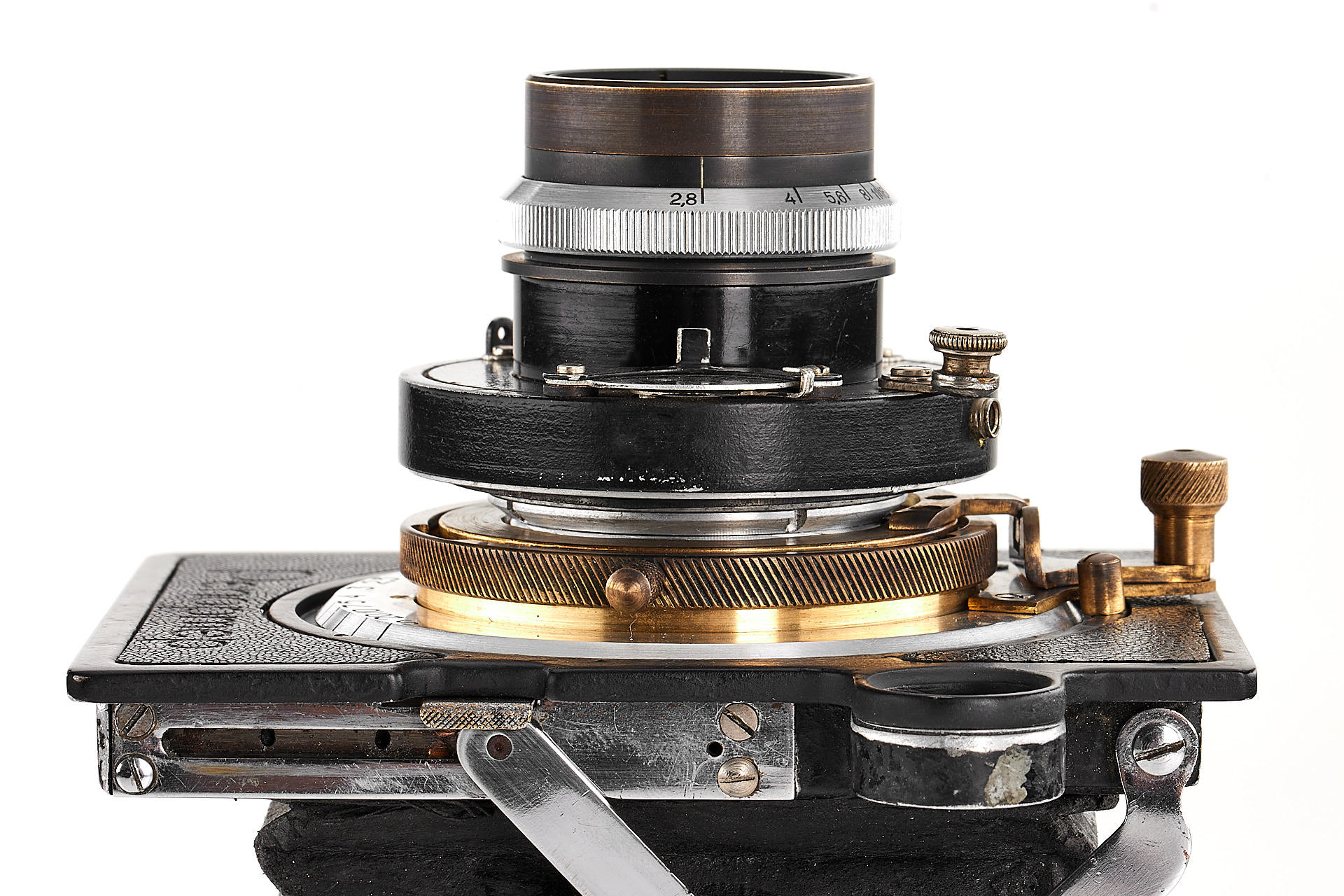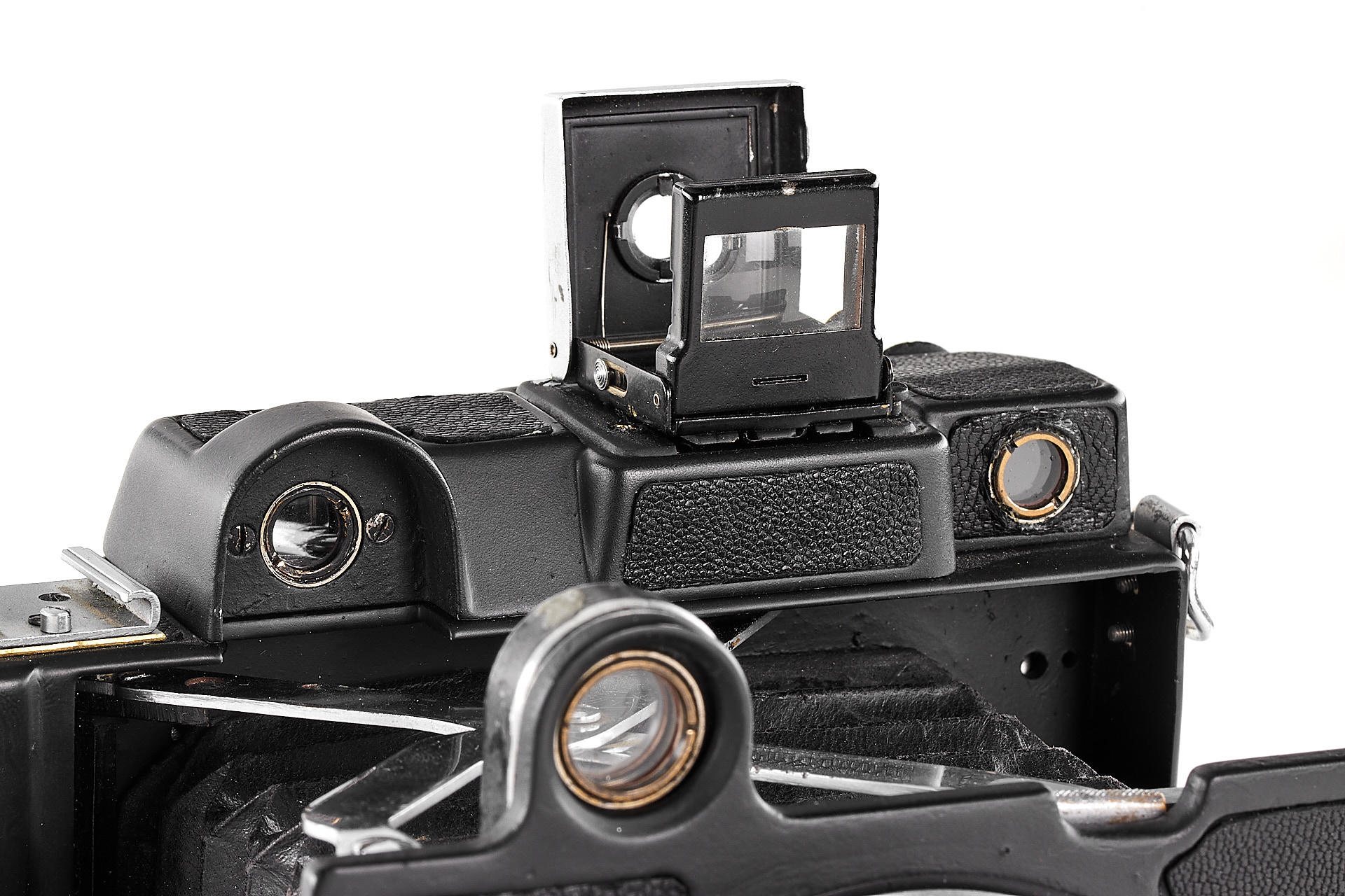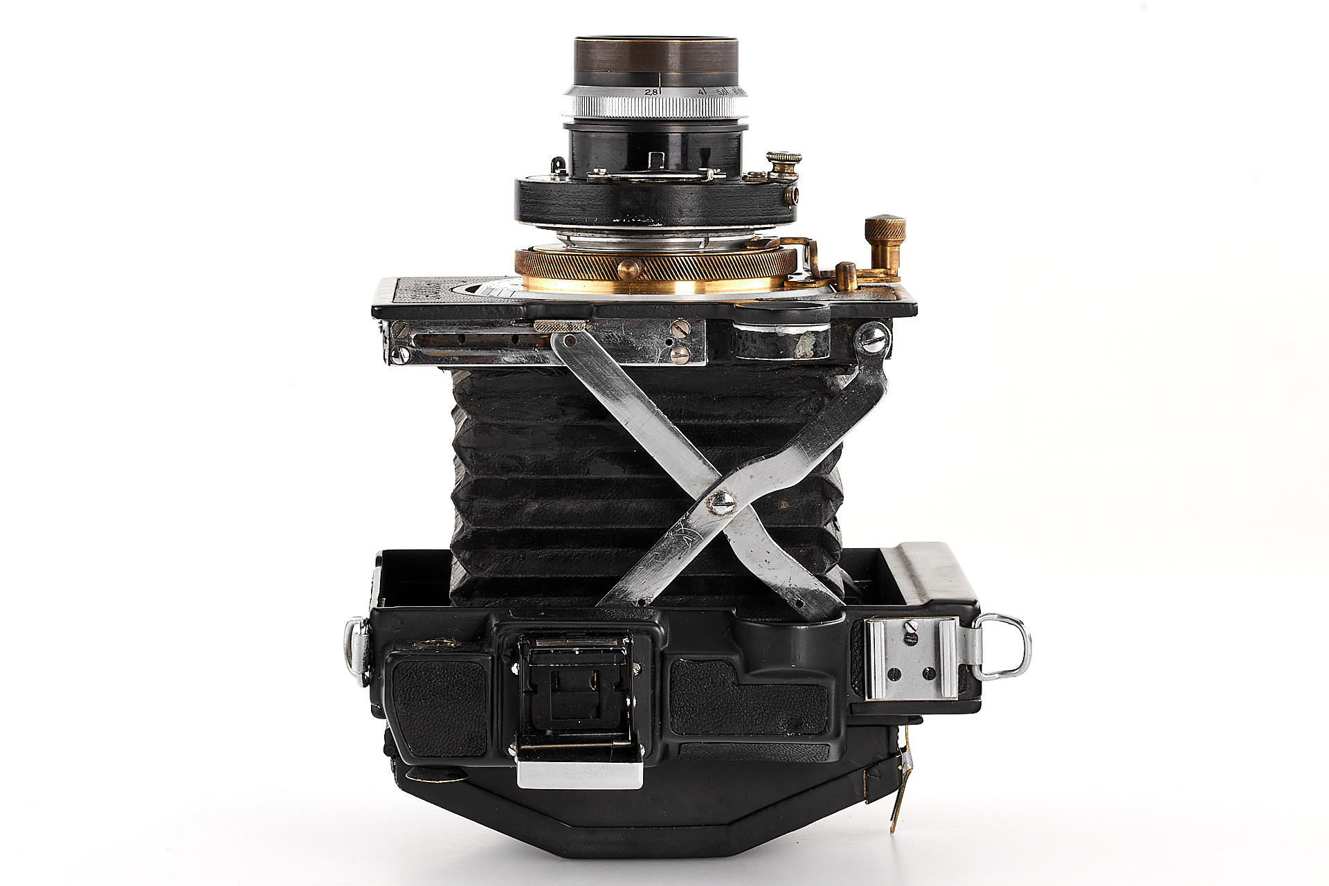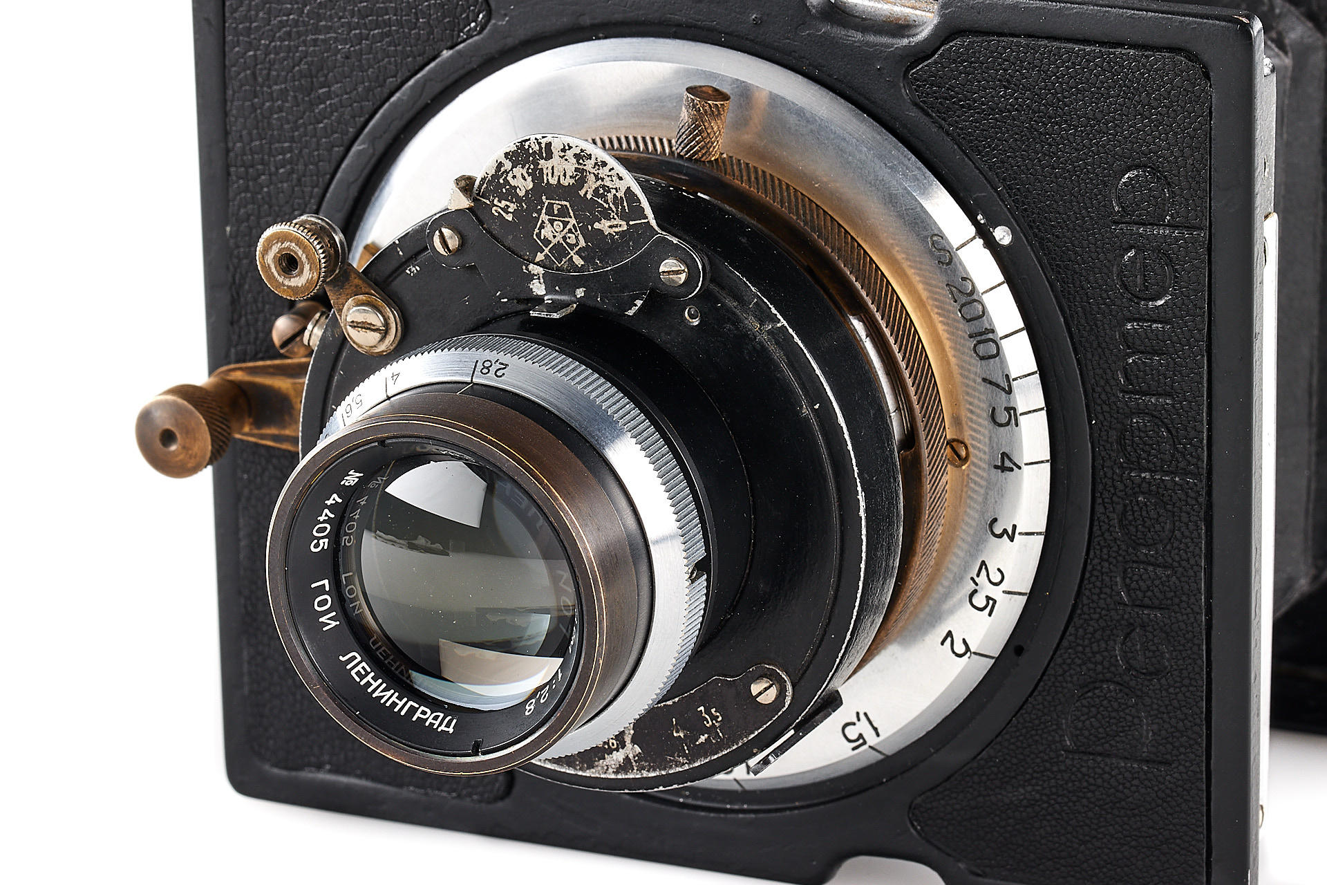 The legendary Reporter camera by GOMZ was a medium format press camera inspired by the Zeiss Ikon Deckrullo-Nettel. It was produced between 1937-1940. After WWII, around 1946-47 GOI factory together with GOMZ tried to reanimate the project by introducing an upgraded version with coupled rangefinder and a central shutter. Only one prototype is known to exist. The offered camera is in excellent condition, it is equipped with a fast, medium format GOI Industar 29 2.8/8cm no.4405 (covering up to 6x9cm). It also comes with a previously unknown rollfilm magazine with the GOMZ logo. It is a very interesting piece from Soviet photo history.