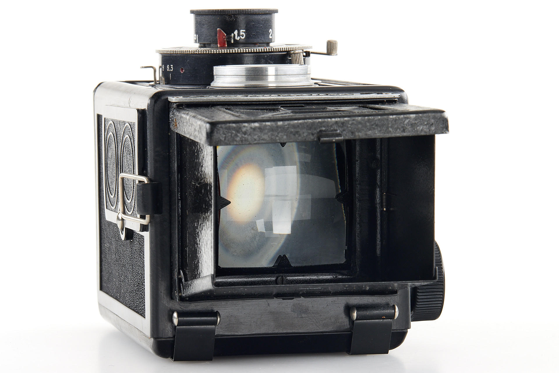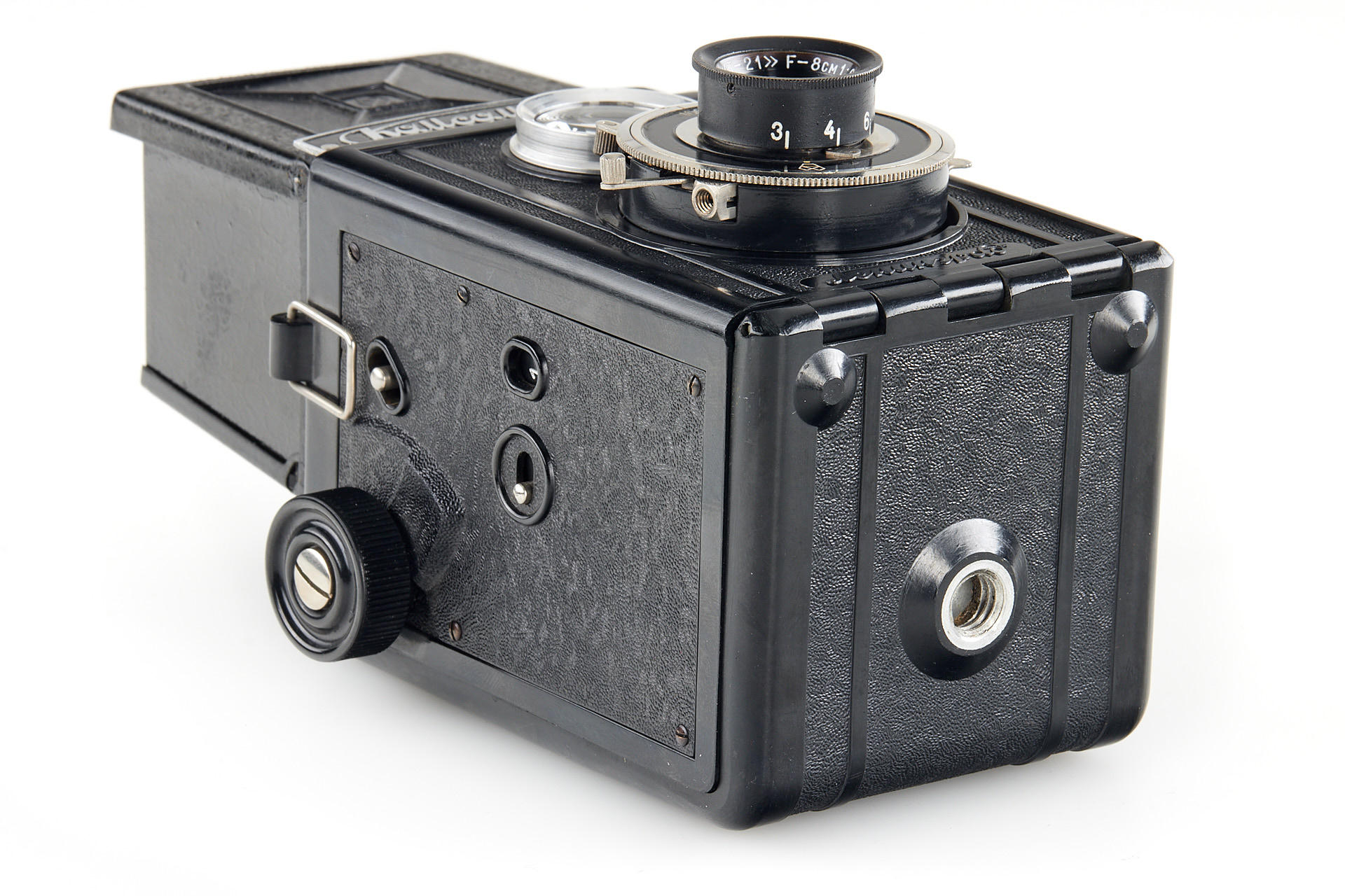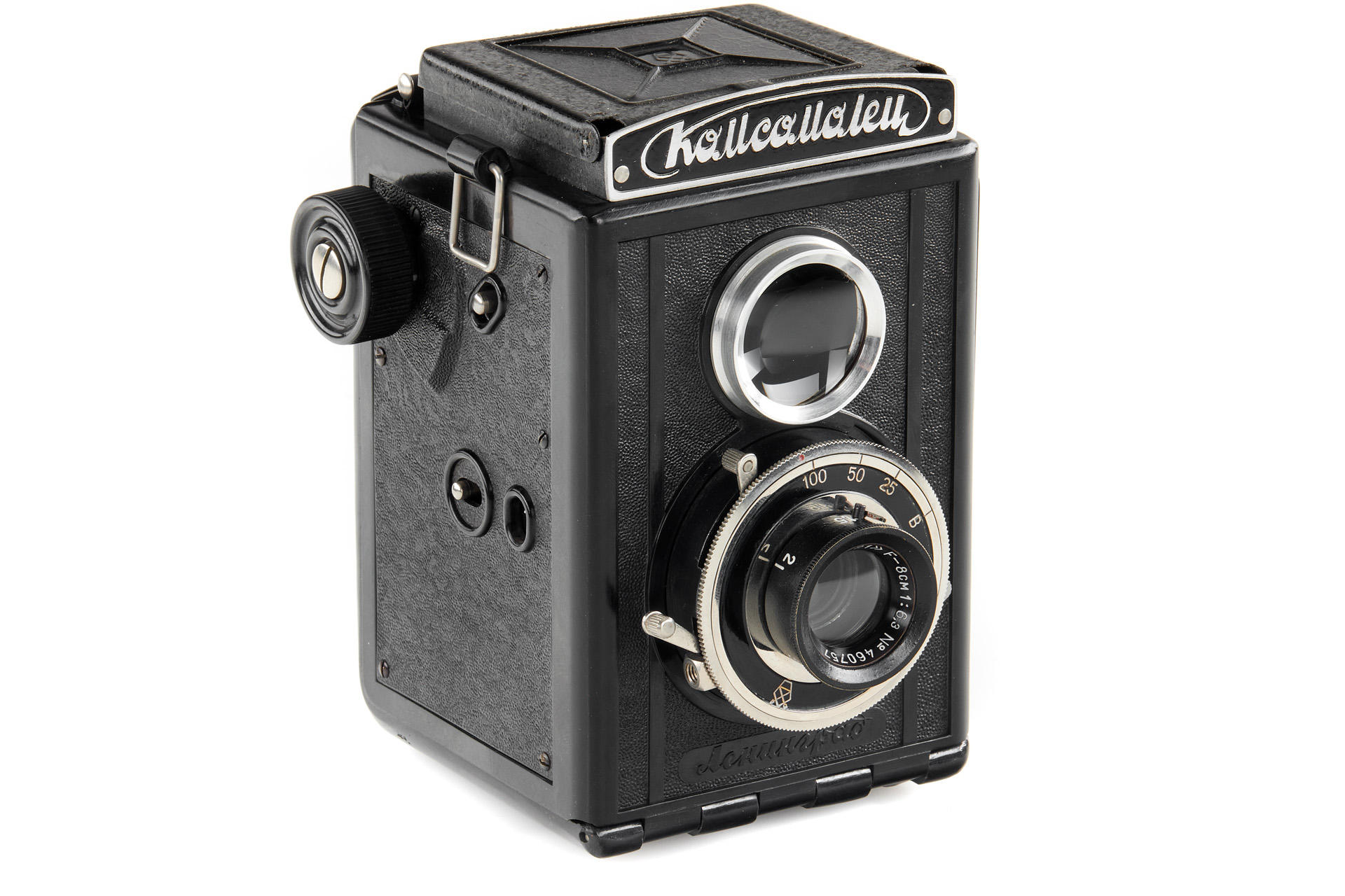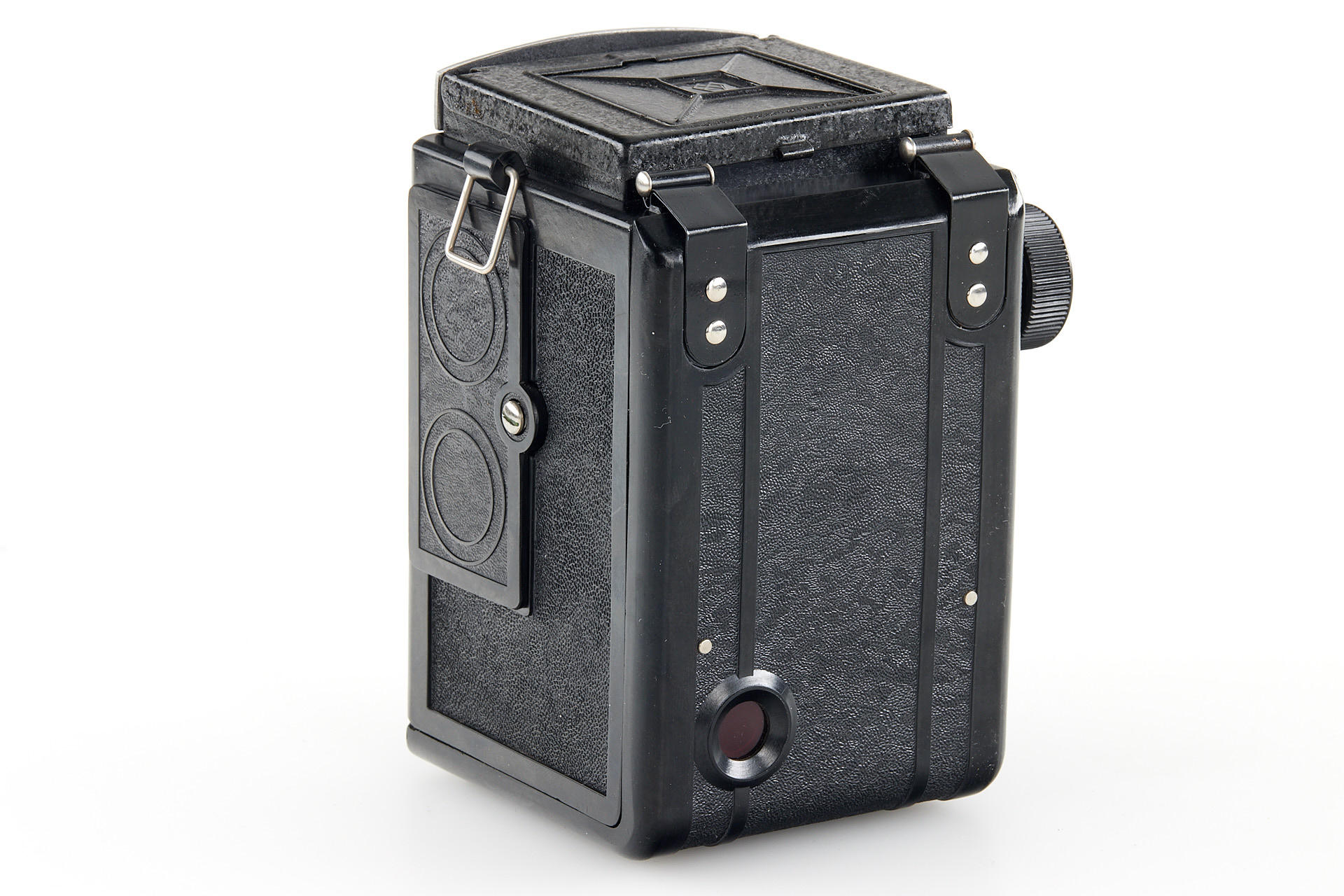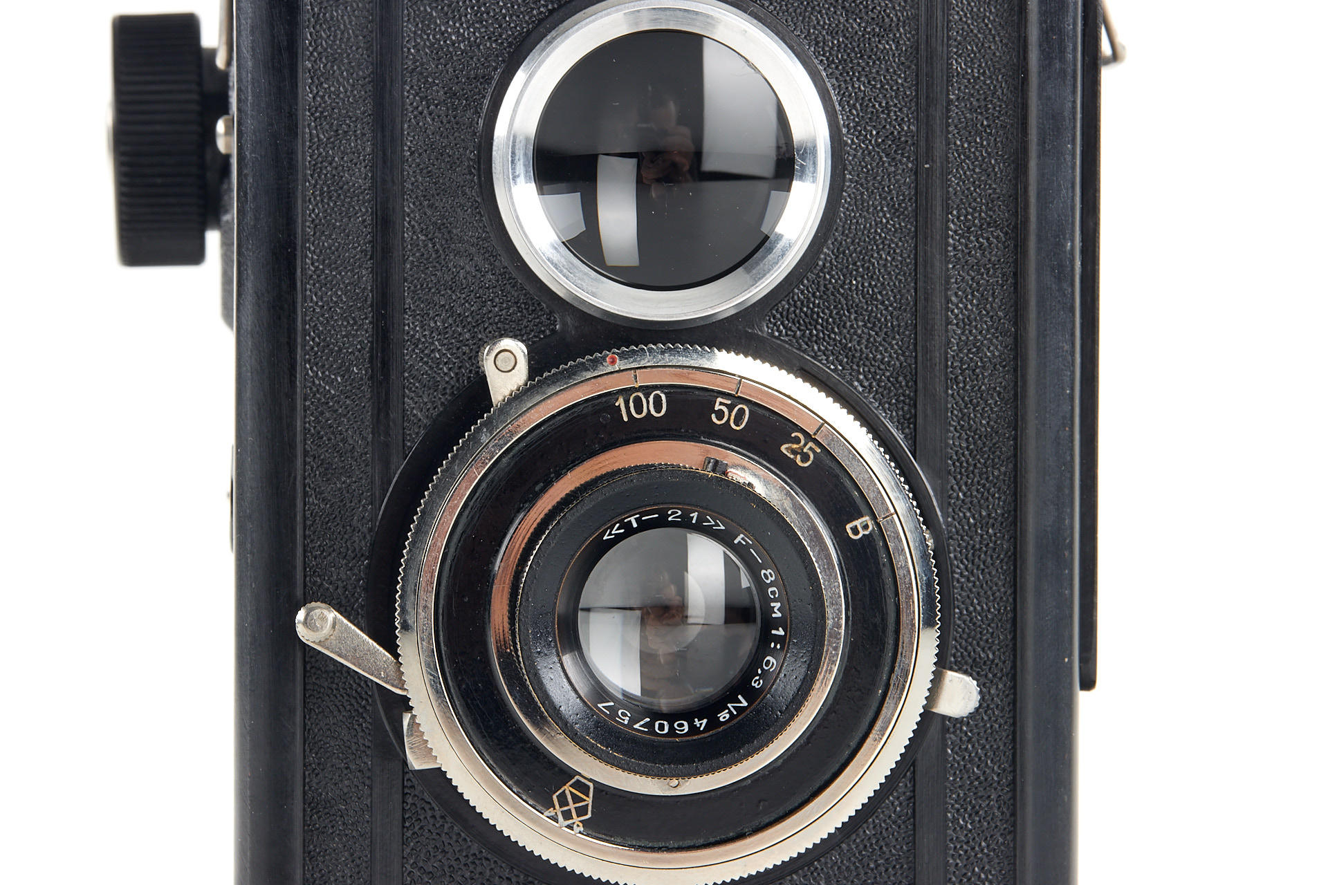 A very rare, first version Komsomolets and one of the earliest known to exist, with T-21 lens no.460757, in beautiful, near mint condition, the camera shows all the earliest features, like the left-sided red film window, long-version of the lens etc., only a handful of these early Russian TLR cameras are still existing