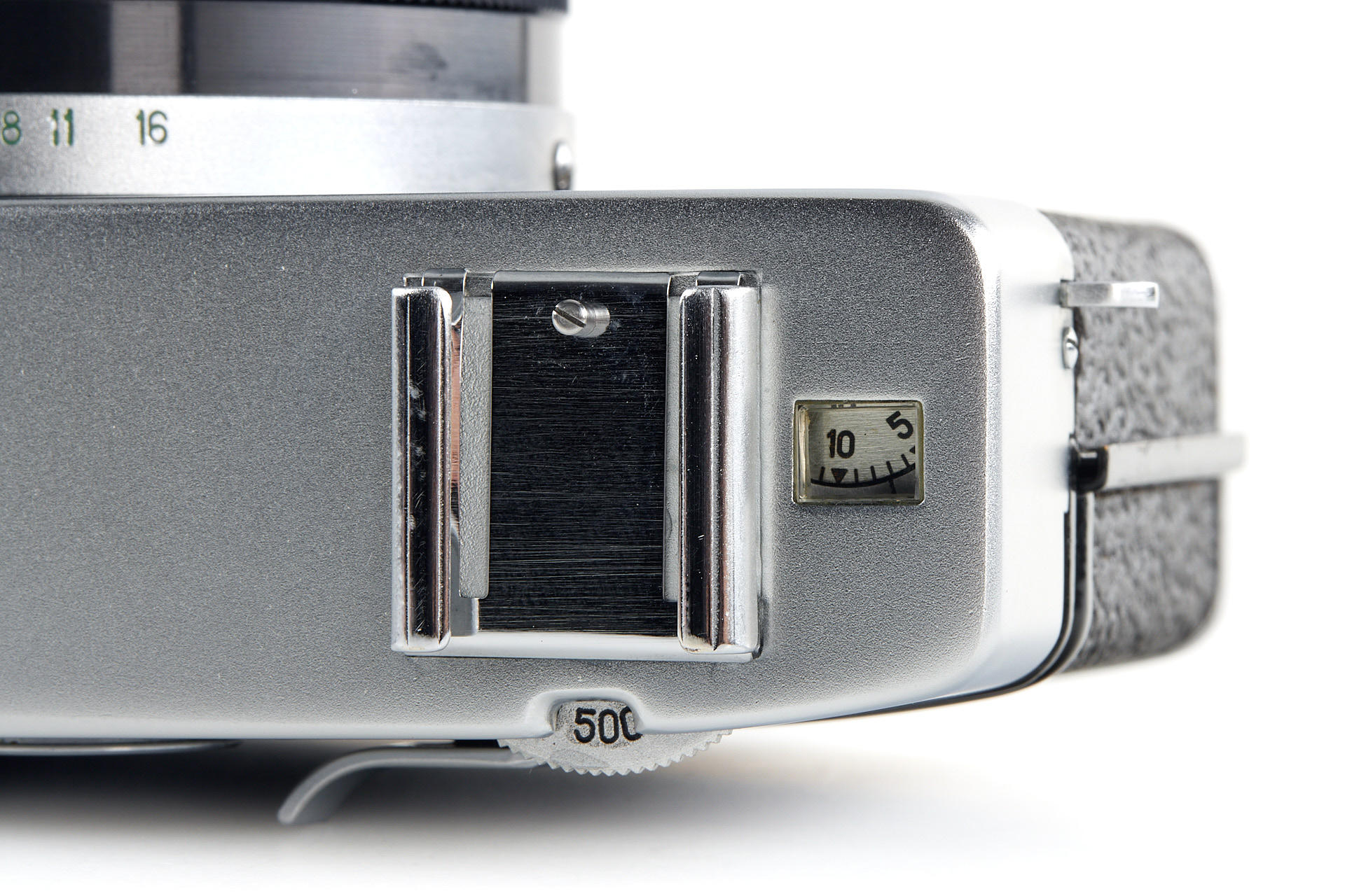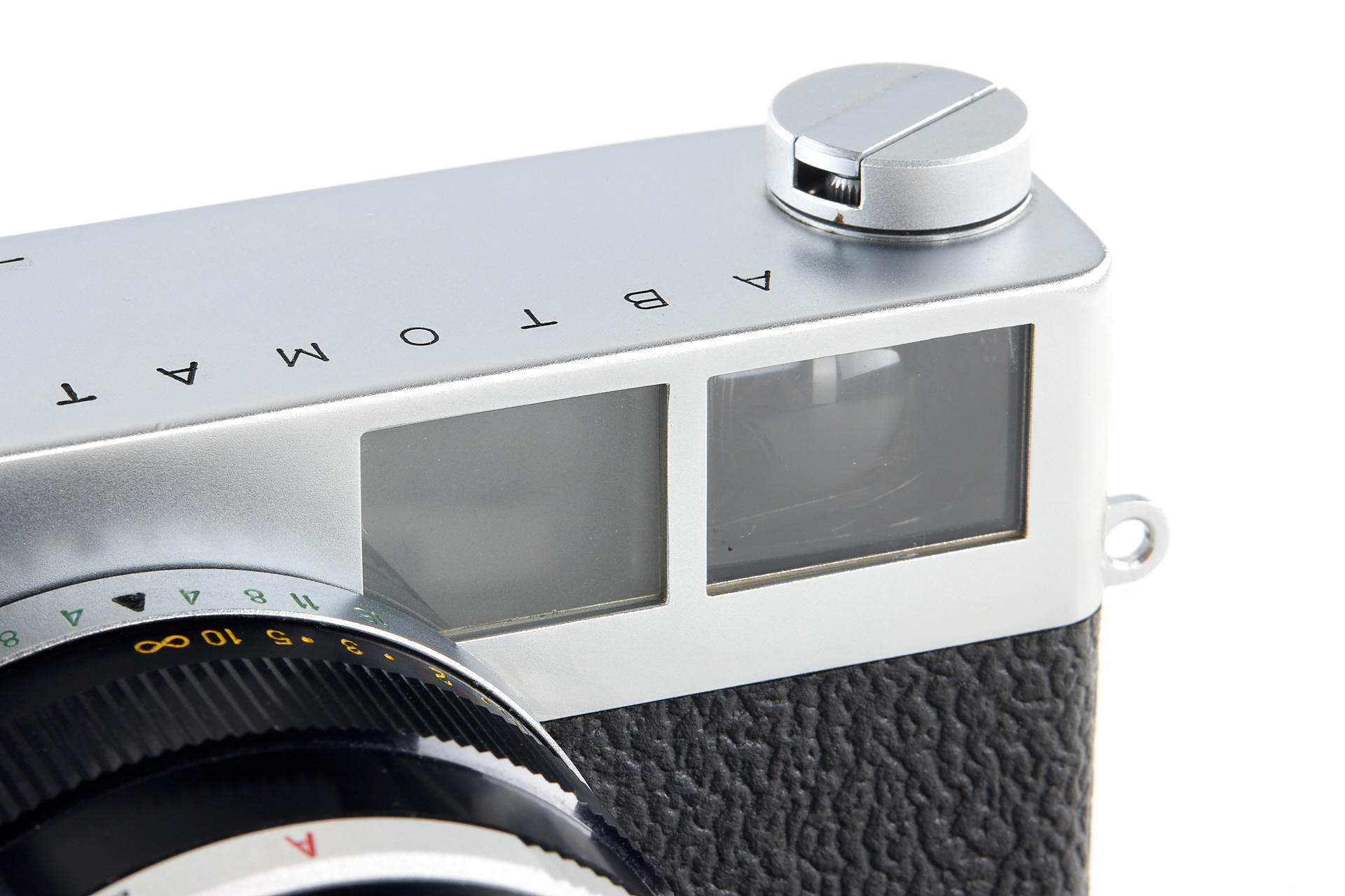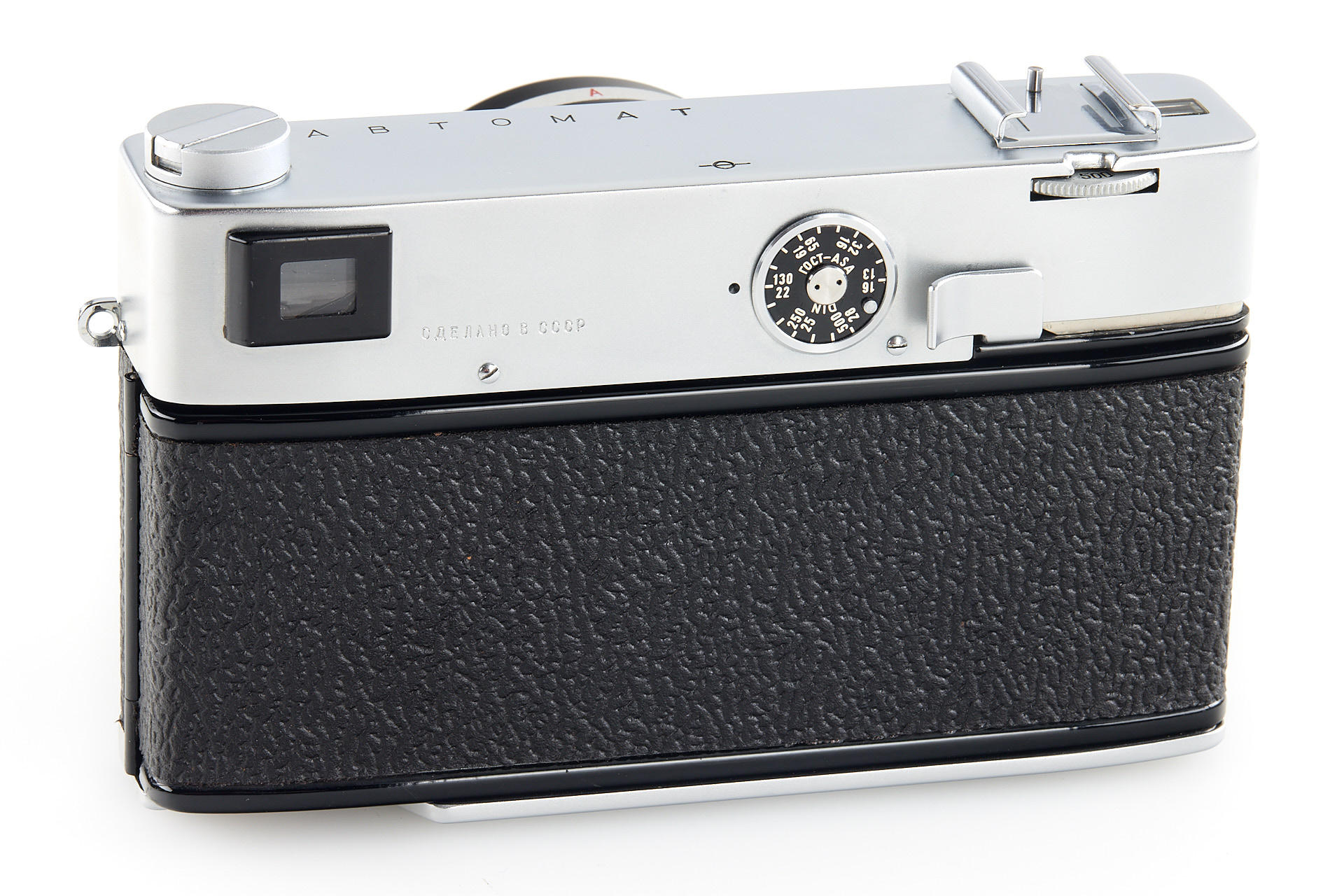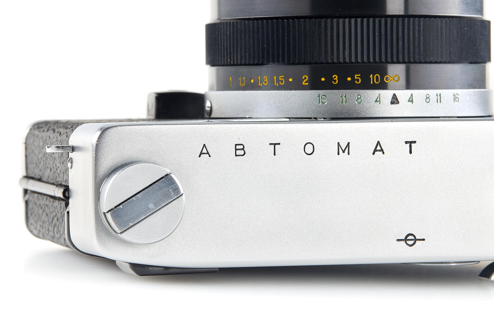An extremely rare Russian 35mm rangefinder camera in beautiful, near mint condition, Helios-79 2/45mm lens surrounded by a selenium meter cell, in a characteristic, eccentric barrel, reportedly less than 30 examples of this unique-looking camera have been produced, it was never produced in series