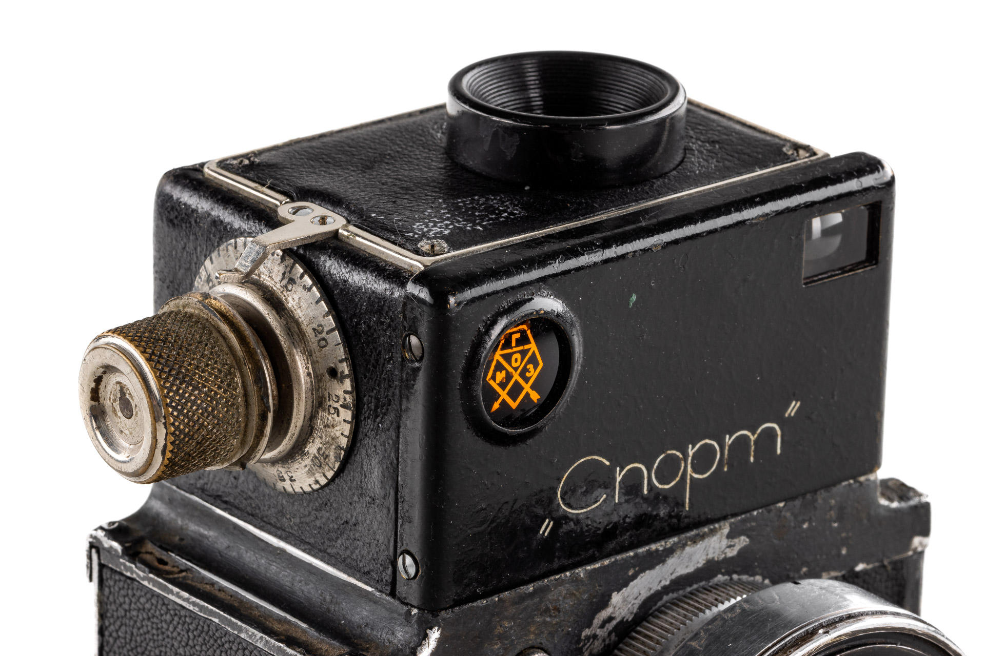 an interesting Sport prototype camera with a highly modified housing for single exposures, in fine condition, with fast prototype KMZ Helios-44 2/5.8cm no.0009393