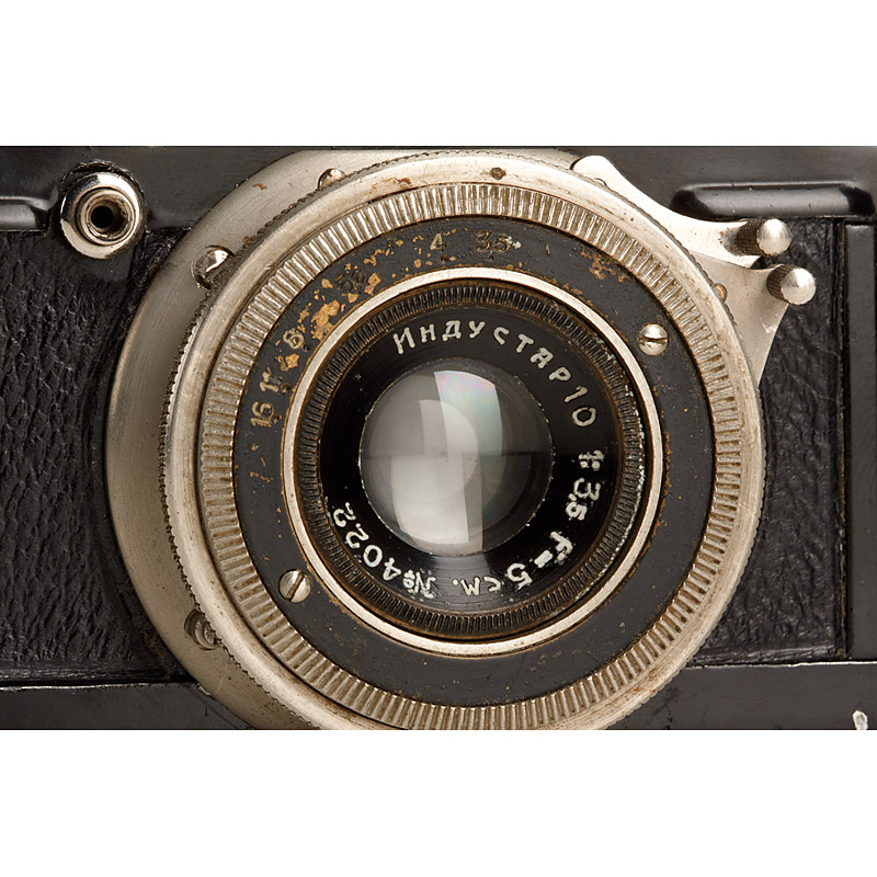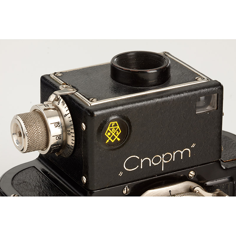 2nd type in unusually good condition with yellow logo and nickel fittings, both spools inside, shutter in working order - the Russian Sport was one of the very first 35mm SLR cameras