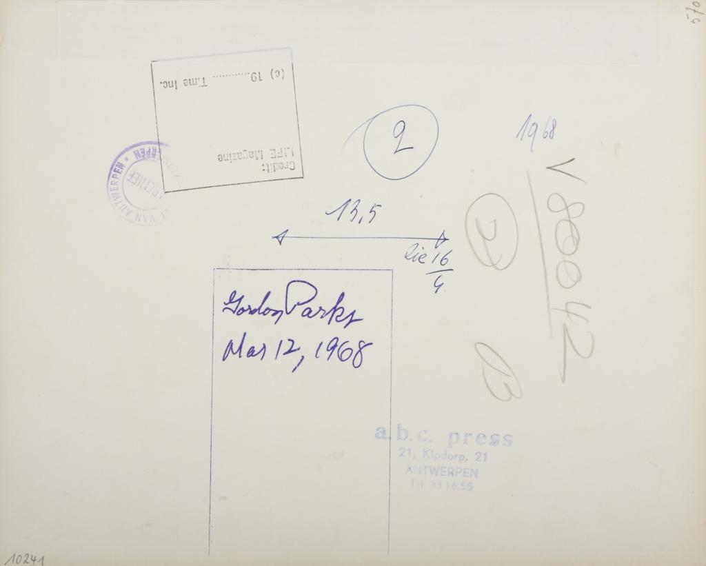 Vintage silver print 16,5 x 24 cm (6.5 x 9.4 in) “Life Magazine” credit stamp, “A.B.C. Press” stamp, “Gazet van Antwerpen” archive stamp and diverse notations in unidentified hands on the reverse