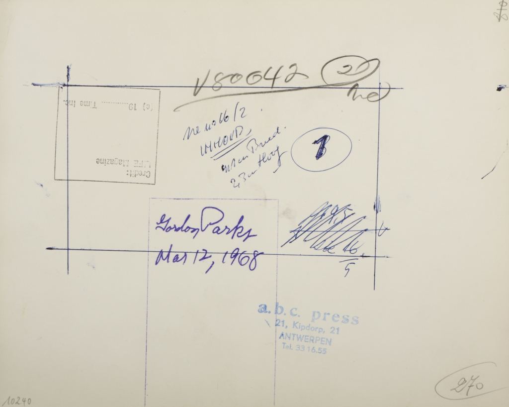Vintage silver print 16,3 x 24 cm (6.4 x 9.4 in) “Life Magazine” credit stamp, “A.B.C. Press” stamp and diverse notations in unidentified hands on the reverse