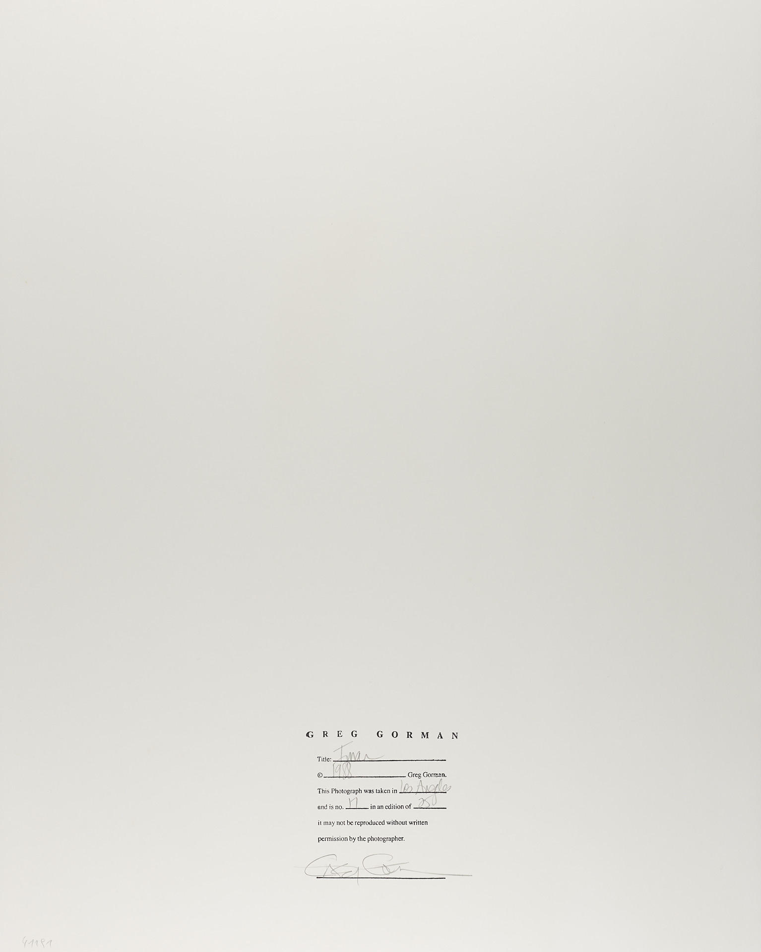 Gelatin silver print, printed in the 1990s 47,3 x 38 cm Signed by the photographer in pencil on the reverse, photographer's stamp with handwritten print details in pencil on the reverse, ed. no. 17/25 PROVENANCE Private Collection, Cologne