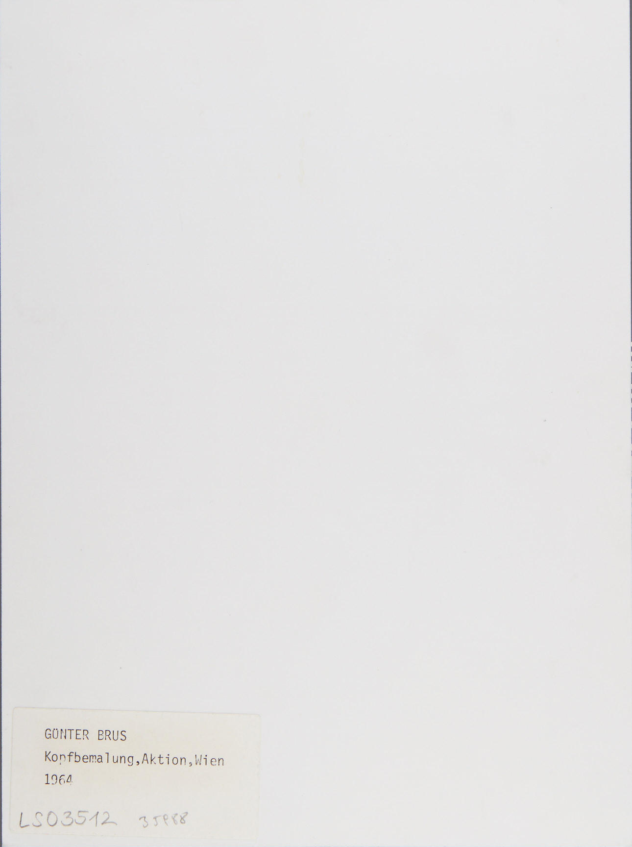 Gelatin silver print, printed in the 1980s 23,8 x 17,7 cm “GÜNTER BRUS / Kopfbemalung, Aktion, Wien / 1964” label on the reverse LITERATURE Monika Faber, Günter Brus. Werkumkreisung, Cologne 2003, p. 26; Eva Badura-Triska / Hubert Klocker (eds.), Wiener Aktionismus, cat. Mumok / Cologne 2012, p. 288. (images from the same series).