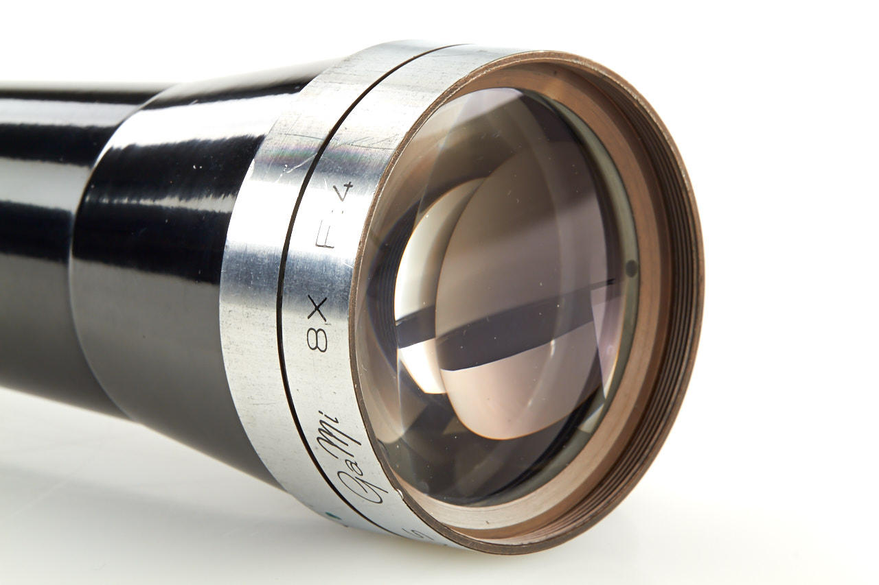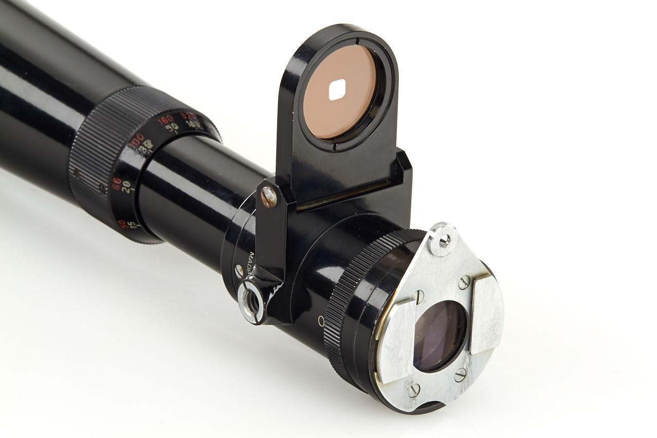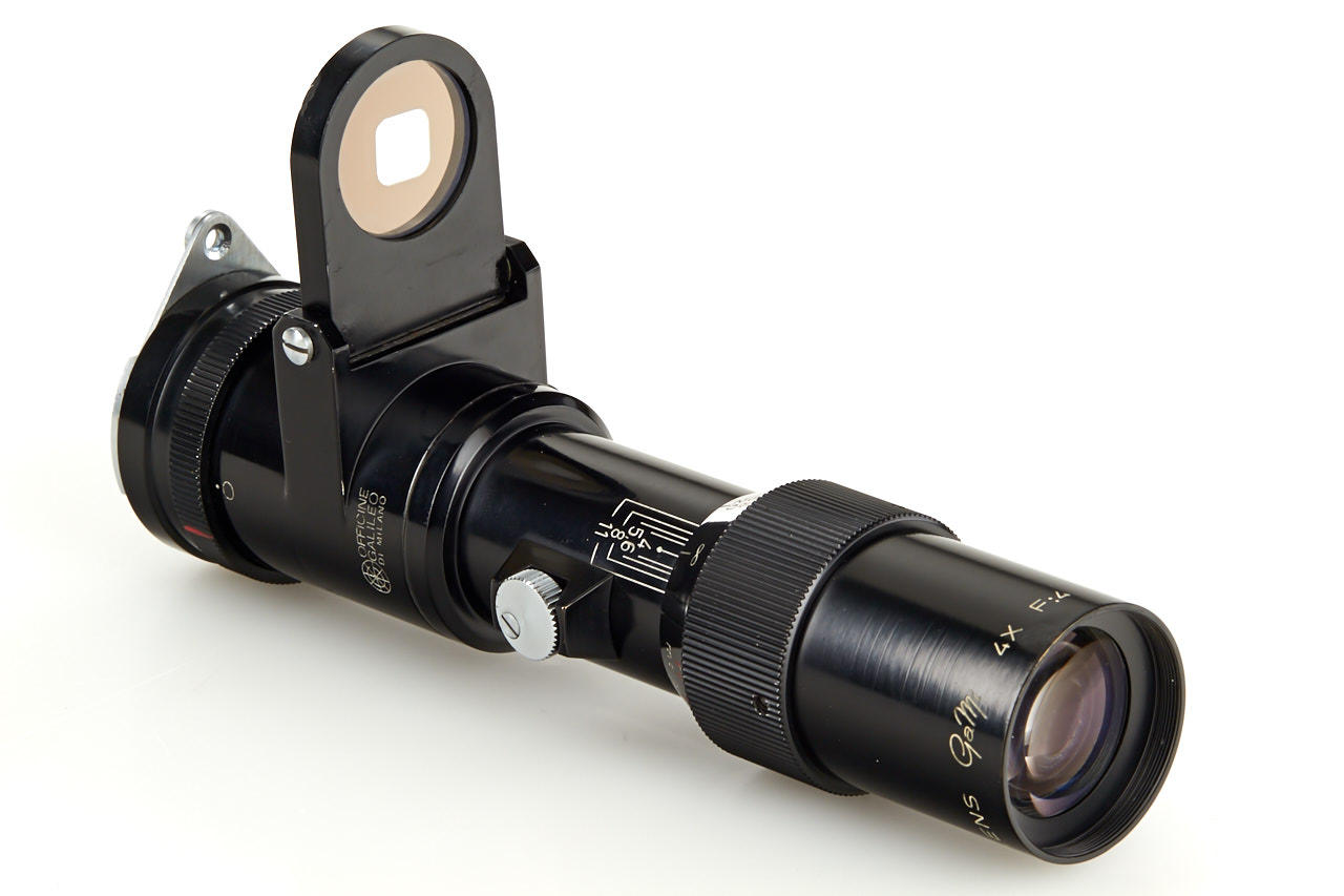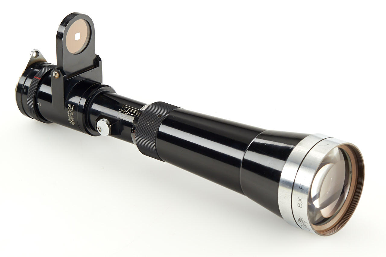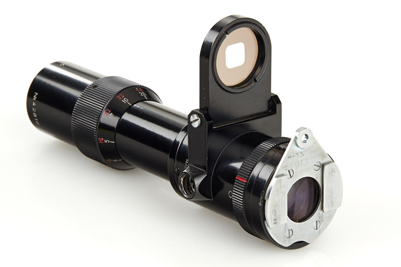 for 12x17mm exposures on 16mm film in special spools (one included) with built in Esamitar 1.9/25mm lens, including Telelens 4x f/4 No. 42816 and Telelens 8x f/4 No. 35437, all in very nice and clean condition