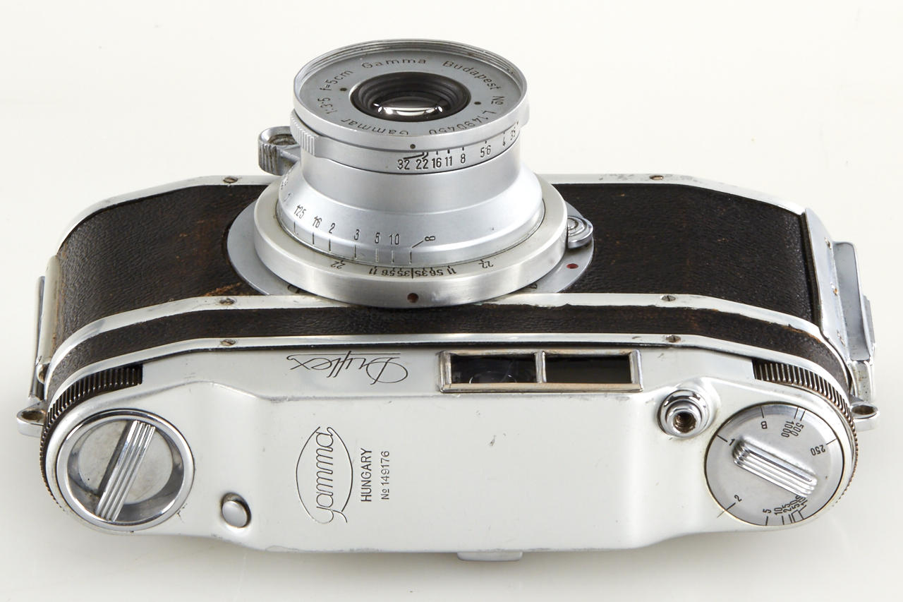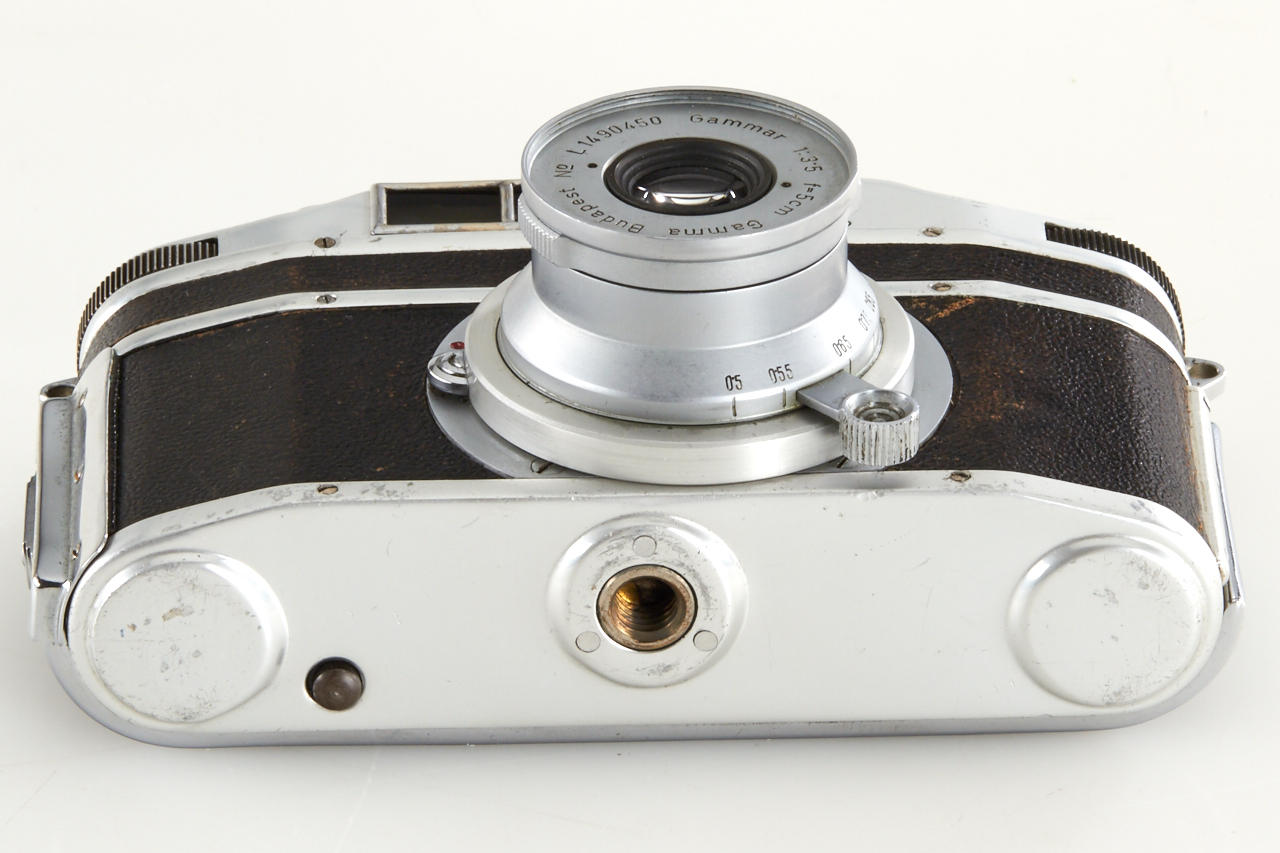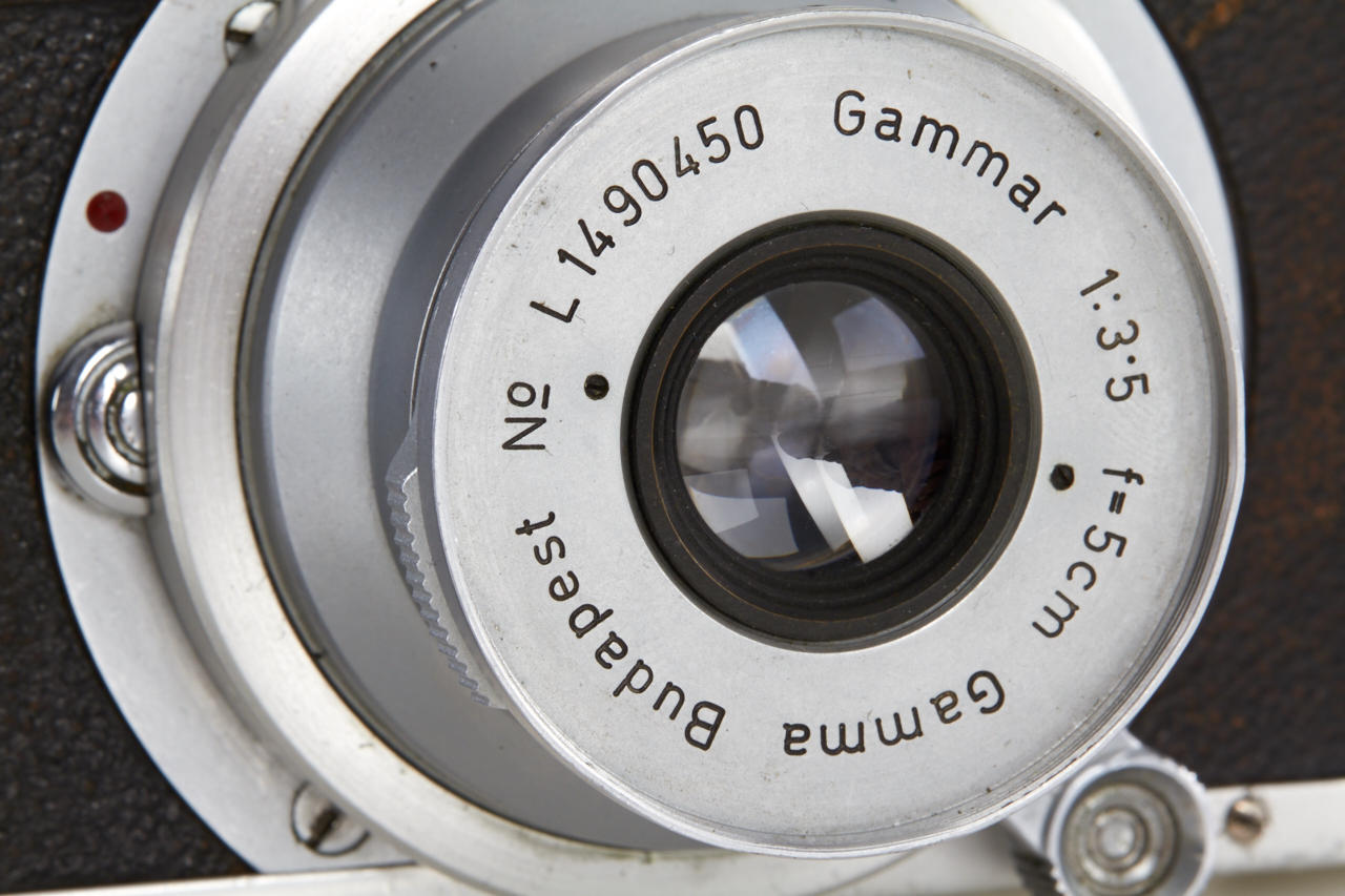 historic and important Hungarian SLR camera with extra optical viewfinder, first camera to incorporate metal focal plane shutter, interchangeable Gammar 3.5/5cm no.L1490450 (good optics), shutter in good working order