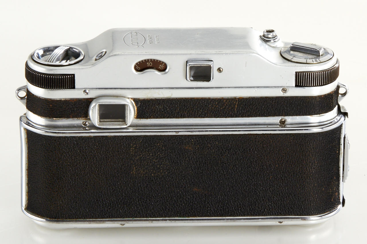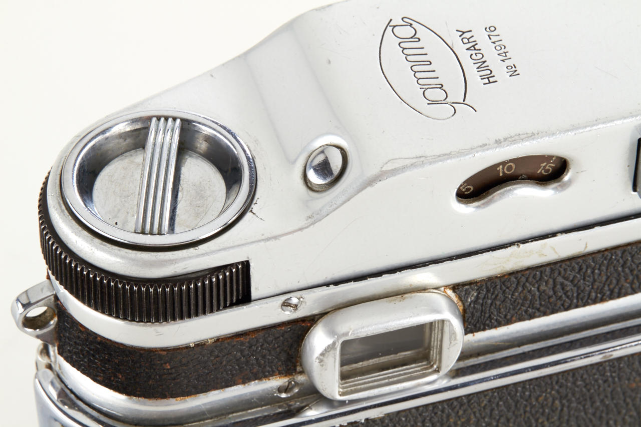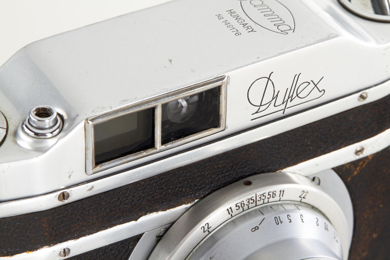historic and important Hungarian SLR camera with extra optical viewfinder, first camera to incorporate metal focal plane shutter, interchangeable Gammar 3.5/5cm no.L1490450 (good optics), shutter in good working order