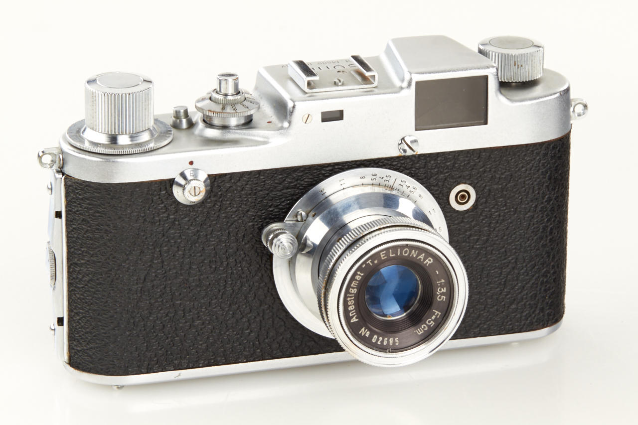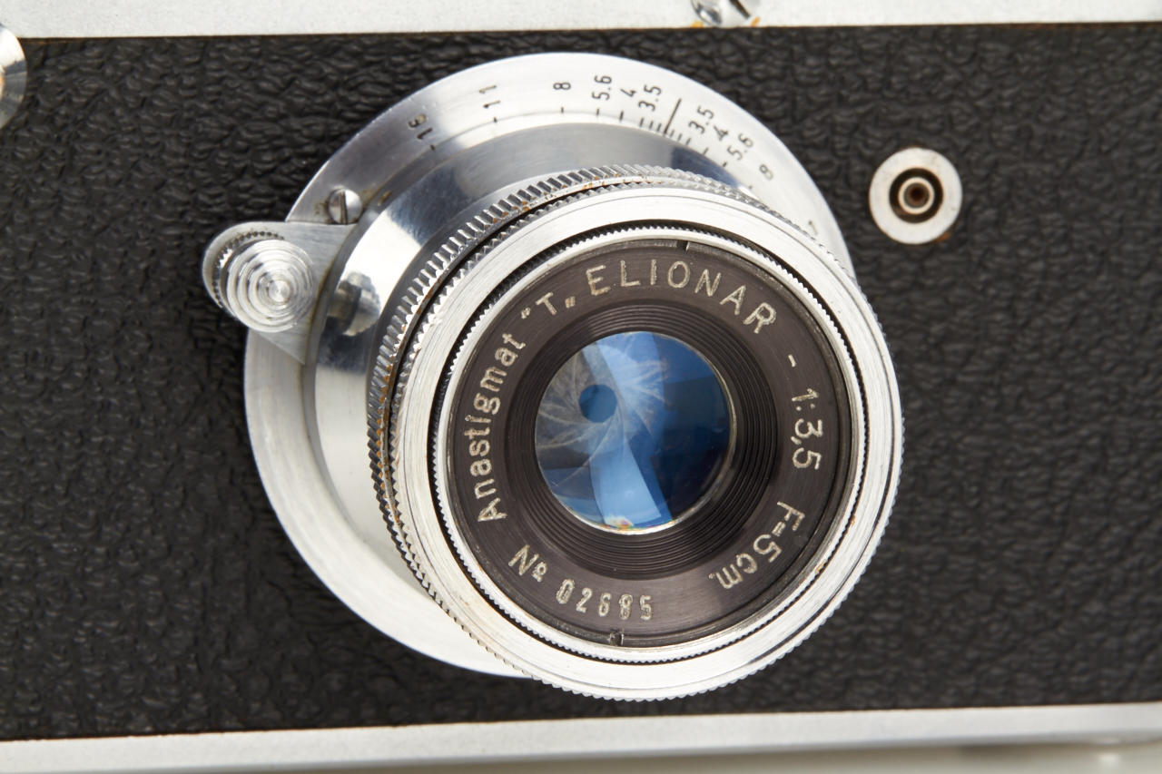 rare camera in very good original condition, second version, matching T Elionar 3.5/5cm no.02685, Sonne cap, everready case