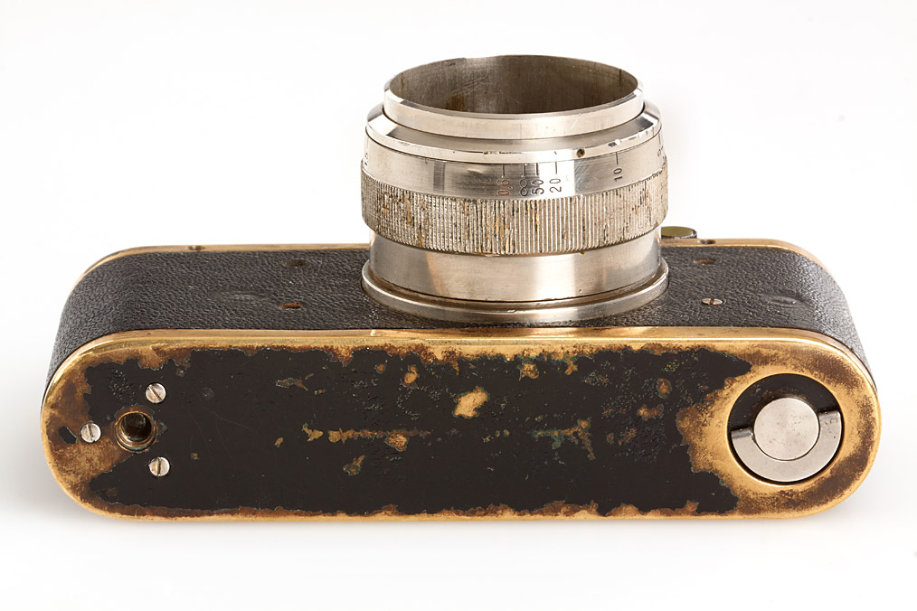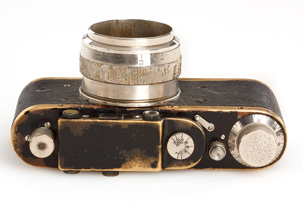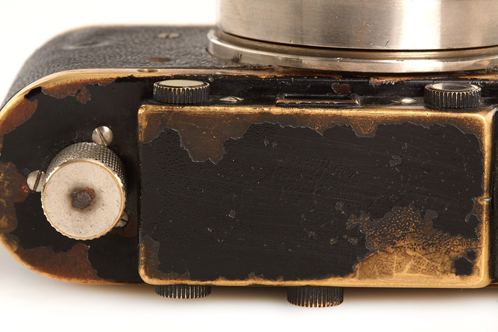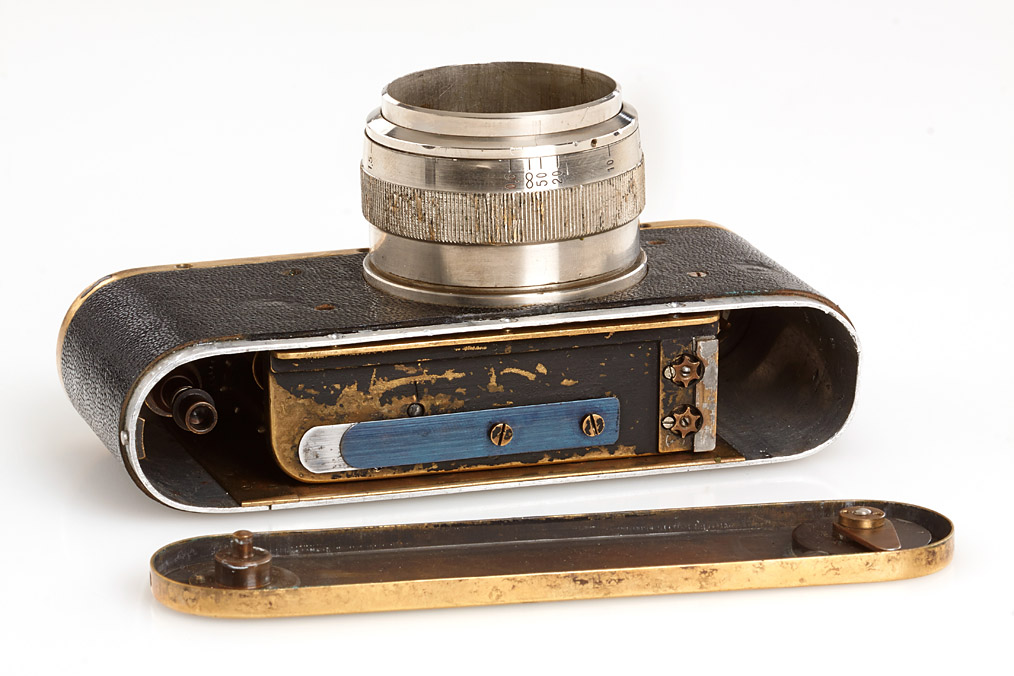 black painted with nickel fittings, seven shutter speeds (Z, 20-500), unique rounded lavatory seat, separated rangefinder and viewfinder eyepieces, extendable rewind knob, fixed focusing lens mount (for f/2 or faster lens), top plate with 6 screws - after extensive research many similarities to the Neuca camera were found (see the images of the prototype Neuca camera sold in the 12th Westlicht Photographica Auction LOT 332)