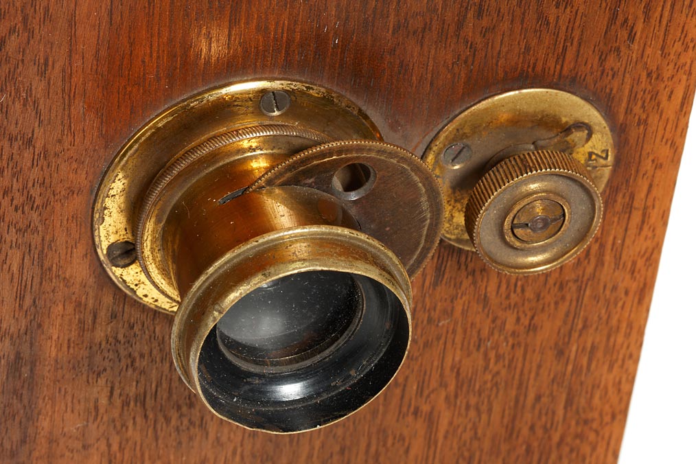 9x12cm, simple lens with disc diaphram, focusing screen not original, Grundner shutter, marked: G.M. SCH 30896
