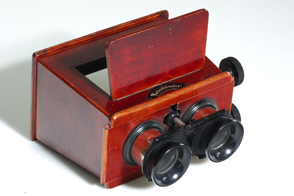 three rare German stereoscopes for various formats and by different makers (1) beautiful ‘Heidoplast’ viewer in almost mint condition, for 45x107 glass slides, wooden body, adjustable focus and eye base (2) Voigtländer viewer in good, but used condition, for 6x13 slides and cards, wooden body, hinged mirror, adjustable focus and eye base, (3) Zeiss Ikon stereoscope for 6x13 slides and cards in nice original condition, wooden body, hinged mirror, adjustable focus and eye base. A nice and collectable selection of high quality viewers from the 1920's. (3)