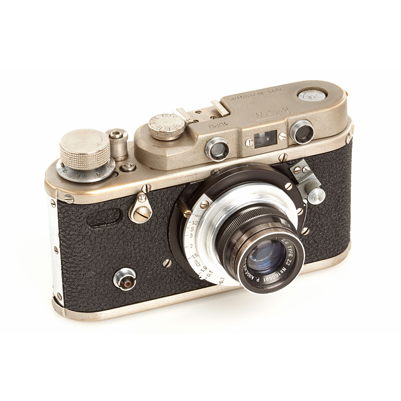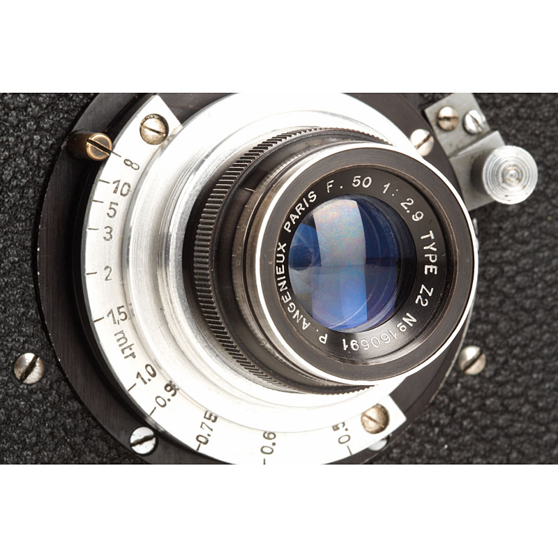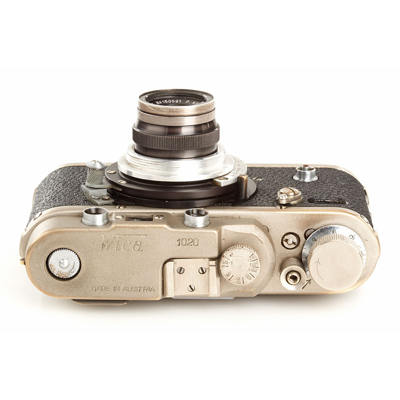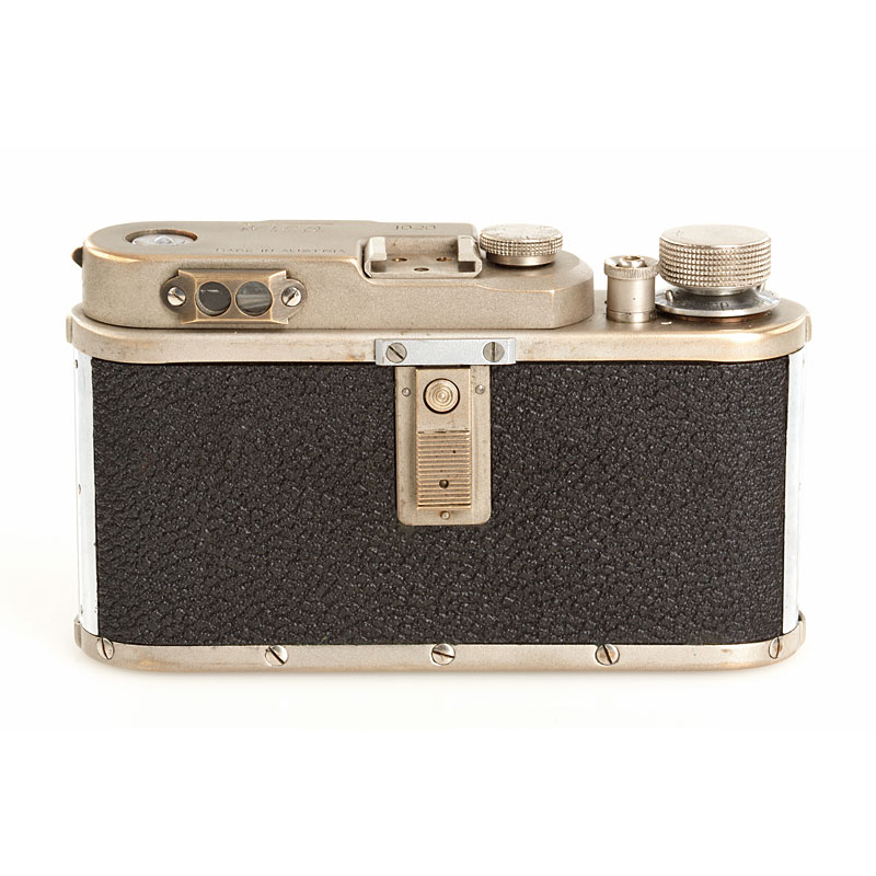extremely rare handmade "Wiener Camera", second (long-top) model in good condition, with RF coupled Angenieux Type Z2 2.9/50mm no.160691, original case
