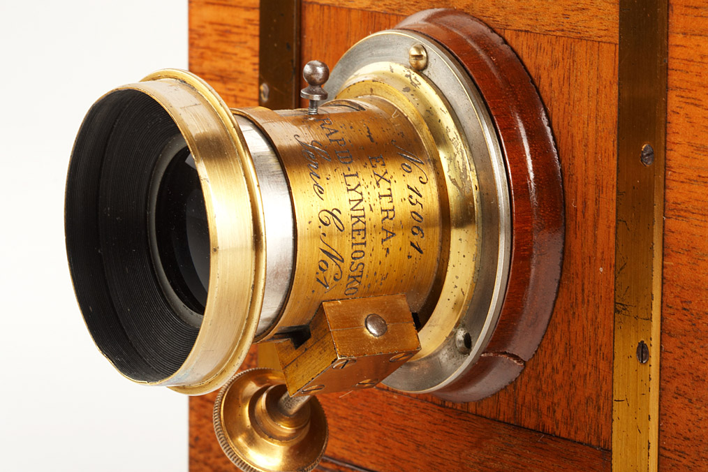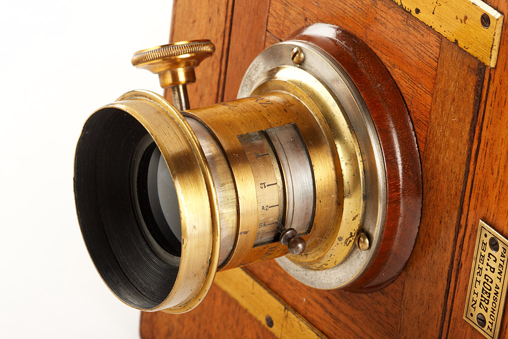 9x12cm, exposures on dry plates, walnut body with metal plaque engraved: PATENT ANSCHÜTZ C.P.GOERZ BERLIN, brass lens engraved C.P. GOERZ Berlin EXTRA RAPID-LYNKEIOSKOP Serie 6 No.1 no.15061 with iris diaphragm, original focal-plane shutter stamped Ottomar Anschütz Lissa / Posen / D.R.Patent No.49919, metal frame finder, camera in original condition with focussing screen. Literature: Michel Auer (1990) The Guide to Antique Cameras no.622, Abring I p.40, Lothrop (1973), A Century of Cameras, p.49.