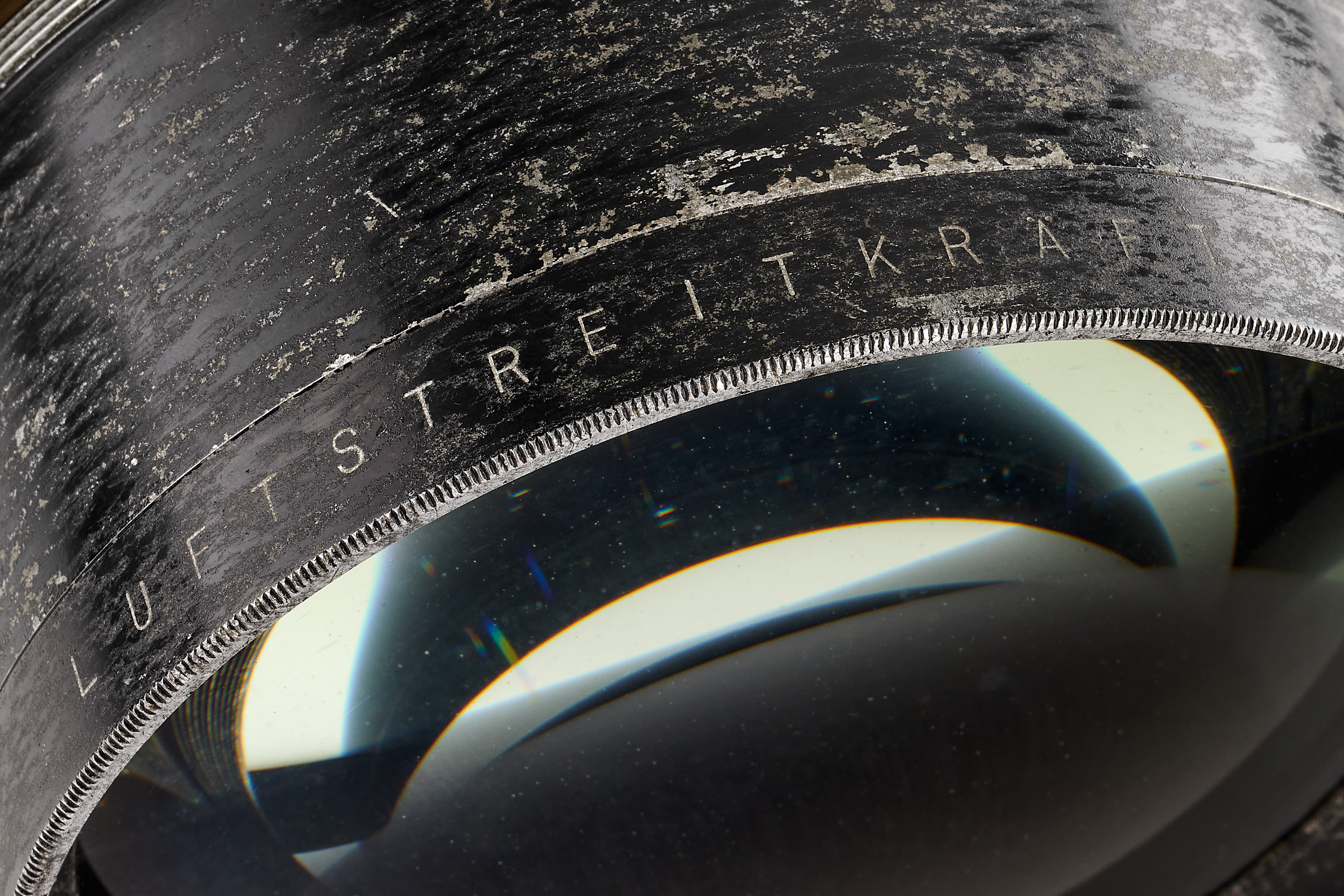 Very rare aerial lens from the Imperial German Air Force during WWI, no aperture index, in good condition, clean and clear optics.