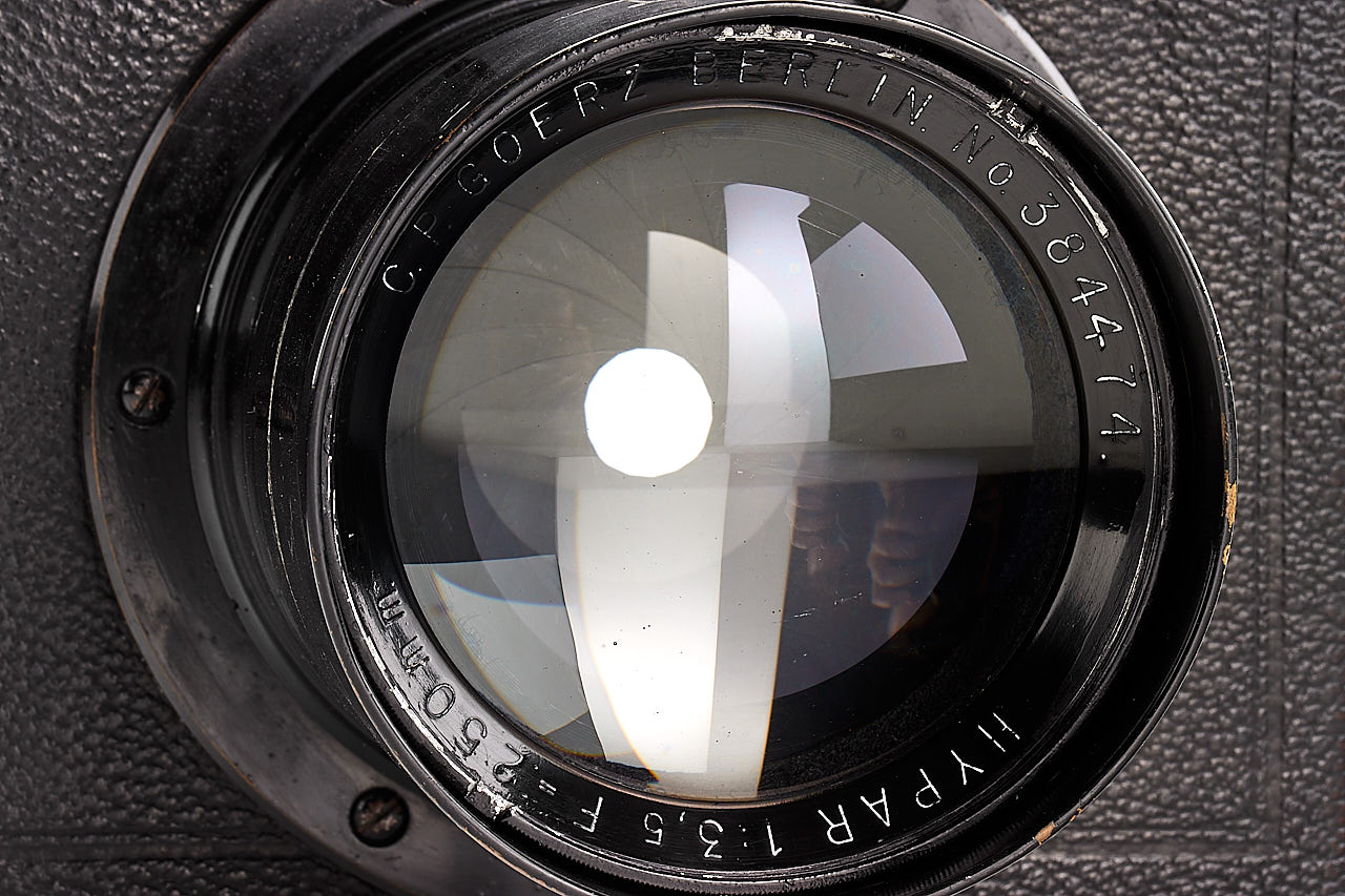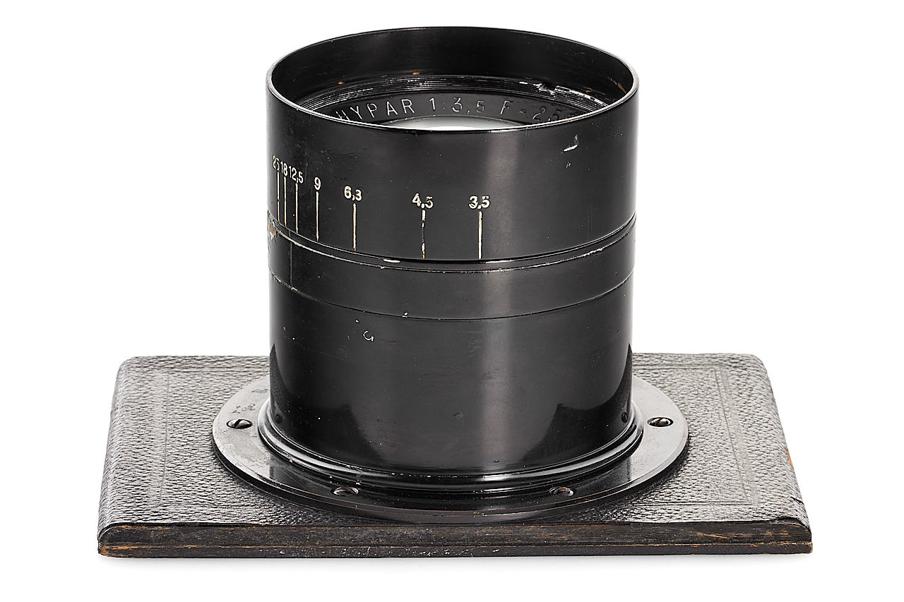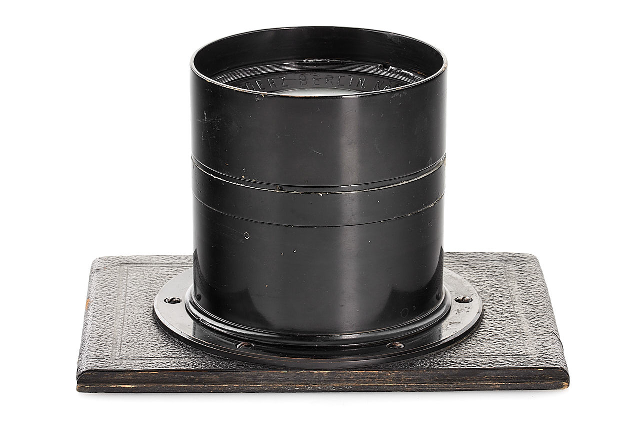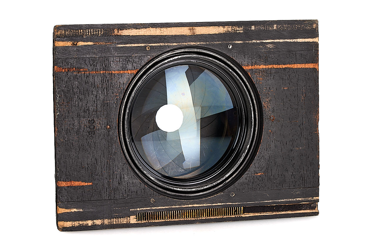 Rare large format lens covering 8x10", in very good condition, good optics, smooth aperture, mounted in base wooden plate.