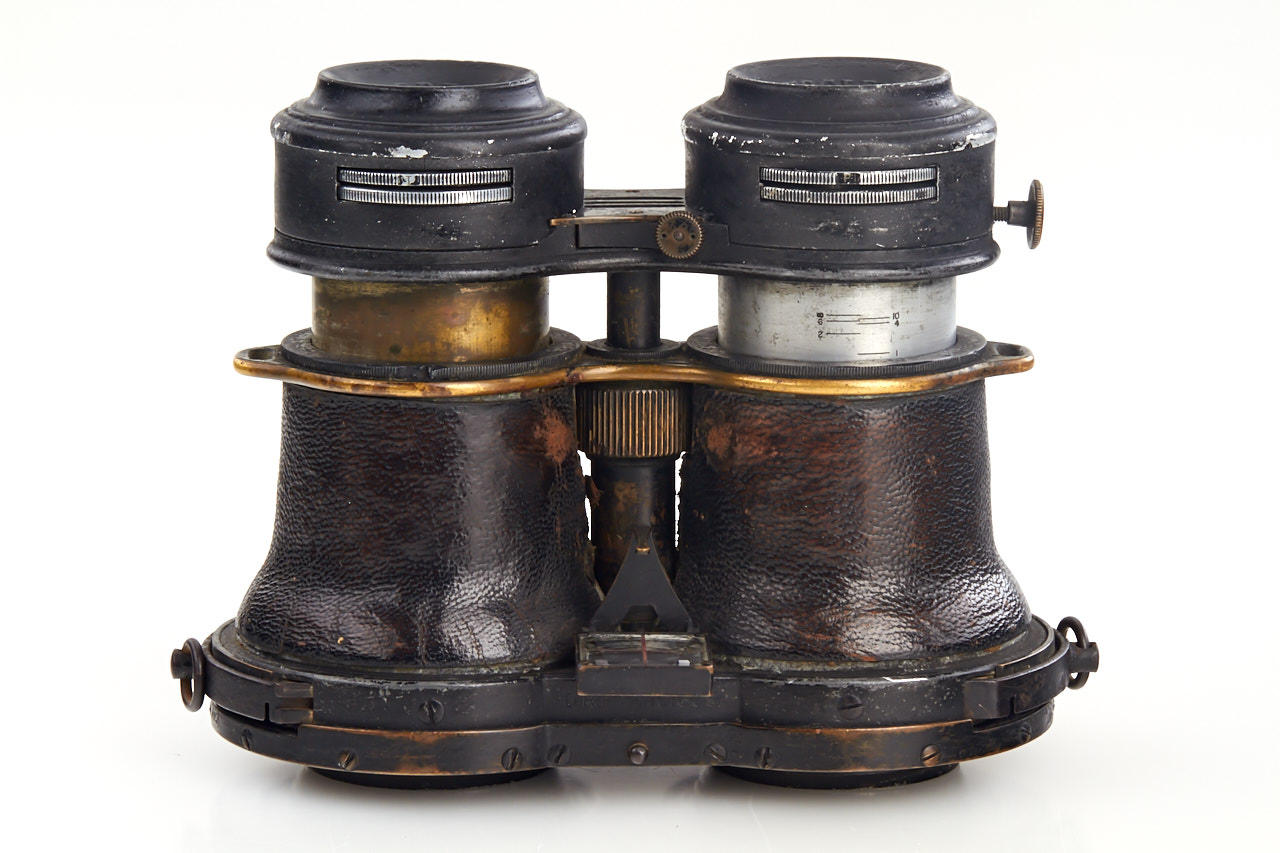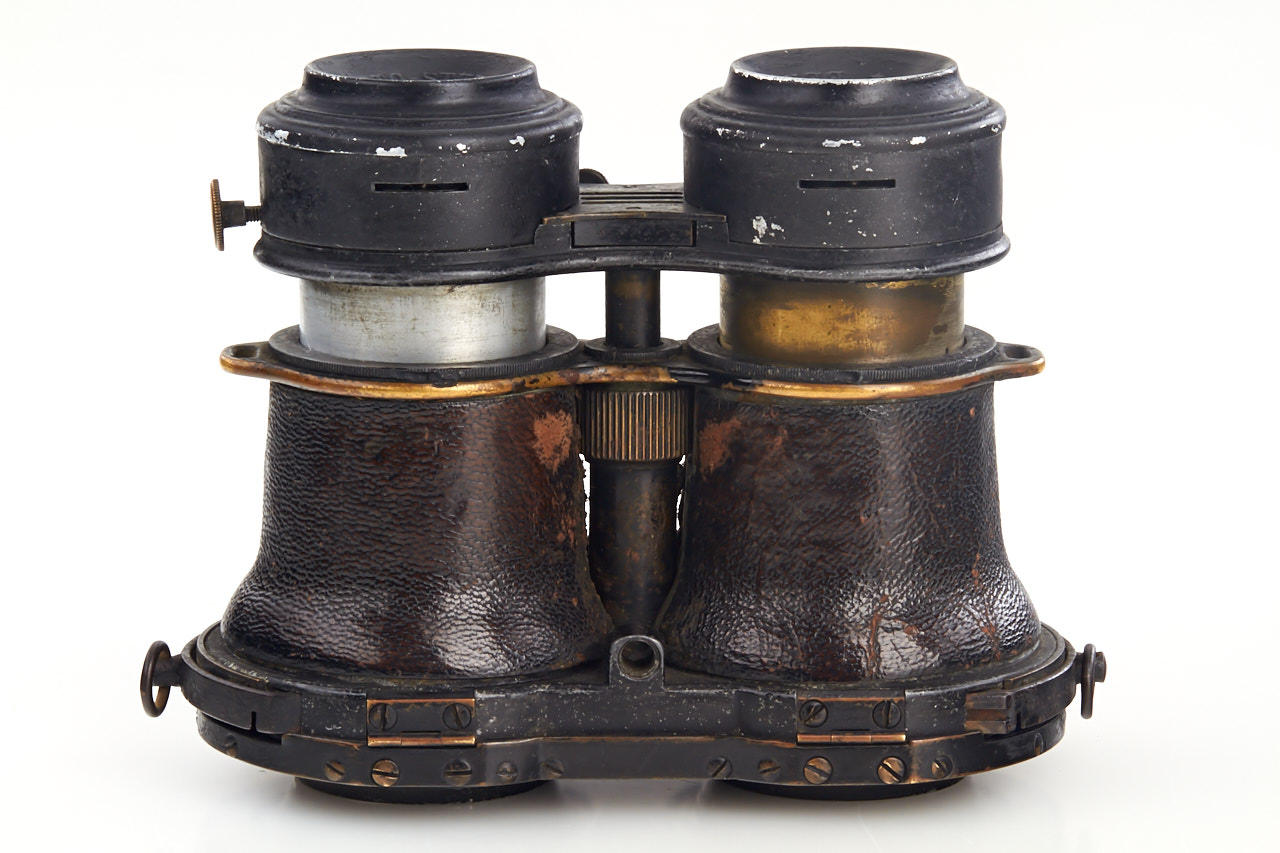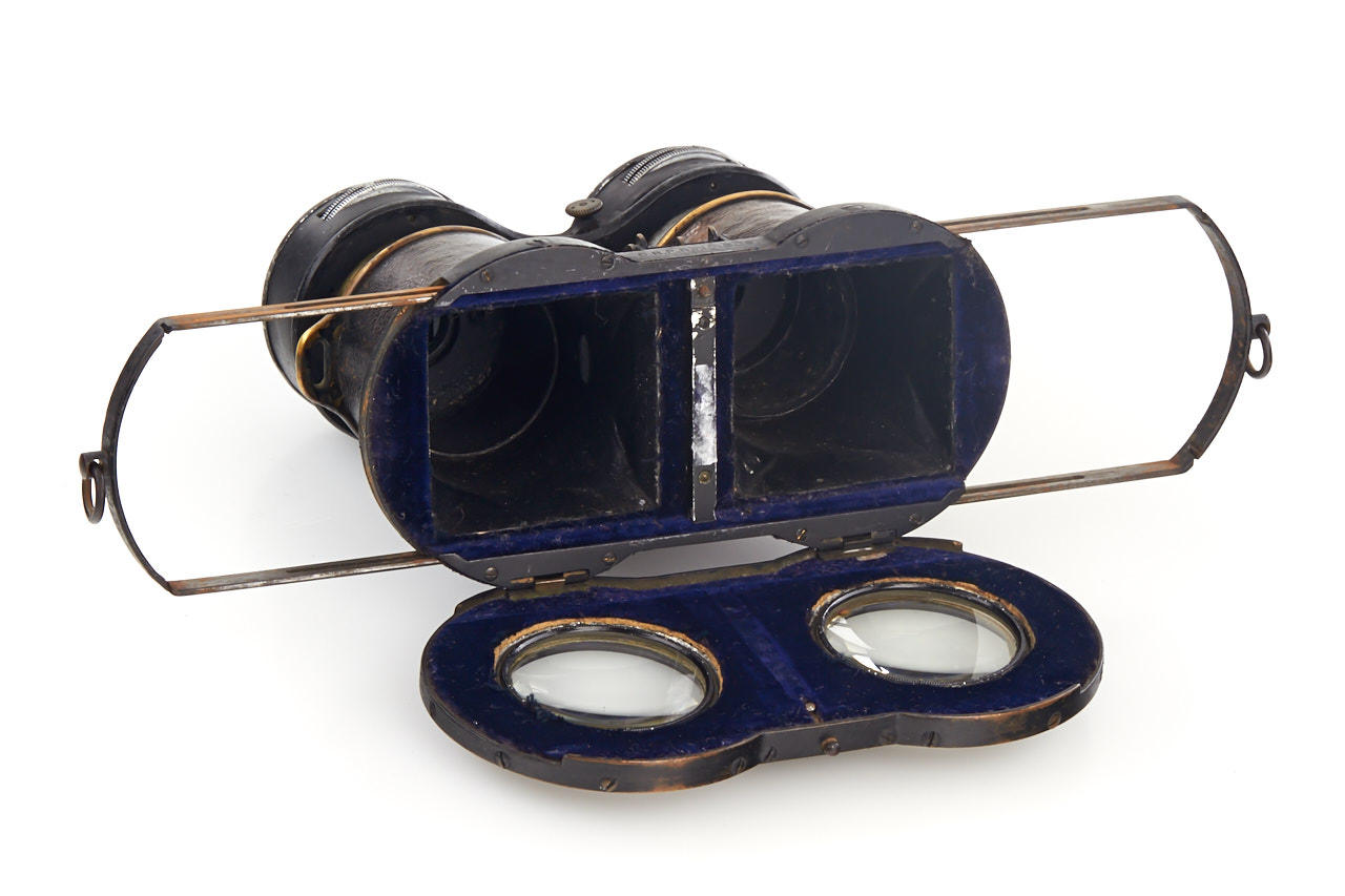 binocular detective camera for 45x50mm stereo exposures, Doppel-Anastigmat III 75mm lenses nos.80018/83342, guillotine shutter, Newton finder, the camera can be used as a camera or as binoculars, in original condition - very rare and maybe unique export camera for Japan engraved 'R.Konishi Tokyo' for the owner of Konishiroku Company in Tokyo