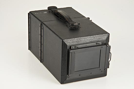 The Folmer Graflex Corporation, 2 1/4 x 3 1/4" Kodak Anastigmat 6.3/72mm, with one plate holder and instruction booklet. Made continuously for 34 years starting in 1918. This camera was designed to take life-size (1:1) photographs of fingerprints and other objects by placing the front of the camera directly on the subject. The front of the camera contains 4 small battery-operated light bulbs which provide the illumination for the exposure. In perfect original condition. Ex Spira Collection