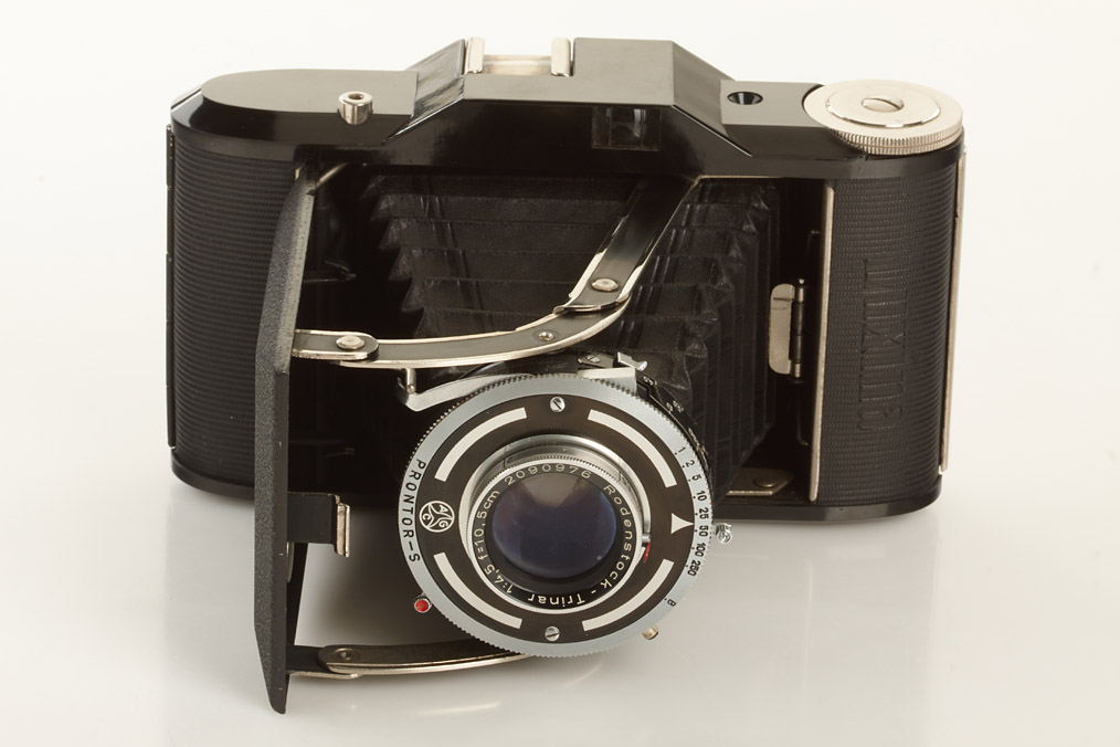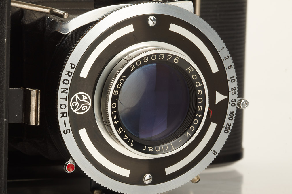 6.5x9cm, very rare German folding camera with Rodenstock Trinar 4.5/105mm, mask for 4.5x6cm, everready case, maker's box