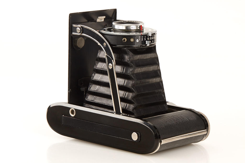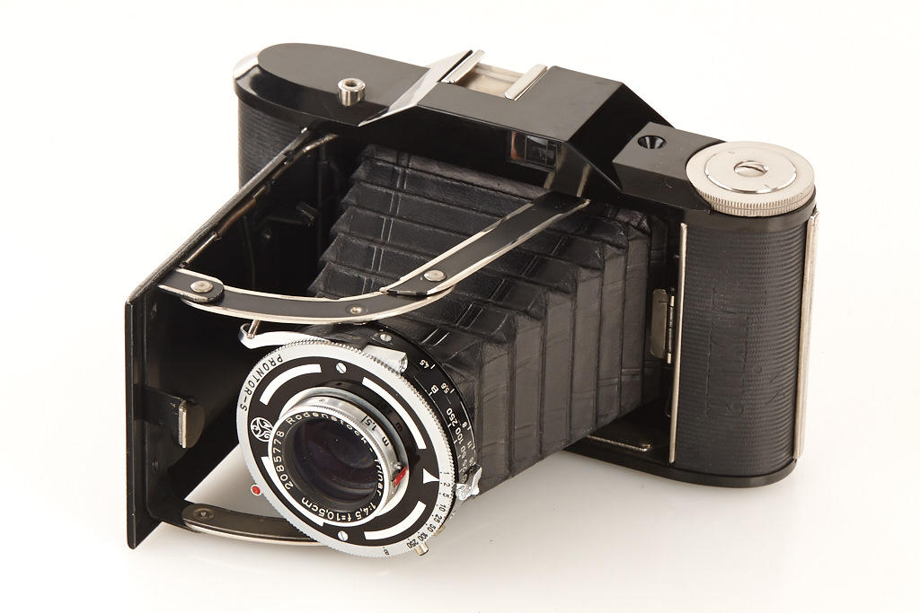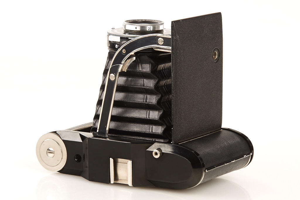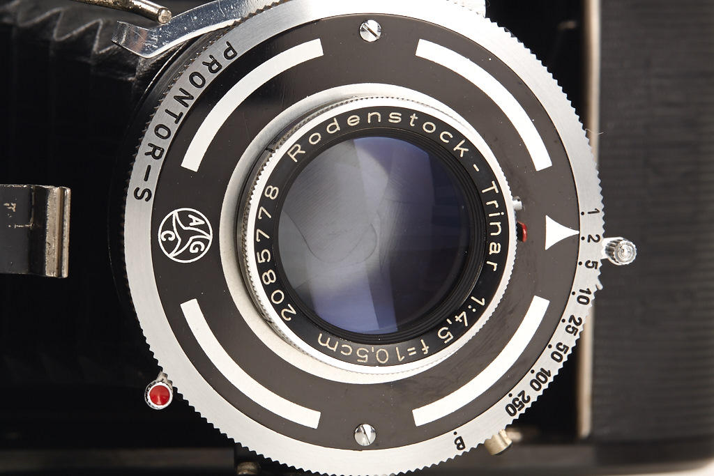 6.5x9cm, very rare German folding camera with Rodenstock Trinar 4.5/105mm, mask for 4.5x6cm, everready case, instructions, maker's box, a spare Luxina body for spare parts with maker's box is included