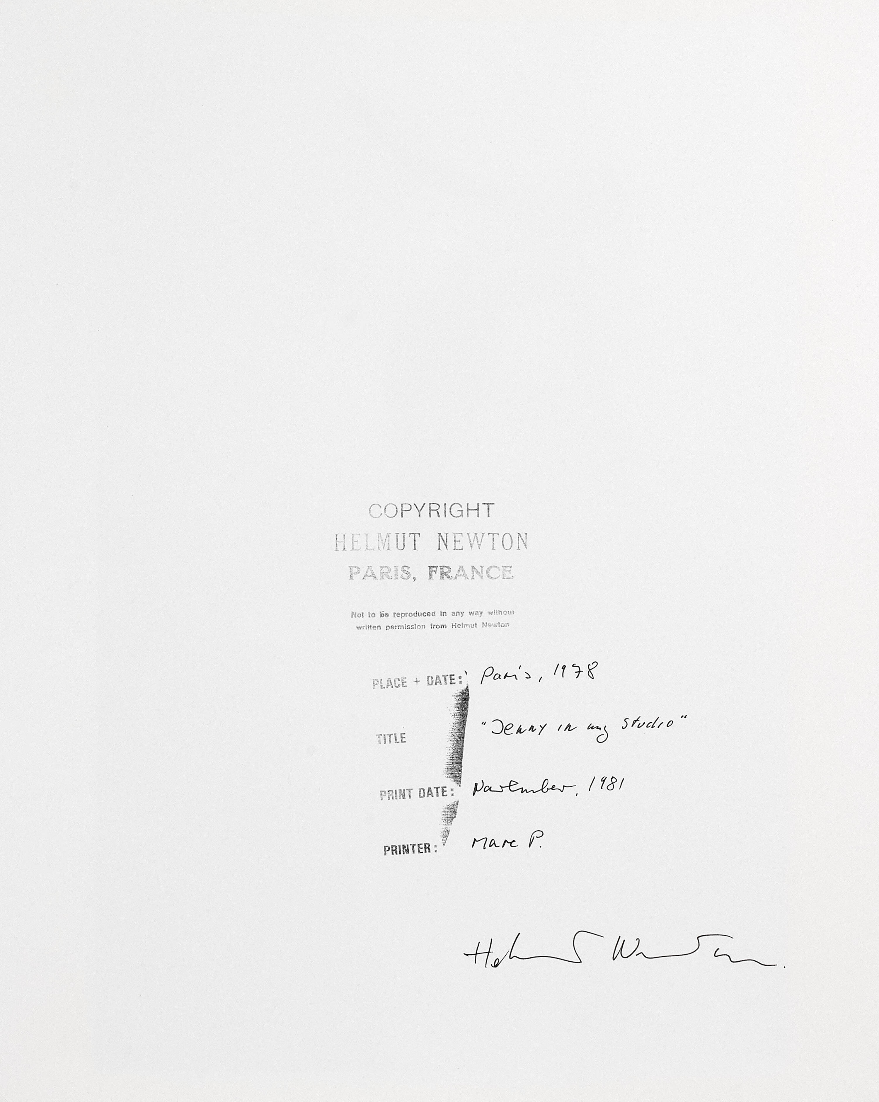 HELMUT NEWTON (1920–2004) Jenny in my studio, Paris 1978*
