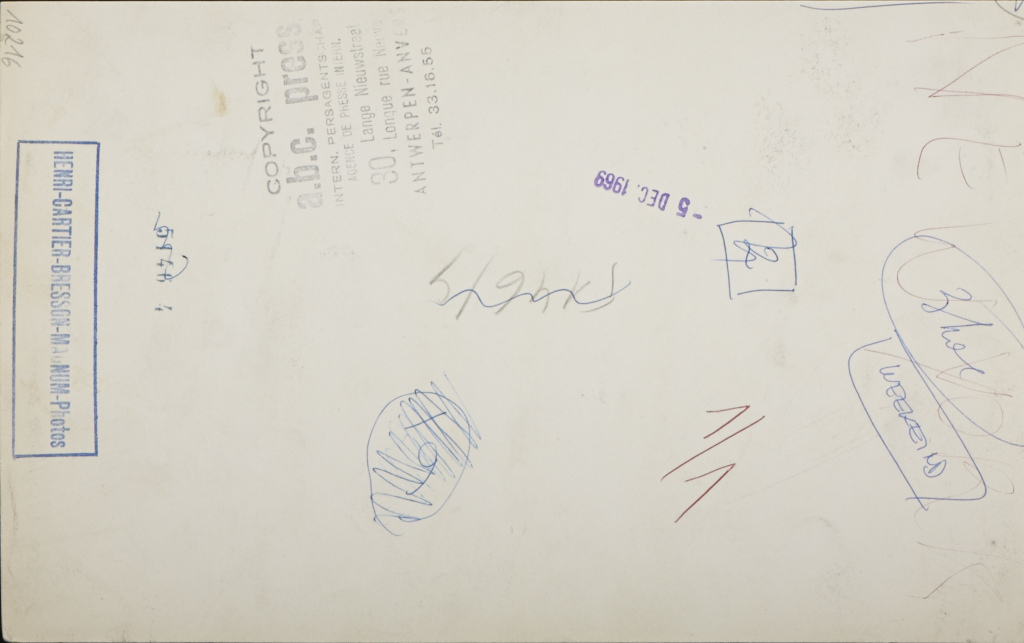 Vintage silver print 23,5 x 14,7 cm (9.3 x 5.8 in) Photographer's credit stamp, “a.b.c. press” stamp and diverse notations on the reverse