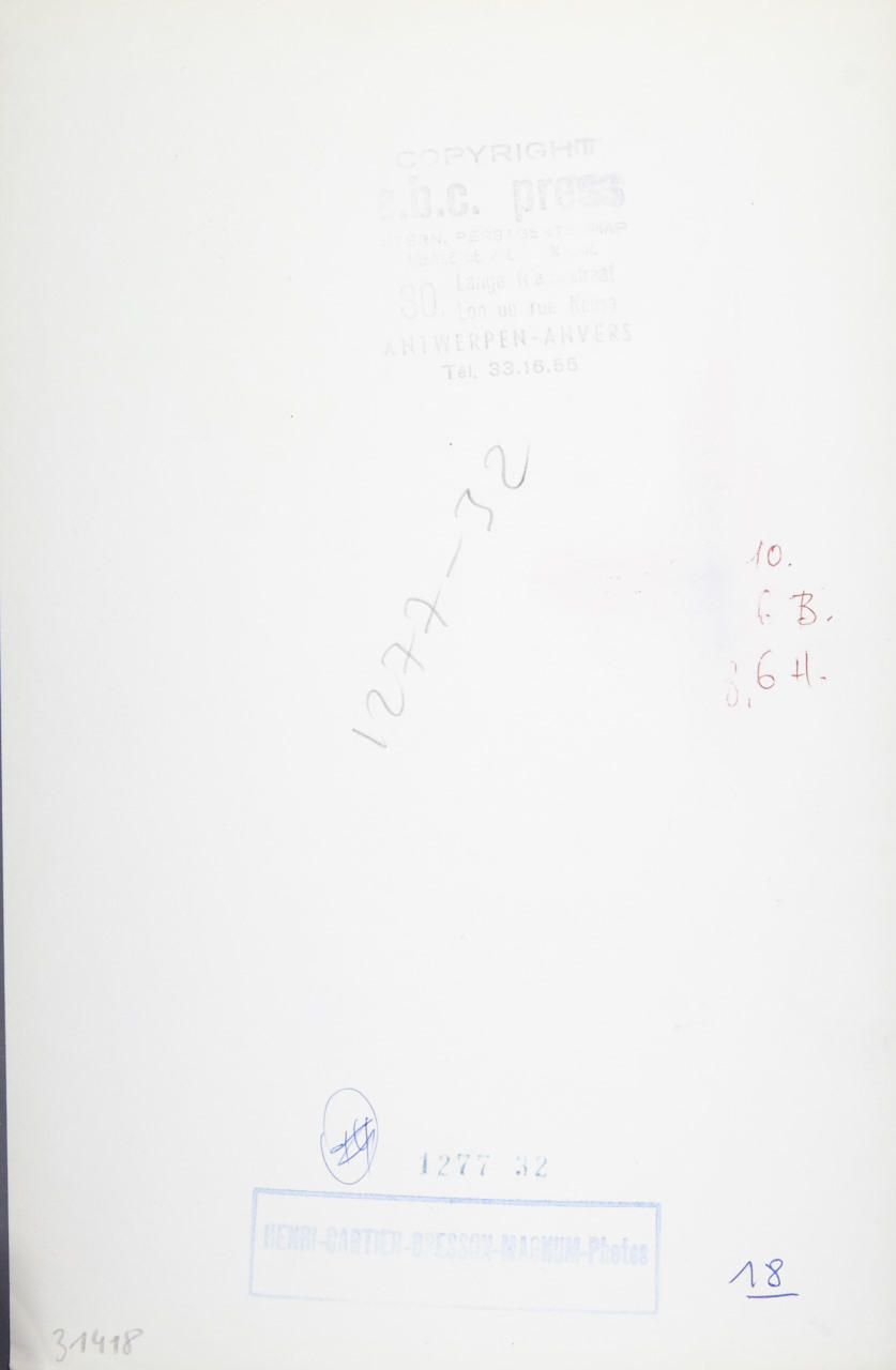Vintage silver print 25 x 16,2 cm Photographer's agency stamp, numerical stamp and press stamp on the reverse, several handwritten numerical notations on the reverse